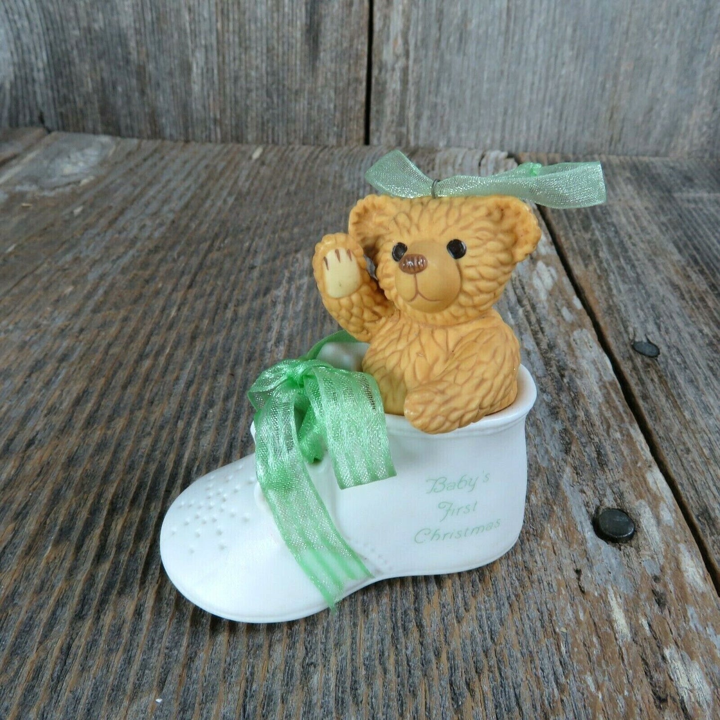 Baby’s First Christmas Hallmark Keepsake Ornament Bear Bootie Shoe 2003