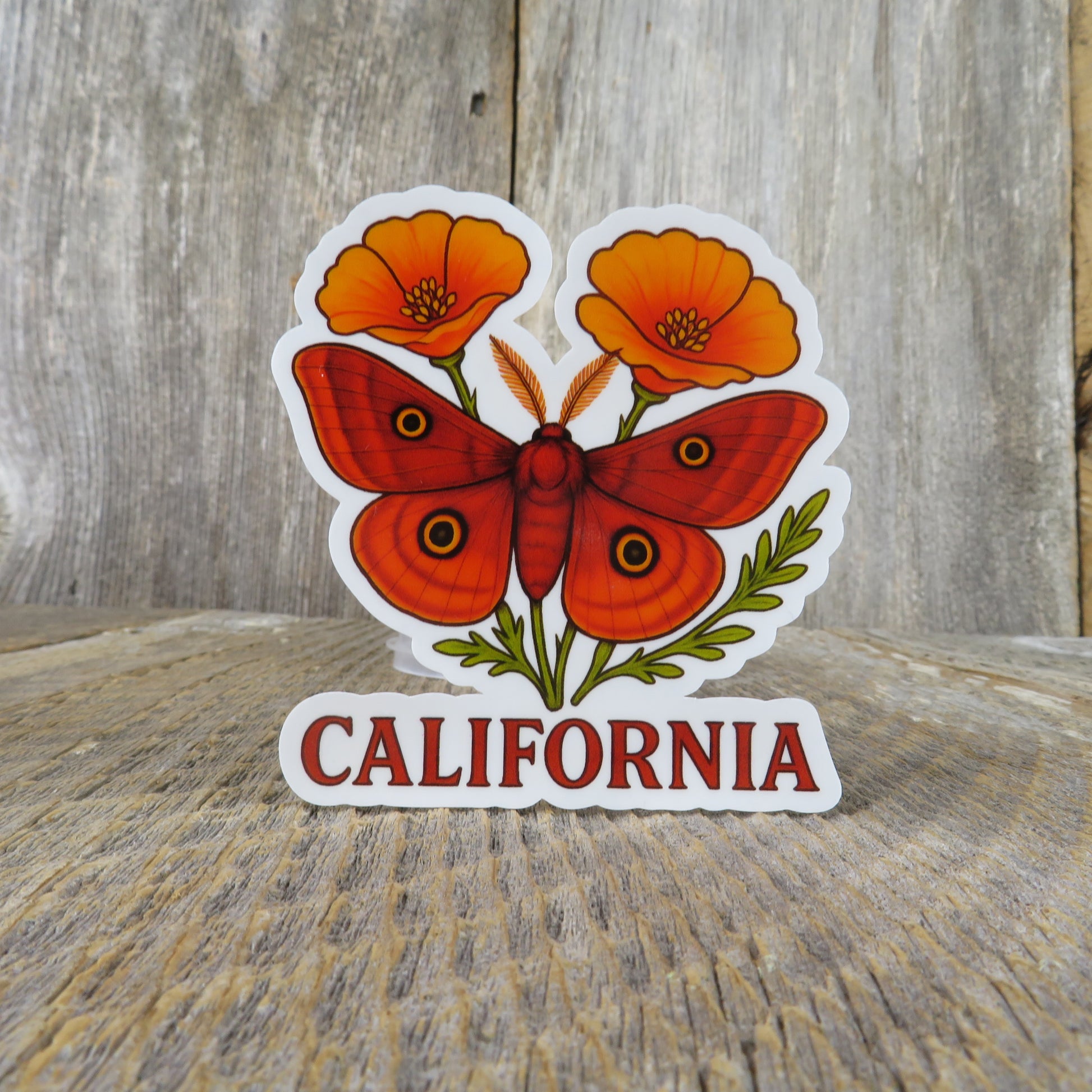 California Poppy Redwood Moth Sticker State Flower Travel Souvenir