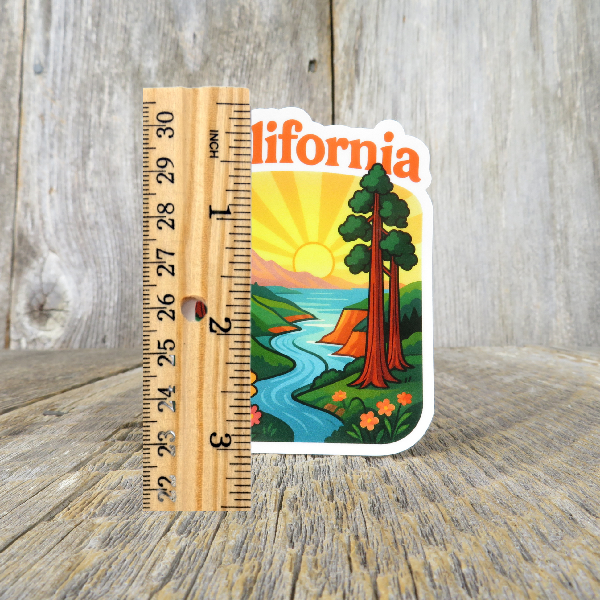 California Redwood Trees River Lake Scene Sticker Souvenir Travel Sticker