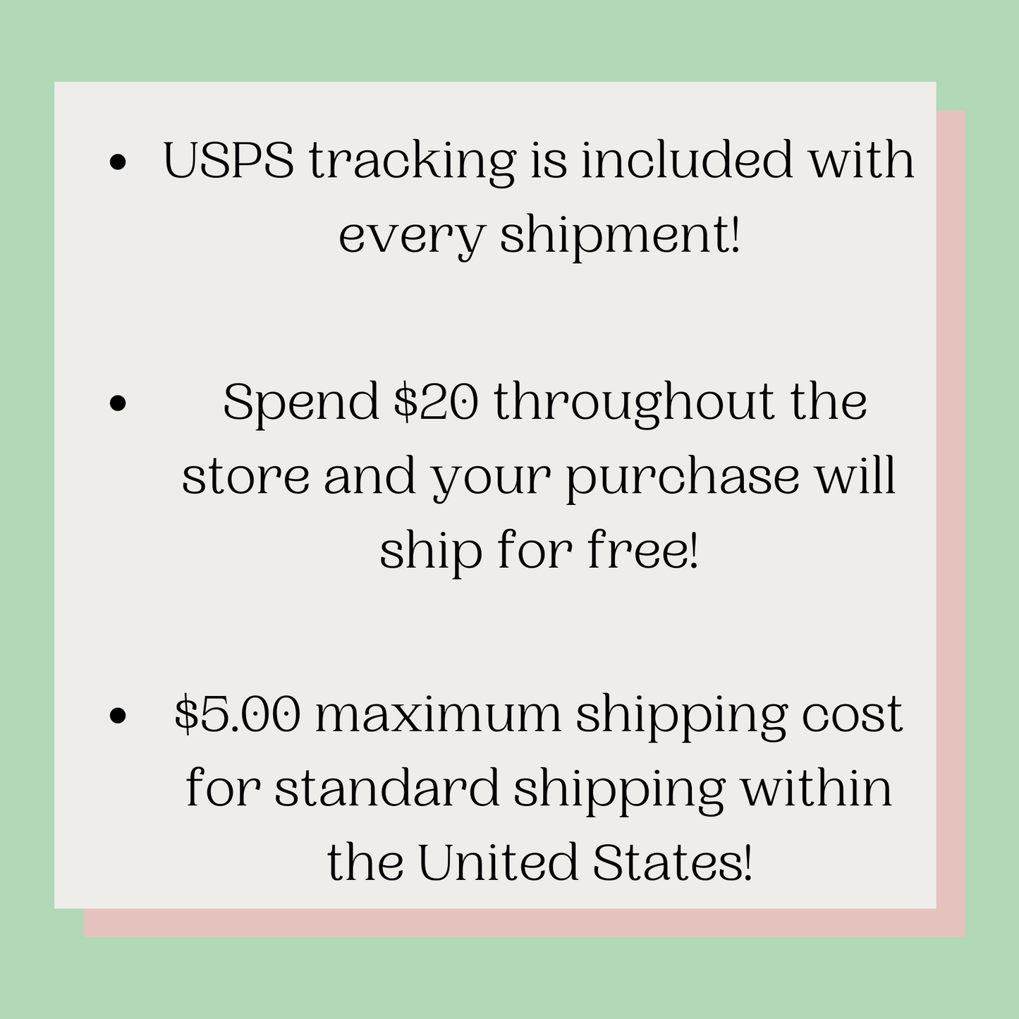 SHIPPING -We use calculated shipping to allow customers the ability to purchase multiple stickers for the same low postage price. All purchases in our store will include a USPS Tracking Number.