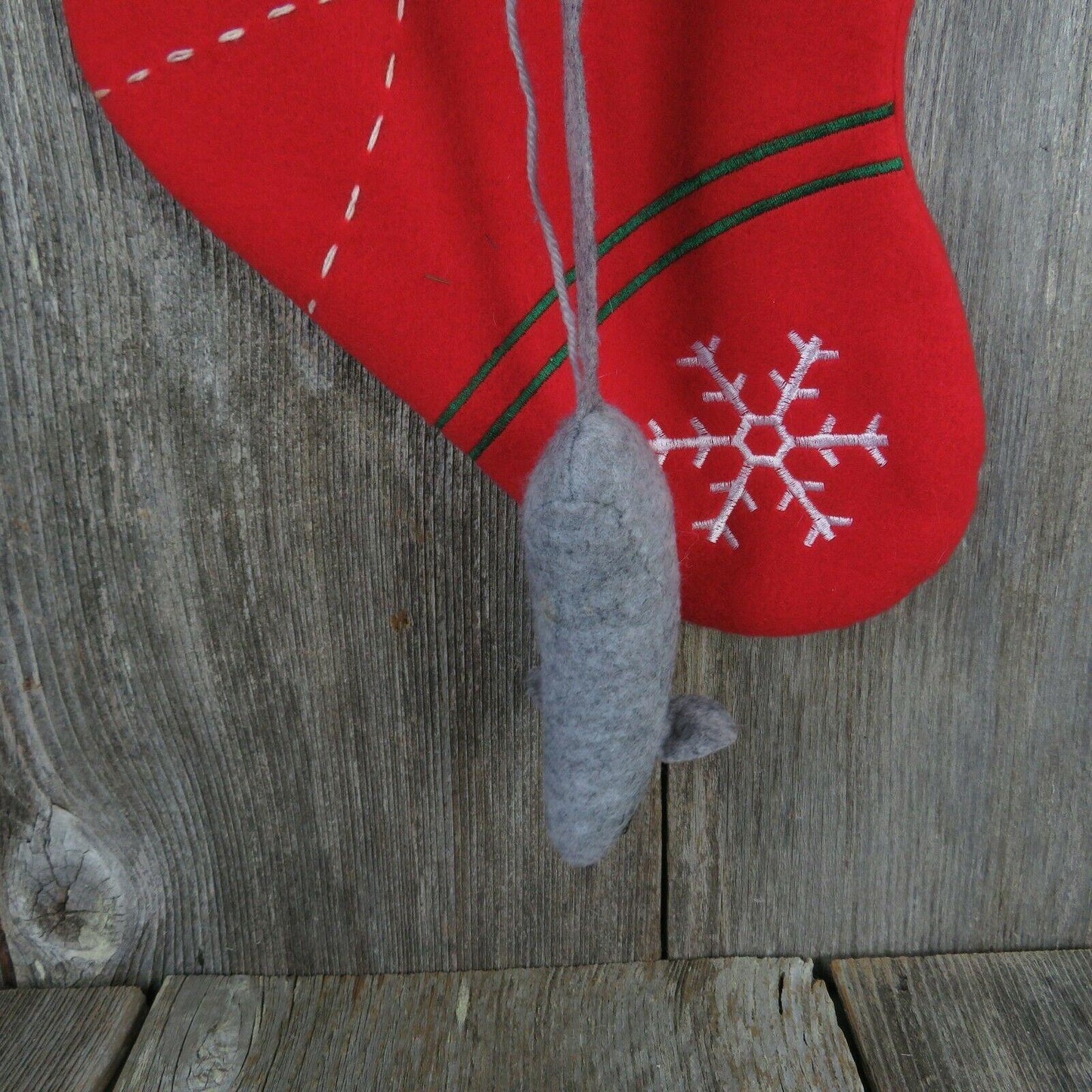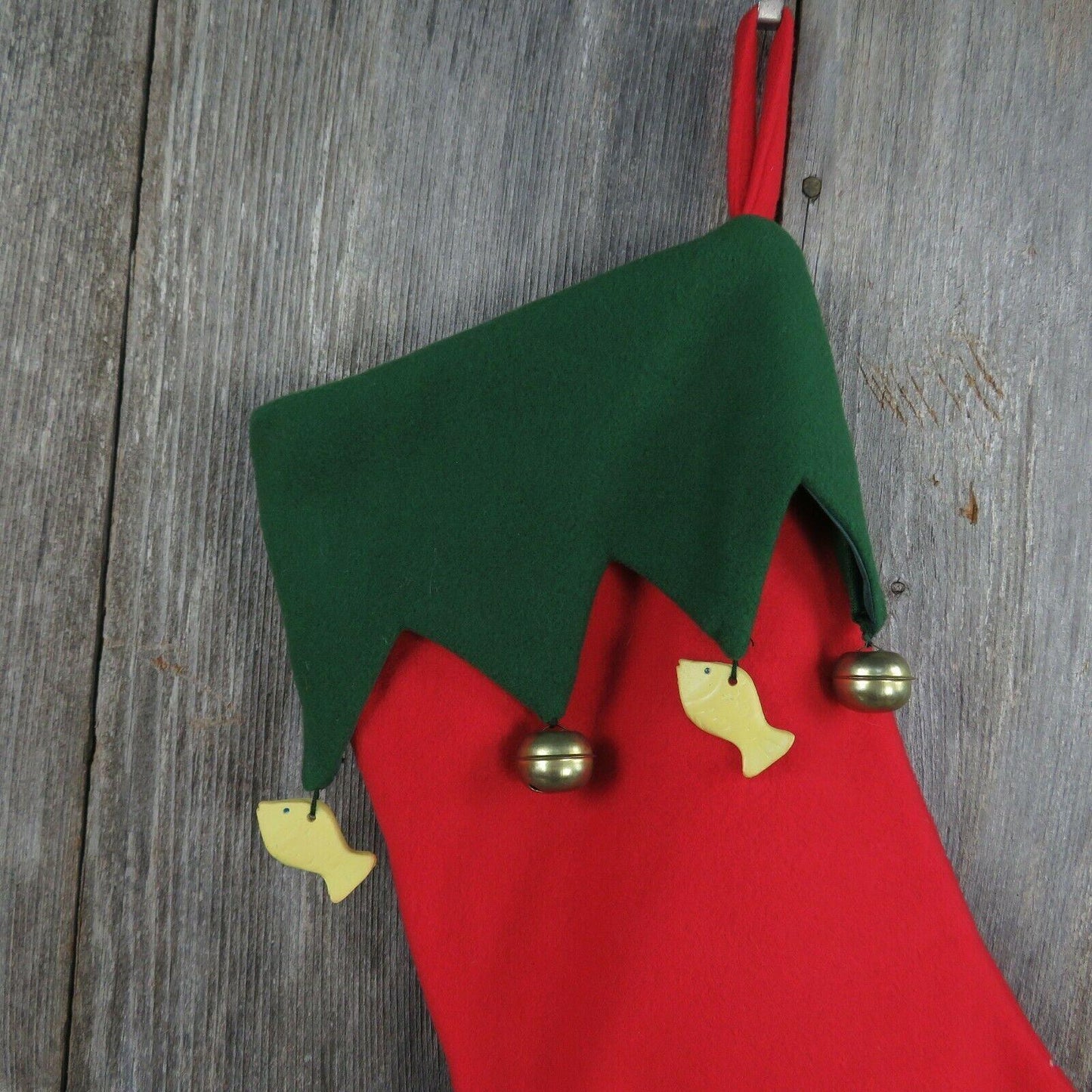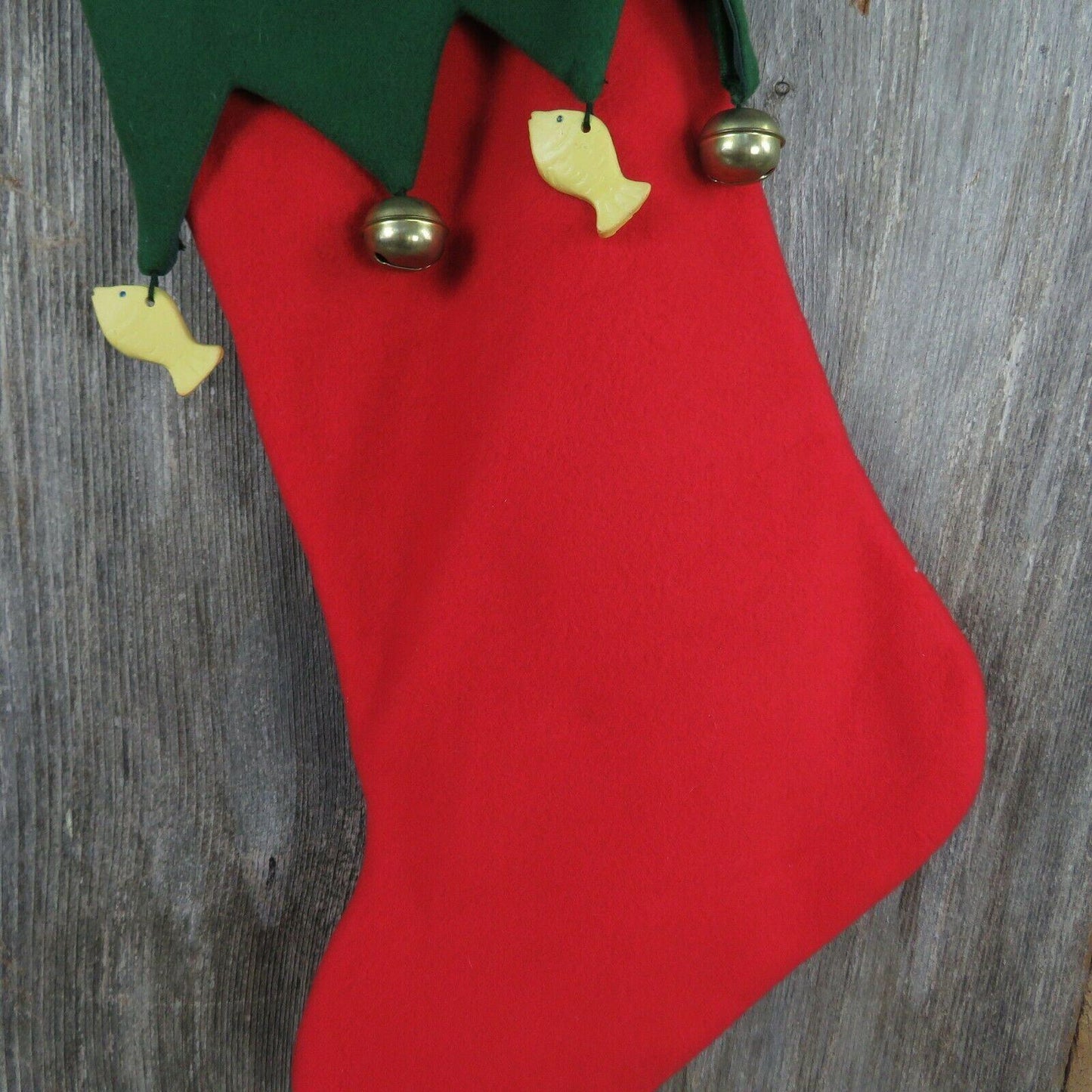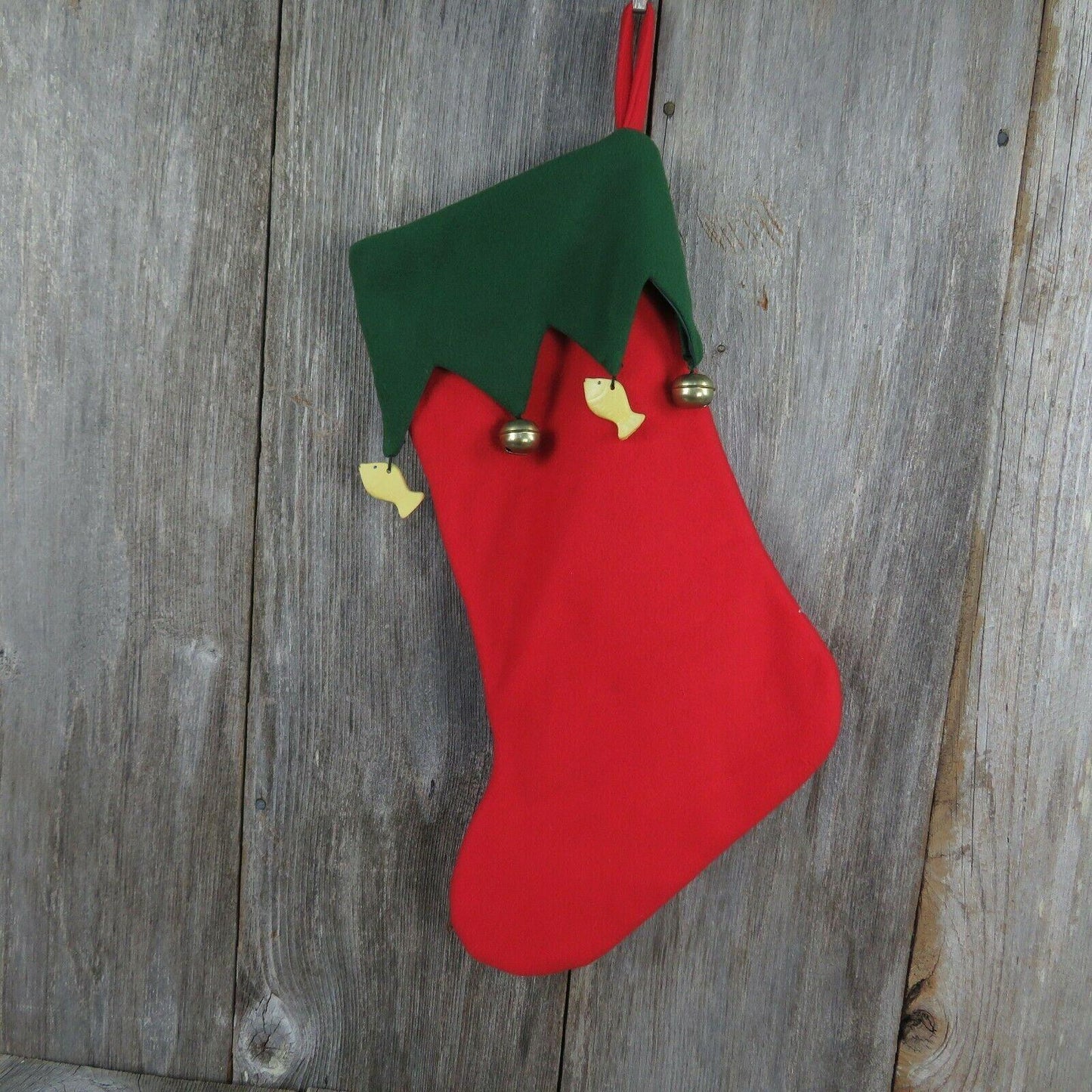Nice Kitty Christmas Stocking Cat Mouse Fish Bells Fleece Green Red Pet