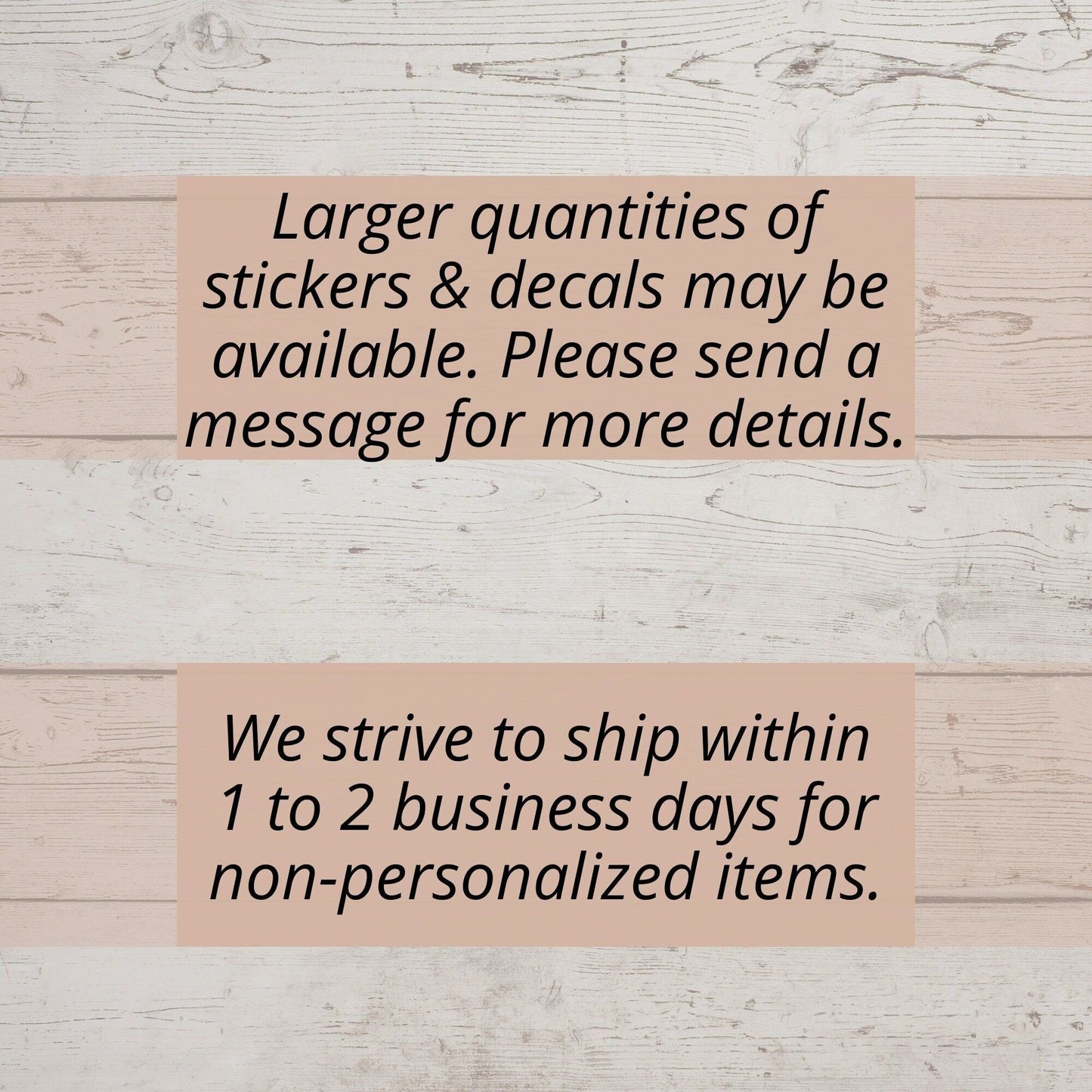 To ensure the longest life possible, we recommend handwashing items with stickers and limiting exposure to direct sunlight.