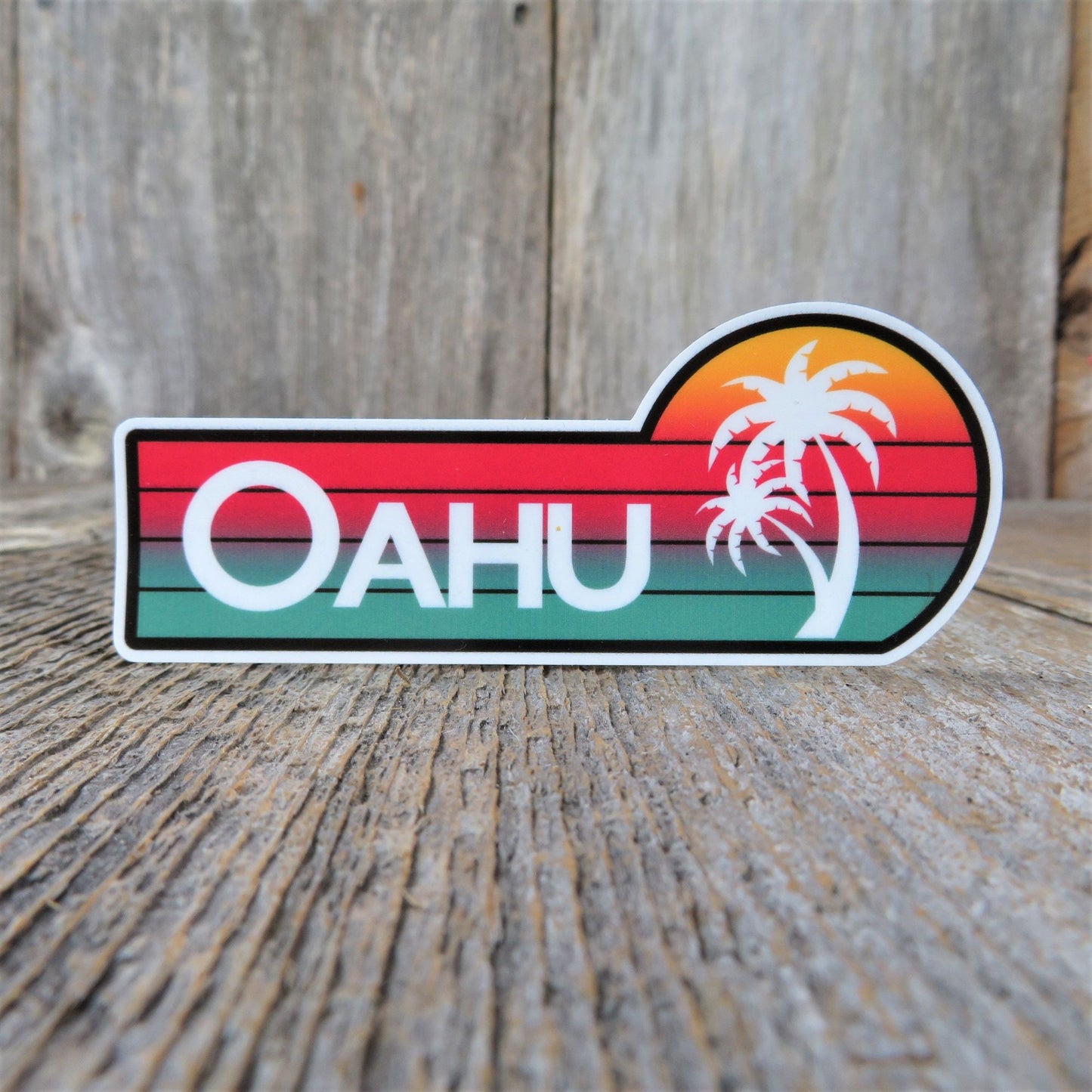 Oahu Hawaii Retro Sunset Souvenir Sticker