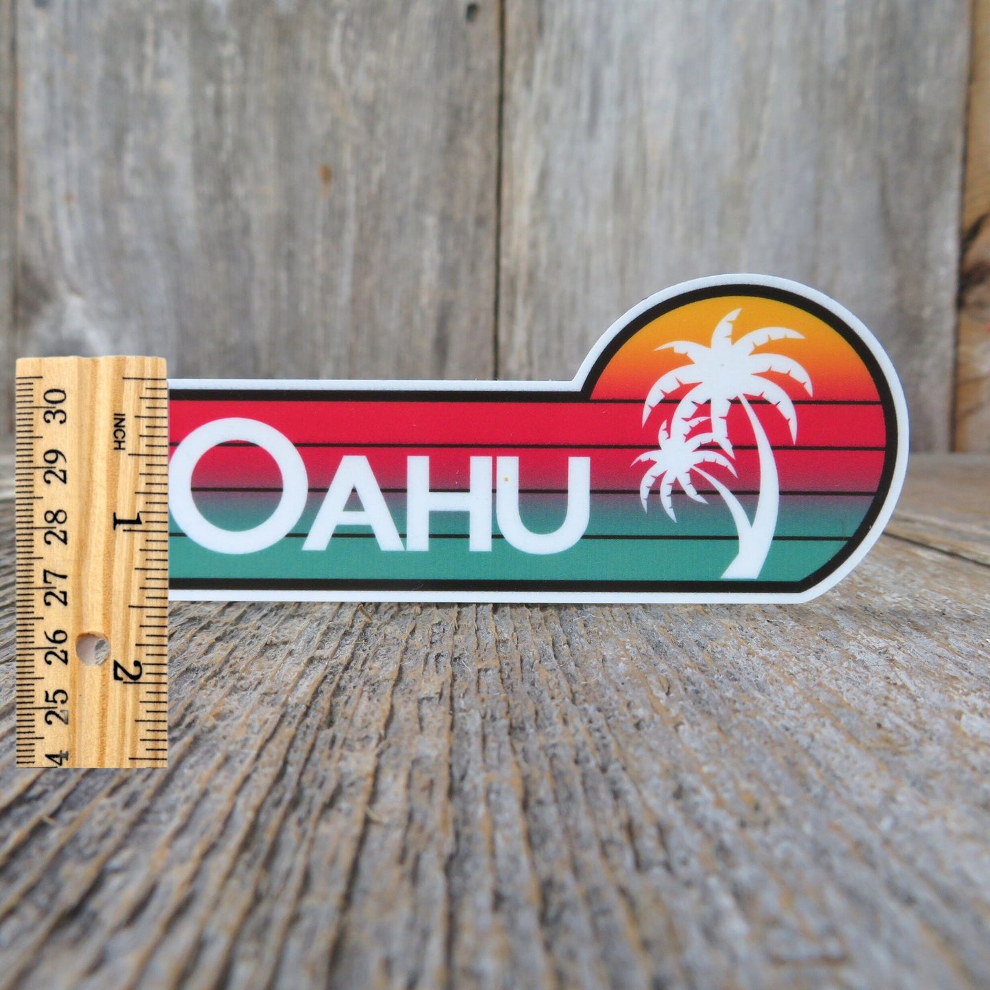 Oahu Hawaii Tropical Sunset Sticker Palm Tree Retro Destination Souvenir Travel Sticker