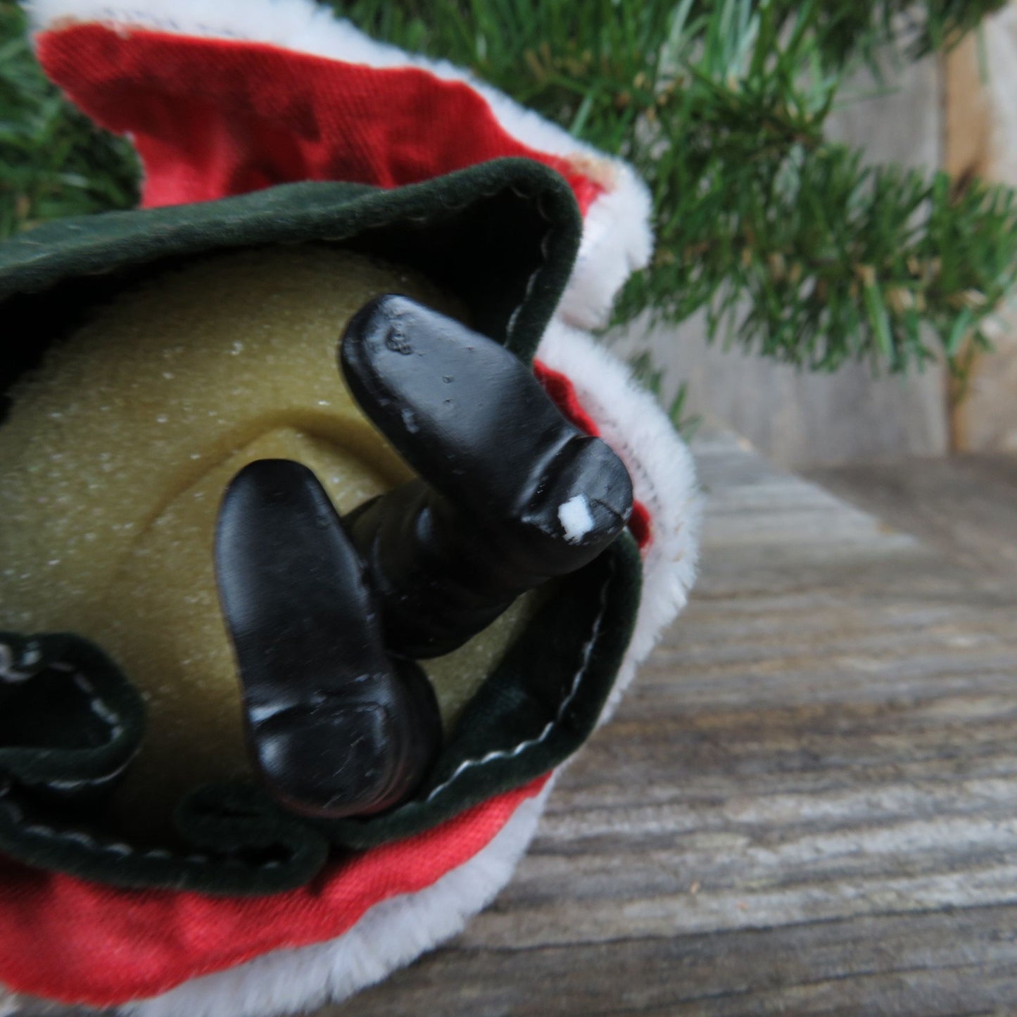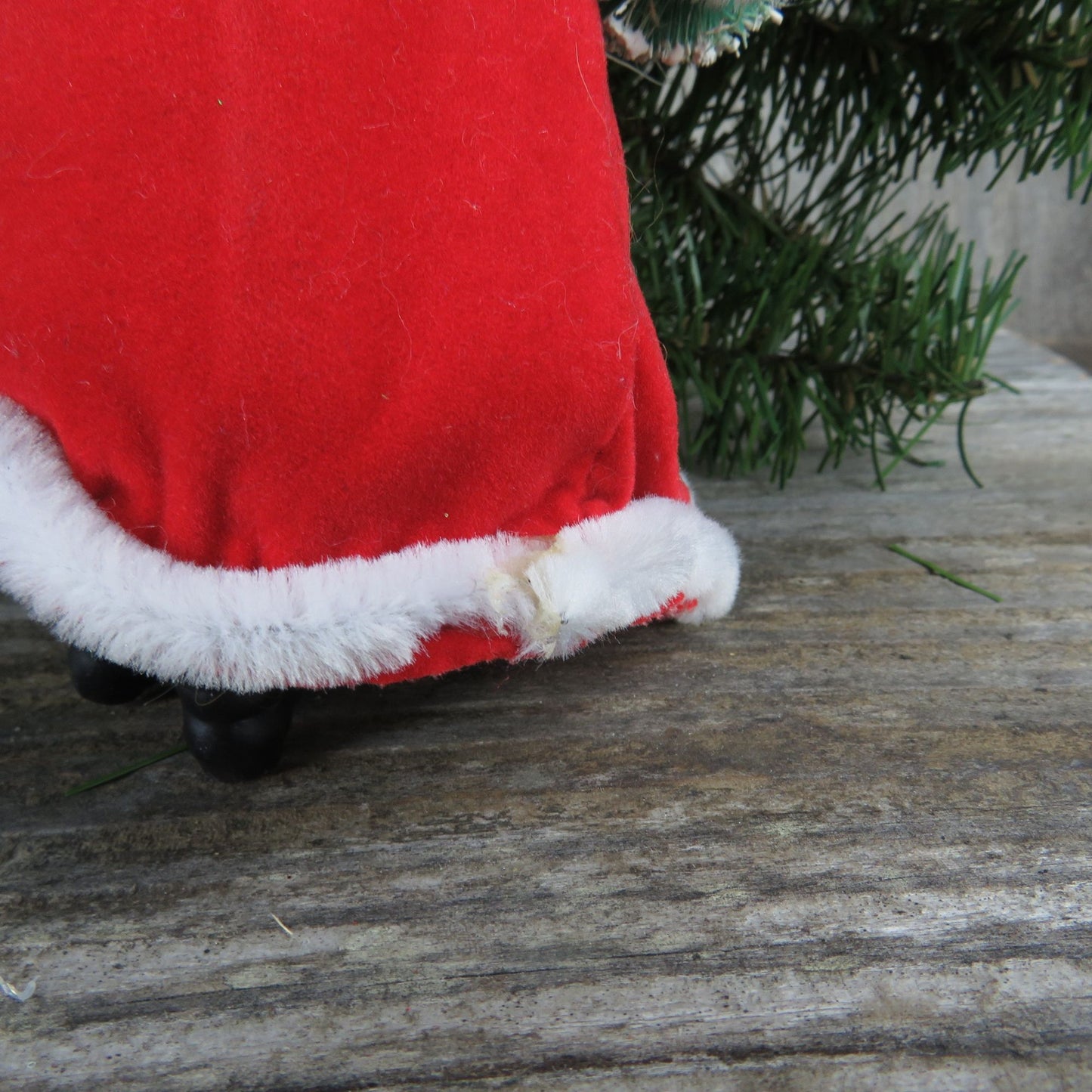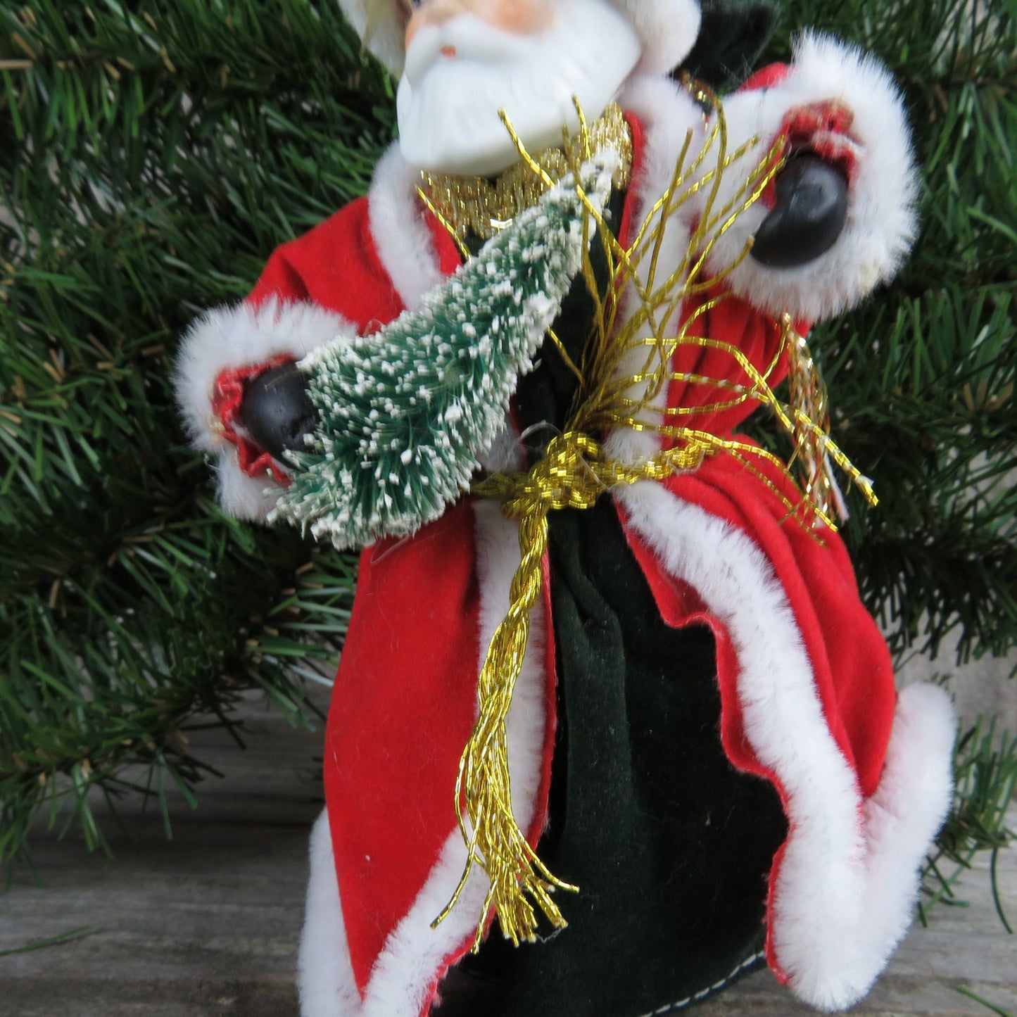 Vtg Santa Claus Ornament, with Porcelain Face, Hands, and Feet, Velveteen Robe, and a Bottle Brush Christmas Tree