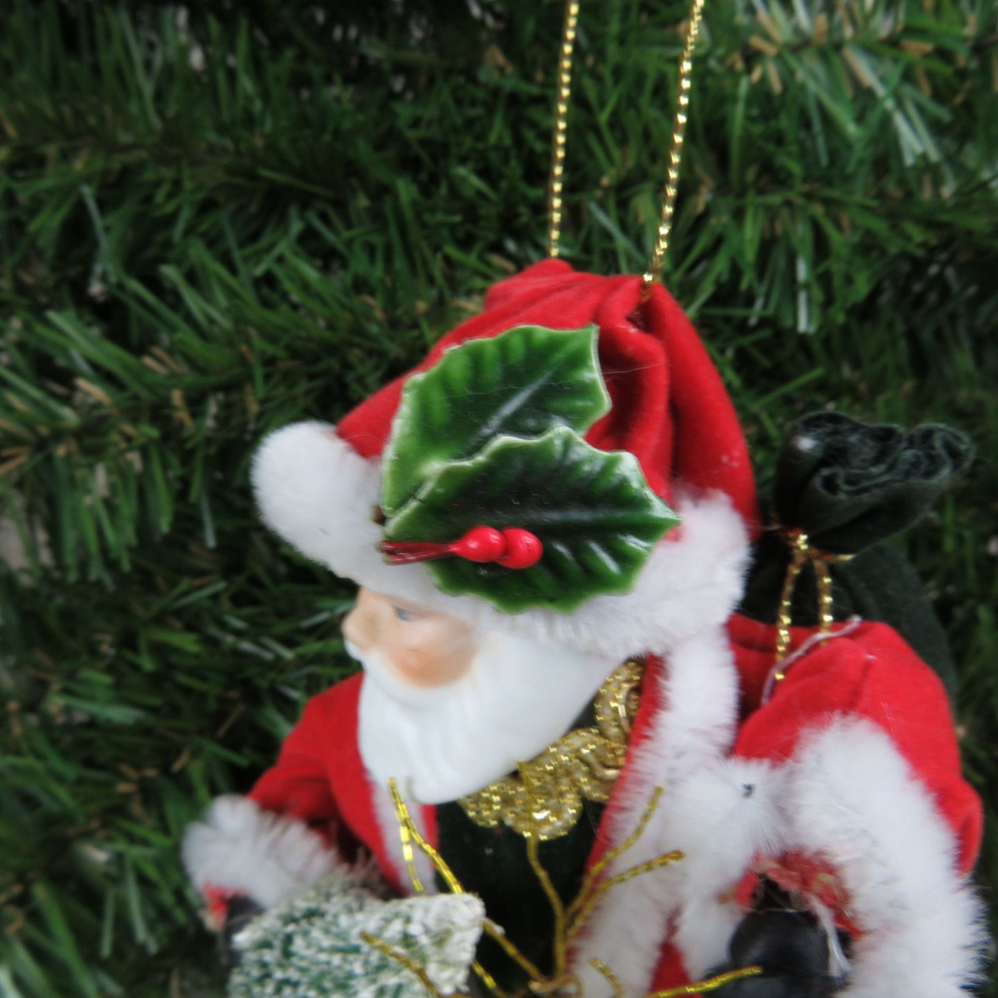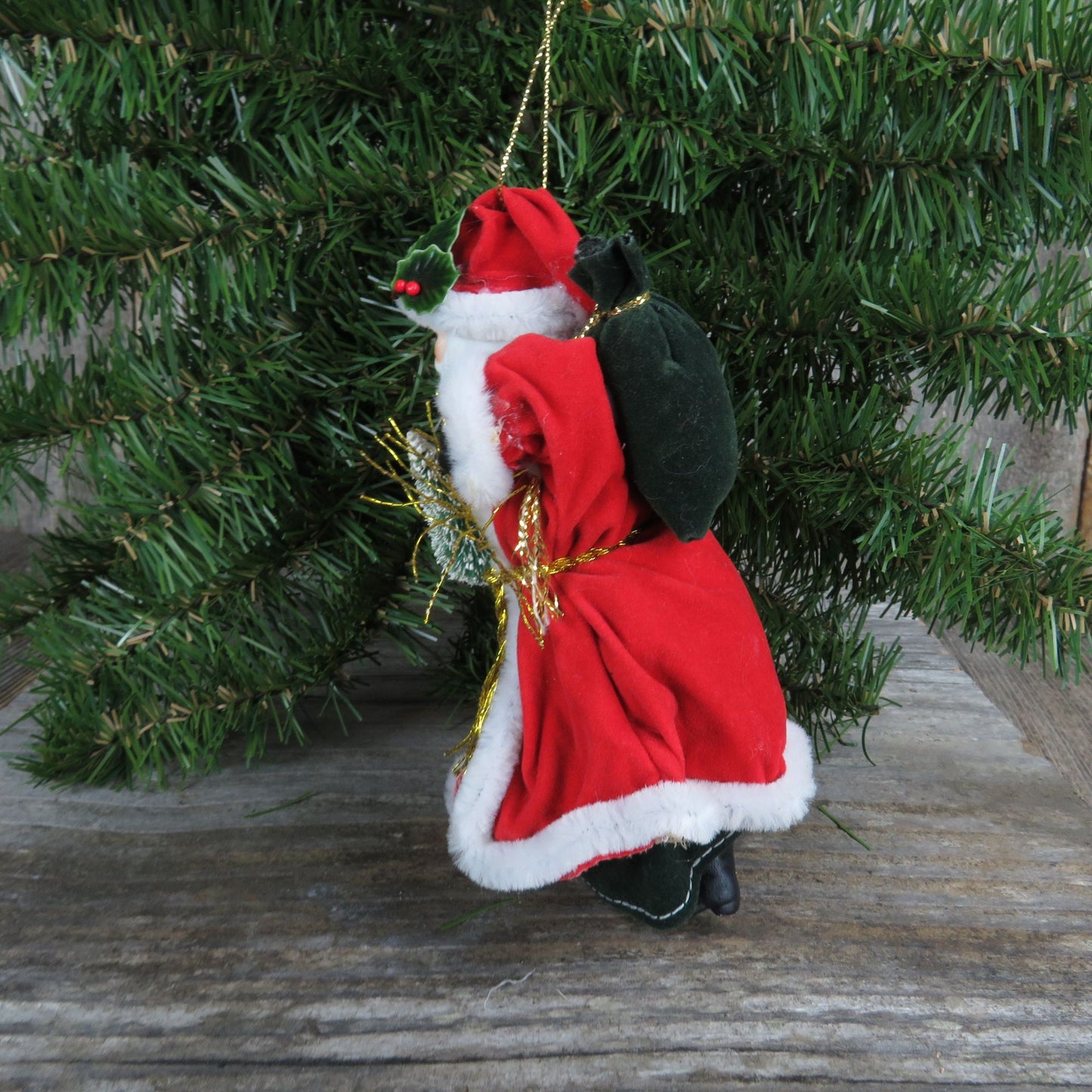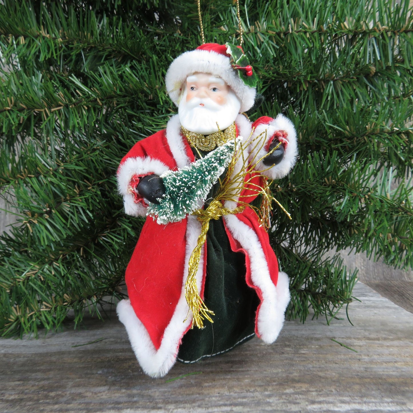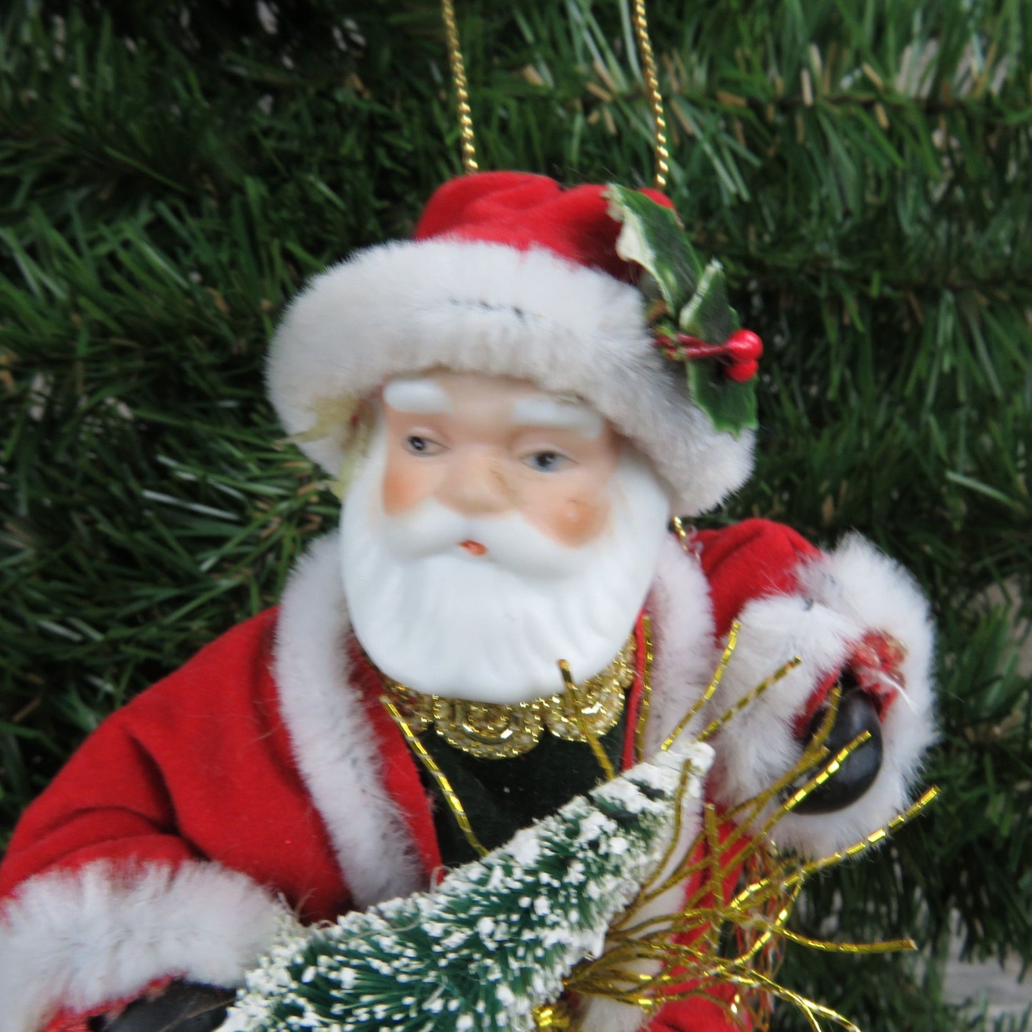 Santa Ornament Porcelain Velveteen Robe Brush Tree Father Christmas St. Nick Ceramic