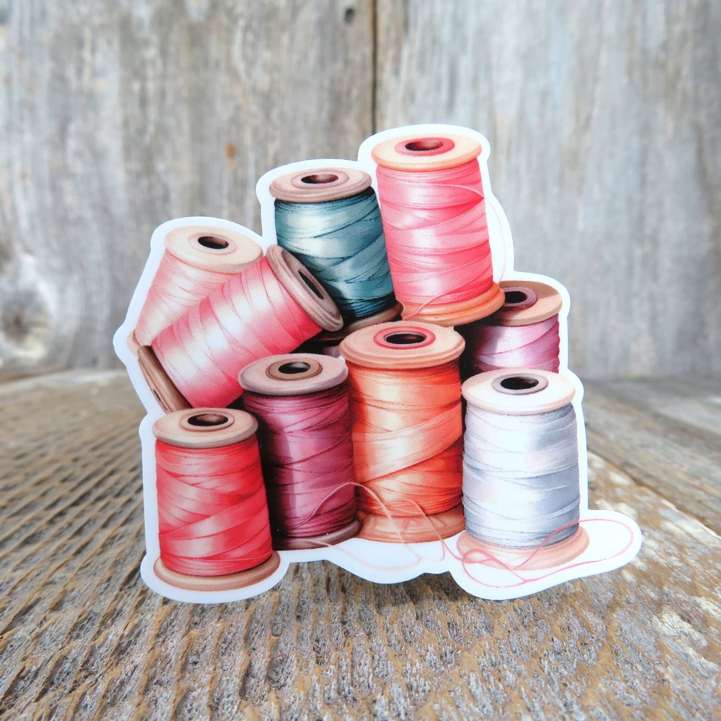 Spools of Thread Sticker Green Peach Purple Quilters Sewing Crafter #S2626