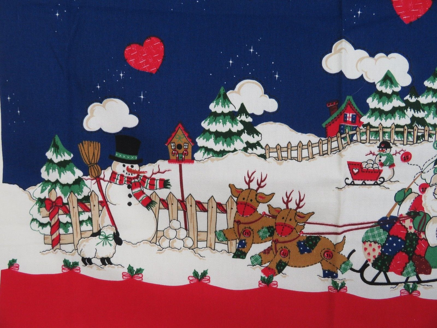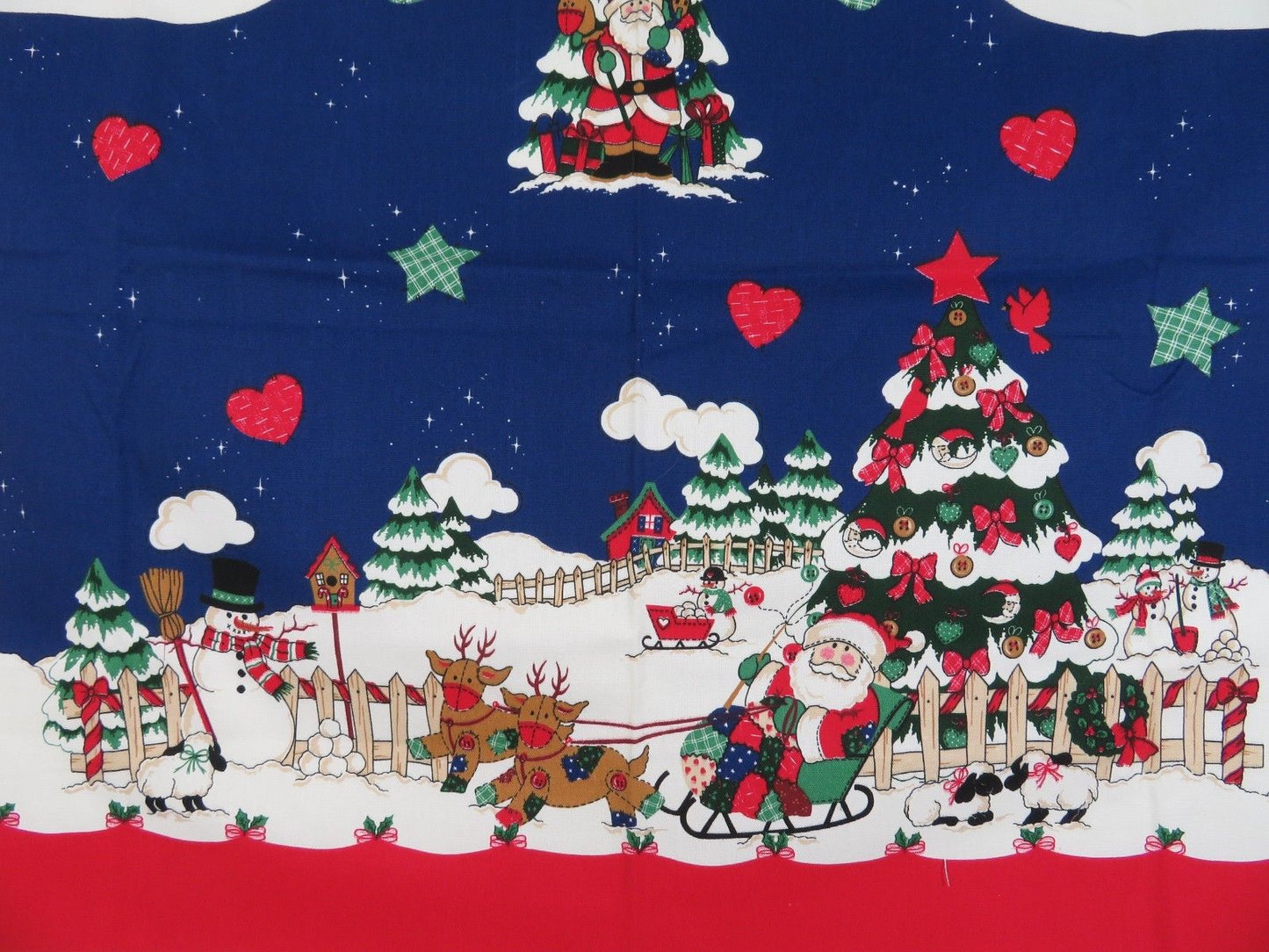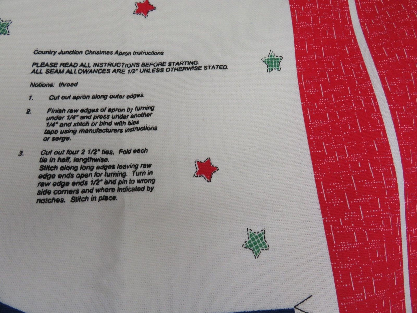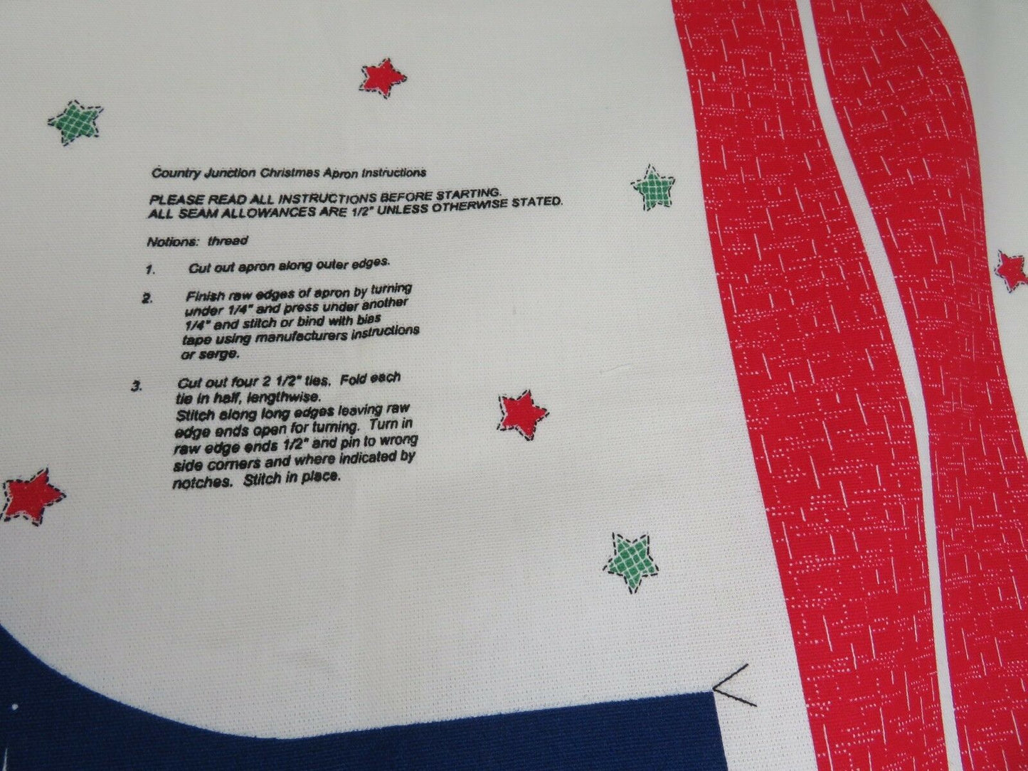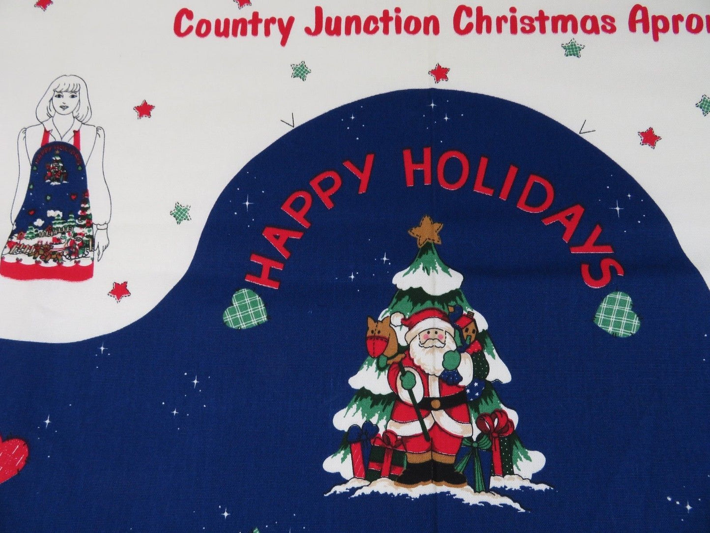Vintage Apron Cut Sew Fabric Panel Christmas Holiday Blue Santa Butcher Country