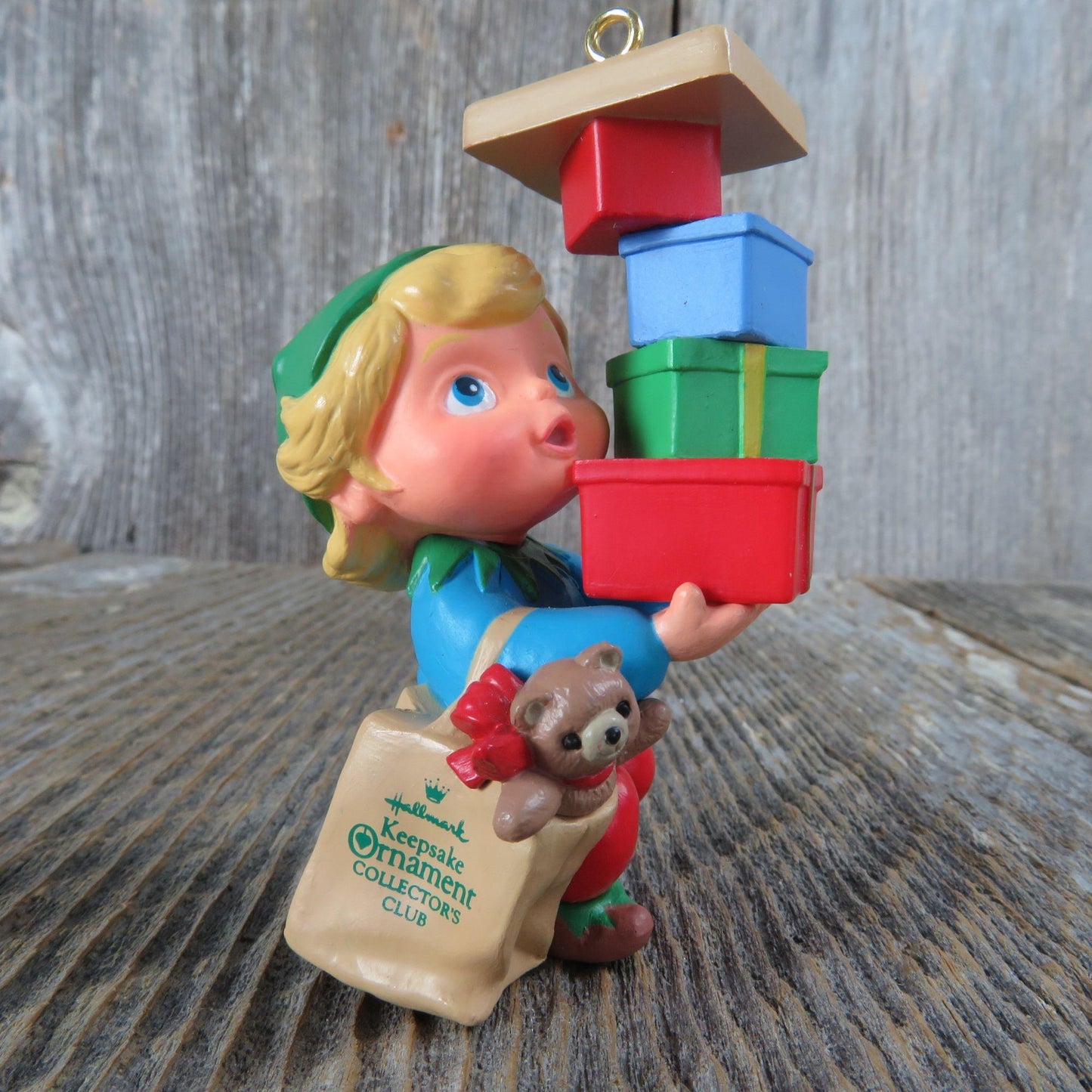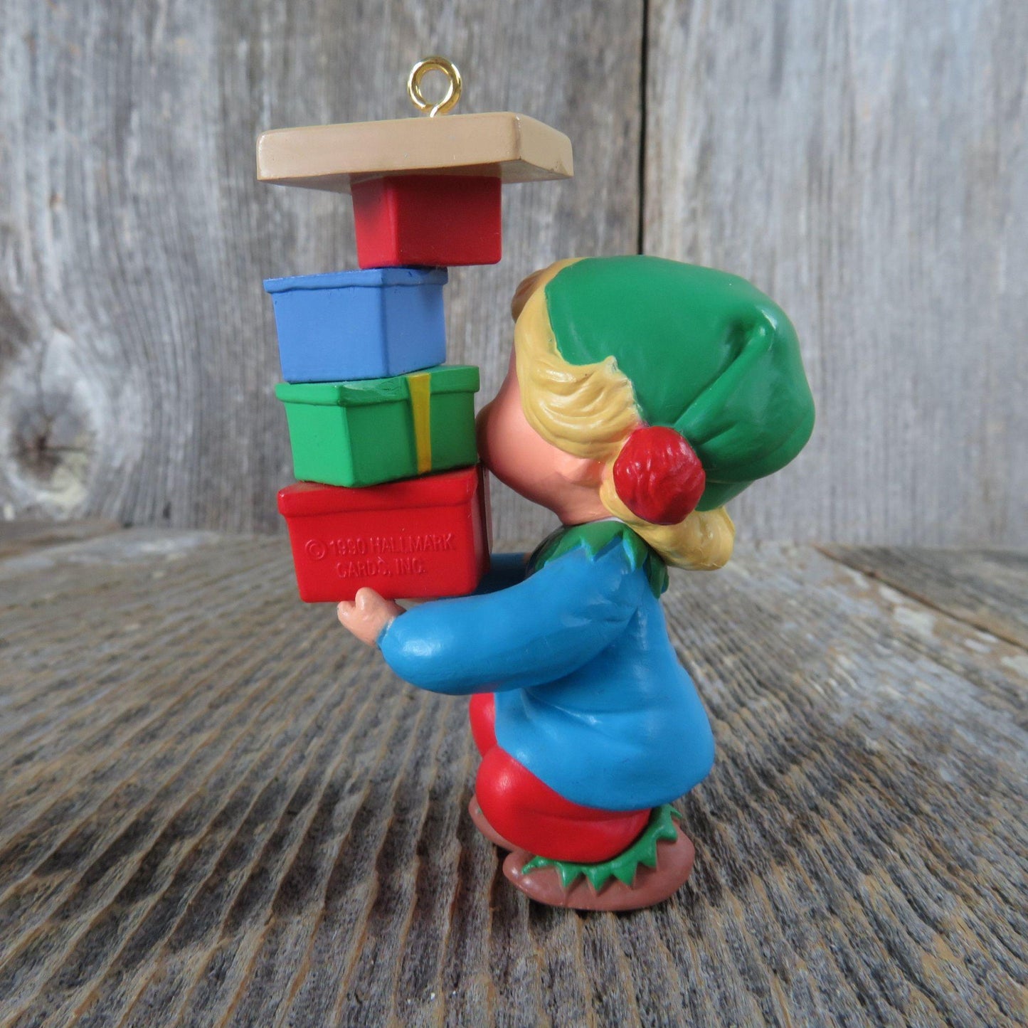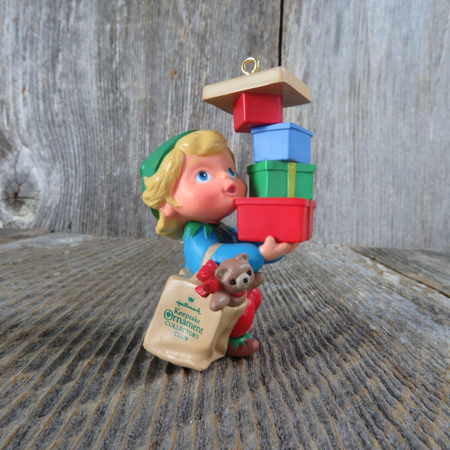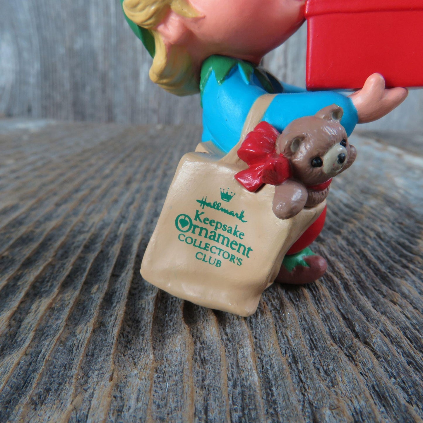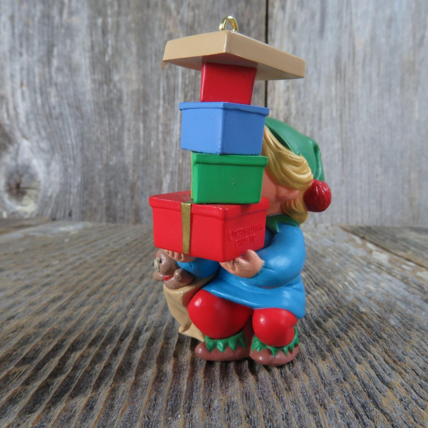 Vtg Christmas Elf Girl with an Arm Load of Gifts "Armful of Joy" Collector's Club Ornament by Hallmark 1990