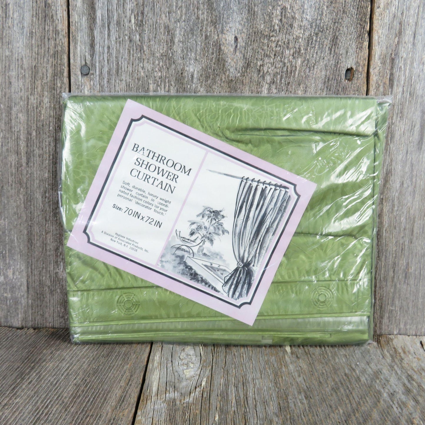 Vintage Avocado Green Shower Curtain Floral Flowers Hygiene Industries 70 x 72 Plastic