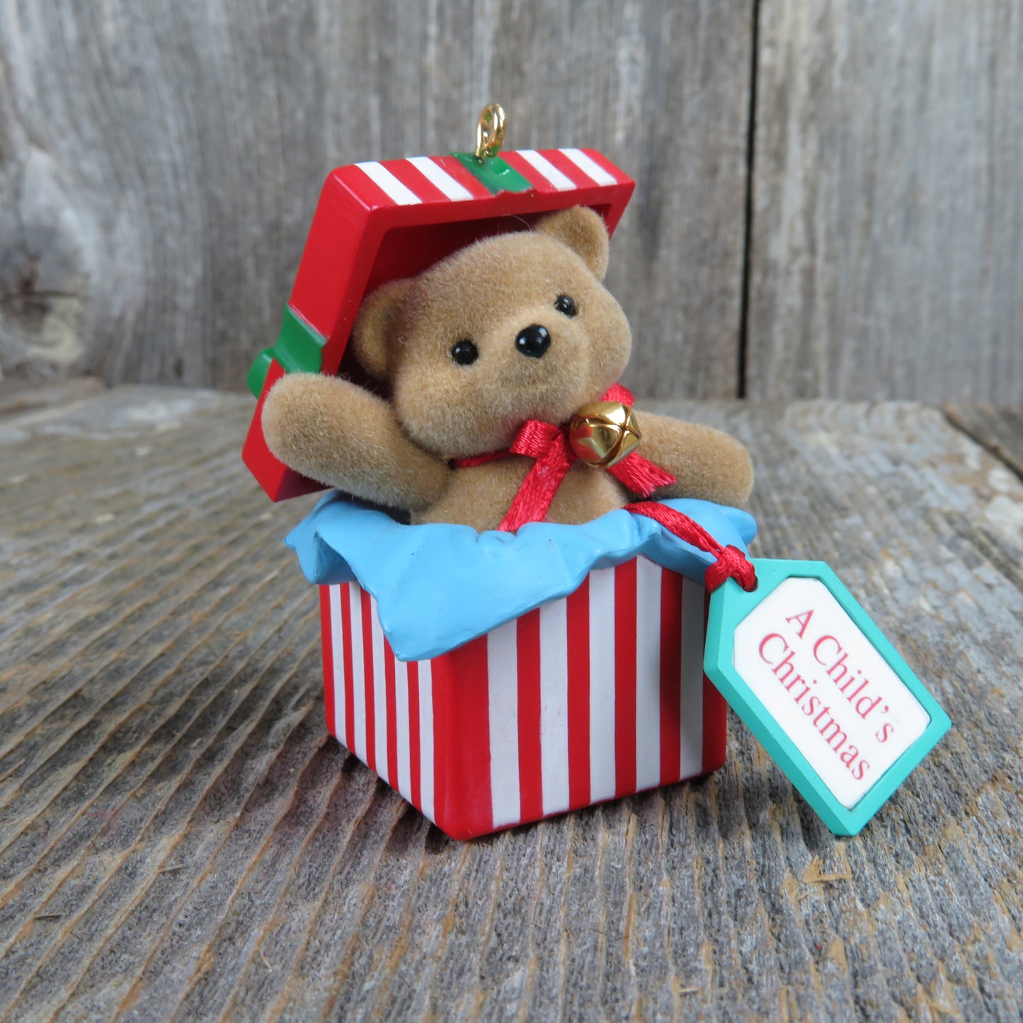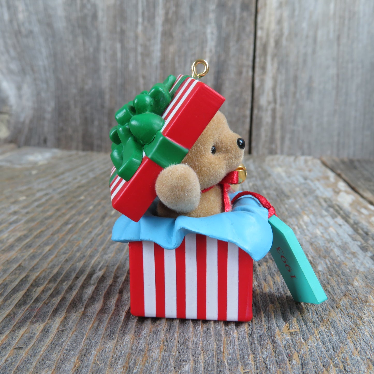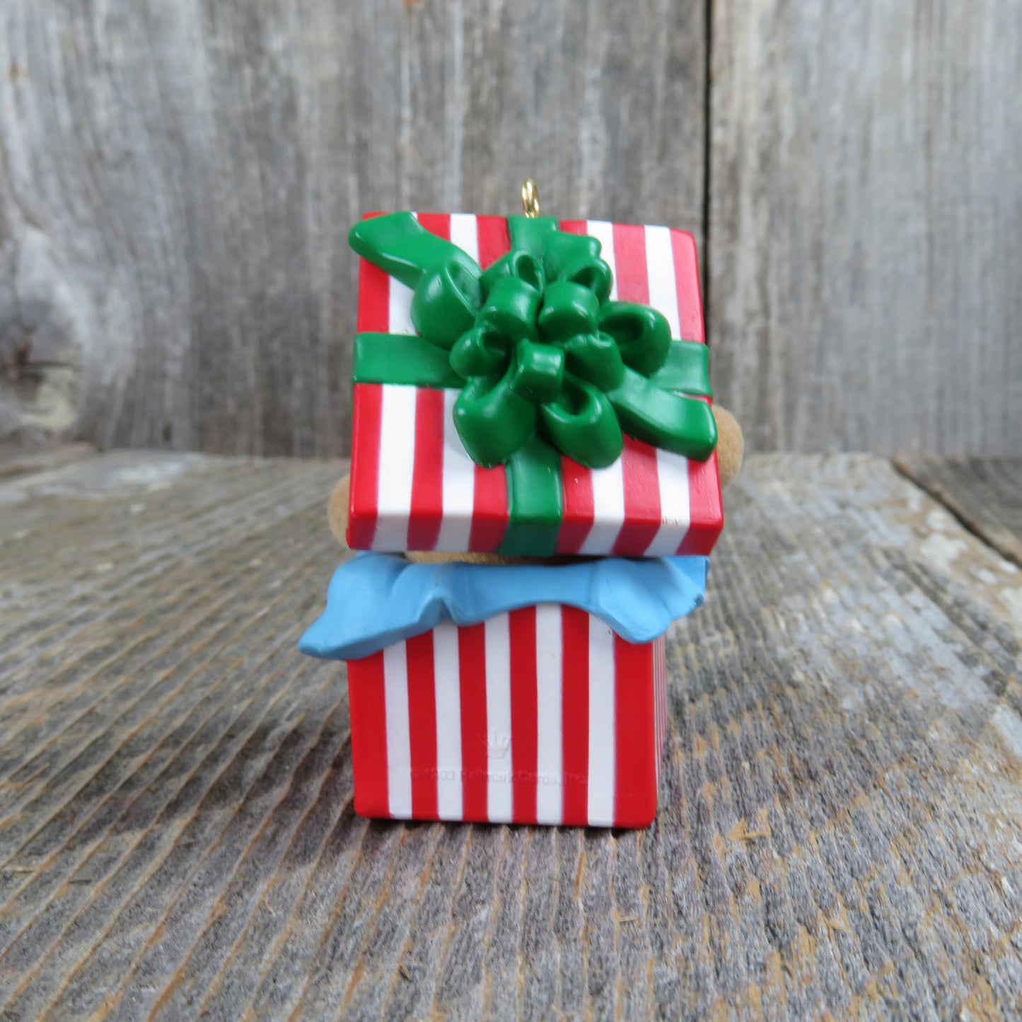 Vintage Child’s Christmas Bear Ornament 1993 Hallmark Teddy Bear Gift Box Surprise