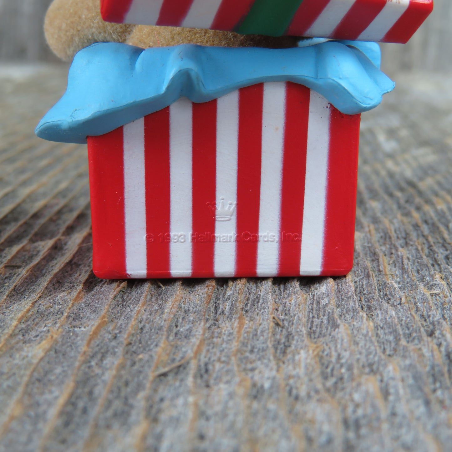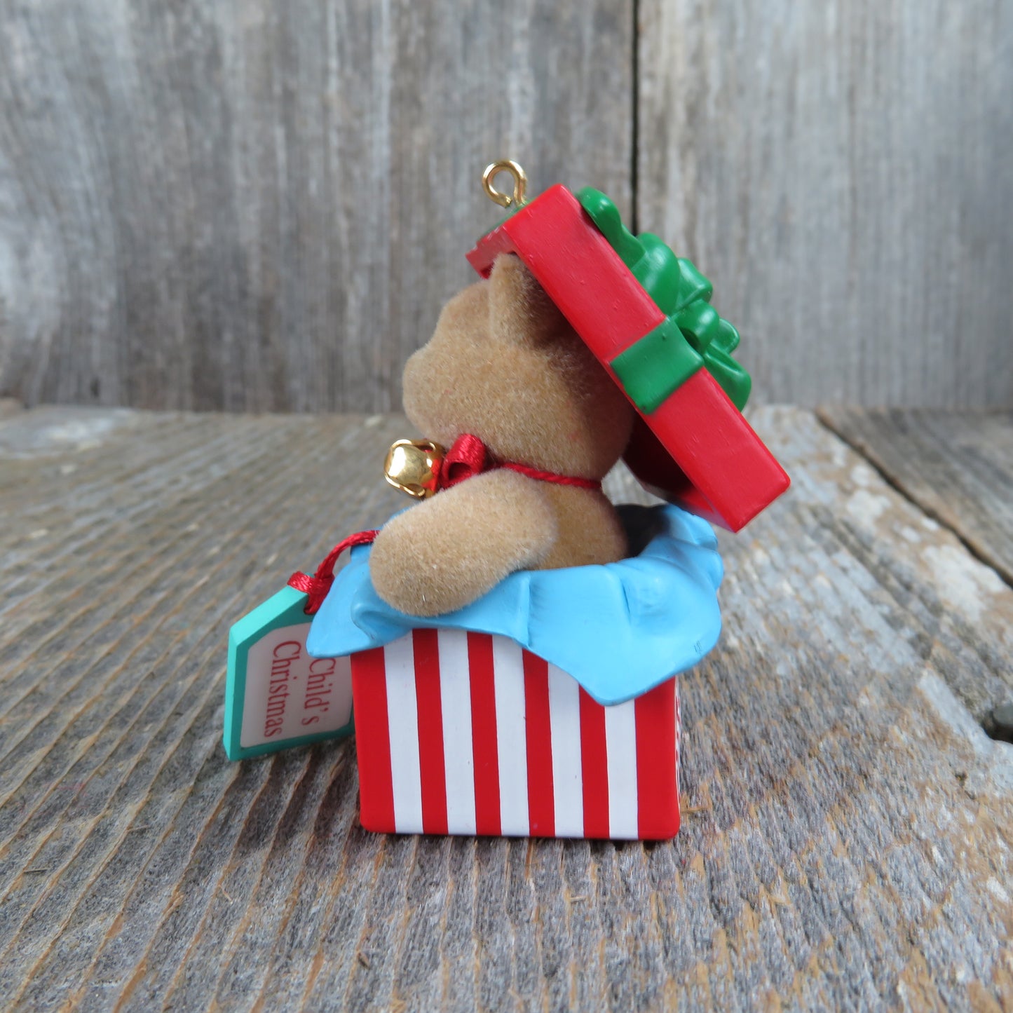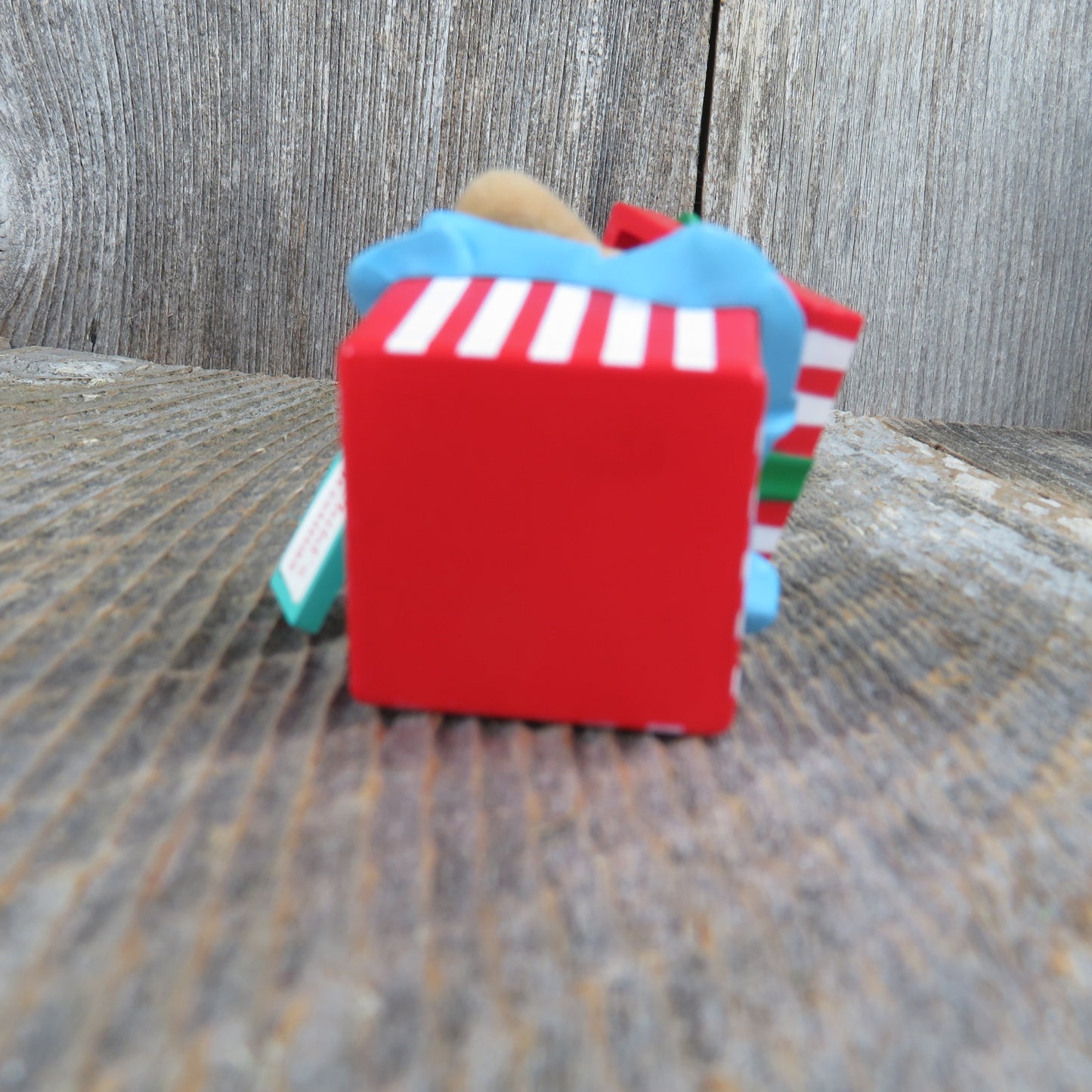 Vintage Child’s Christmas Bear Ornament 1993 Hallmark Teddy Bear Gift Box Surprise