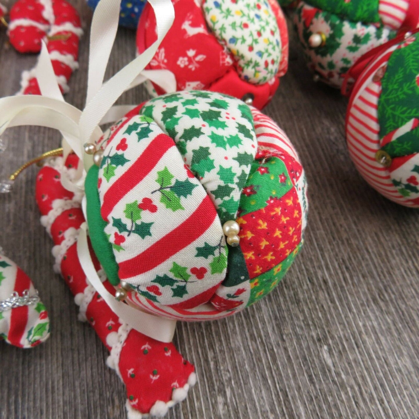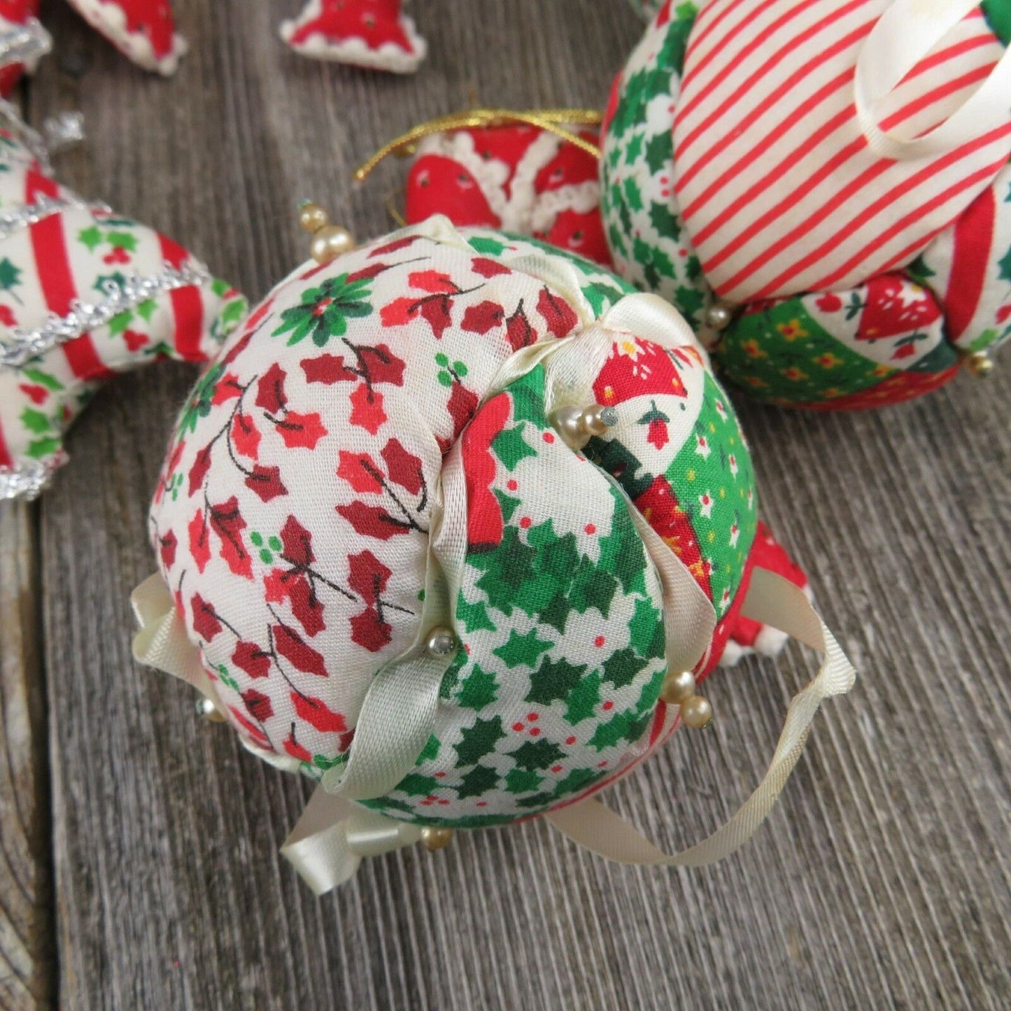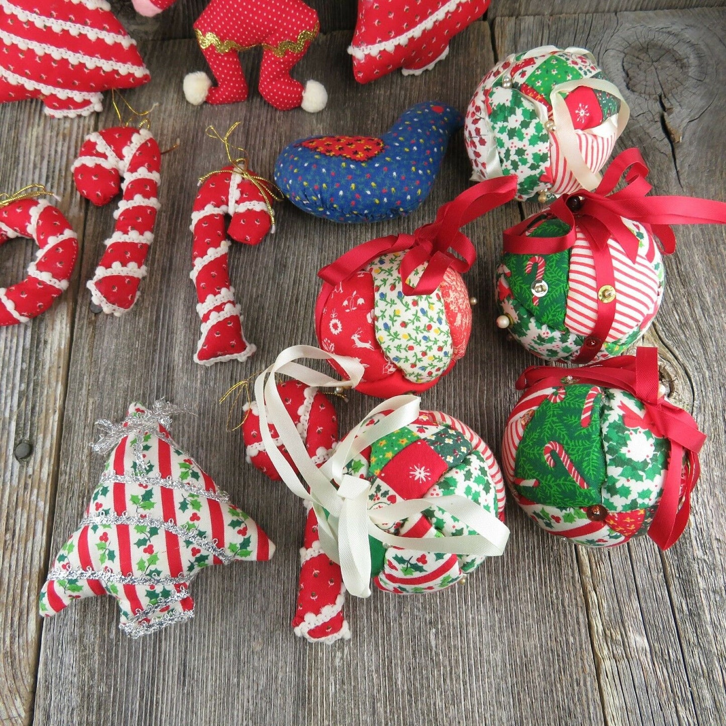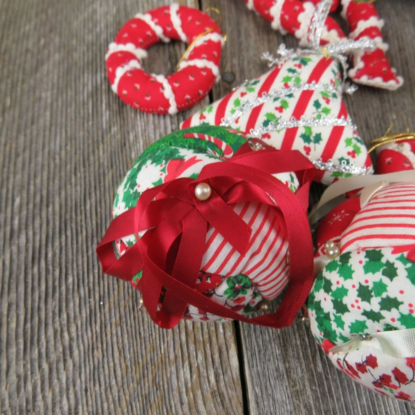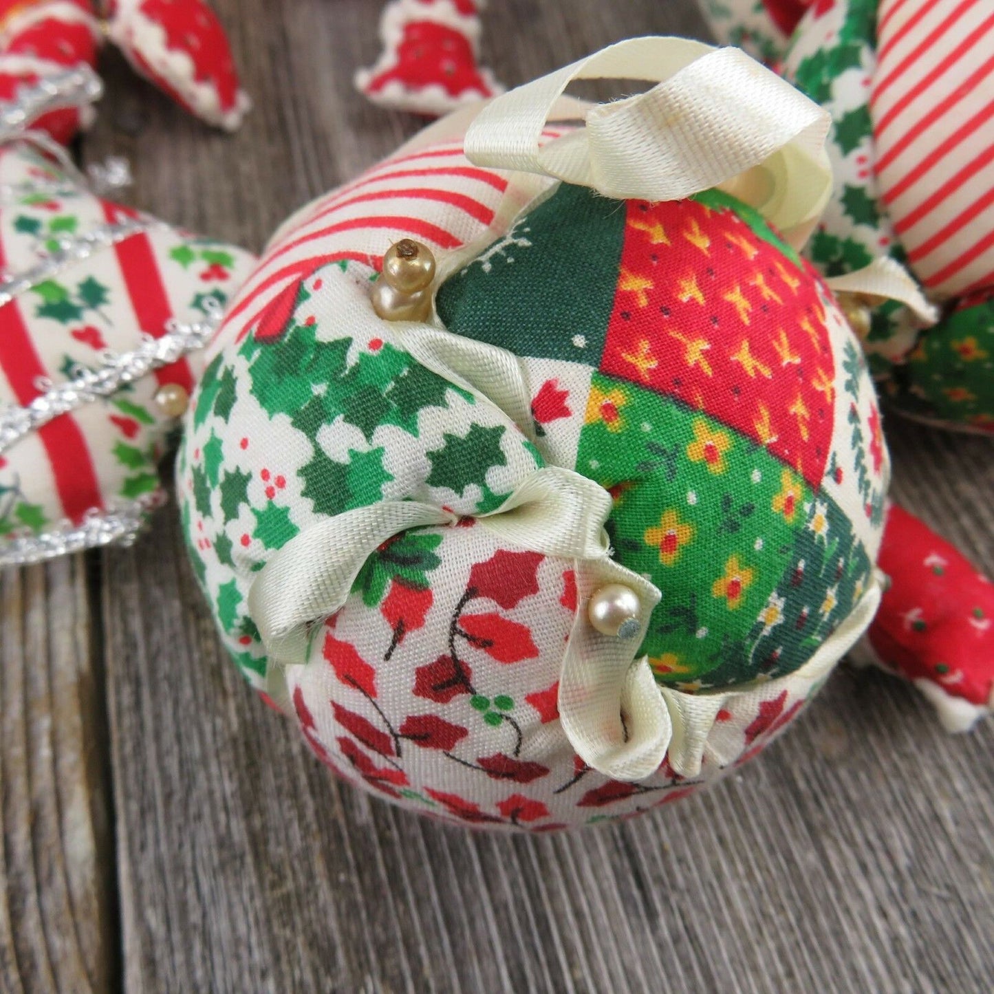 Vintage Christmas Fabric Tree Ornaments Ball Quilt Stuffed Rustic Country Candy
