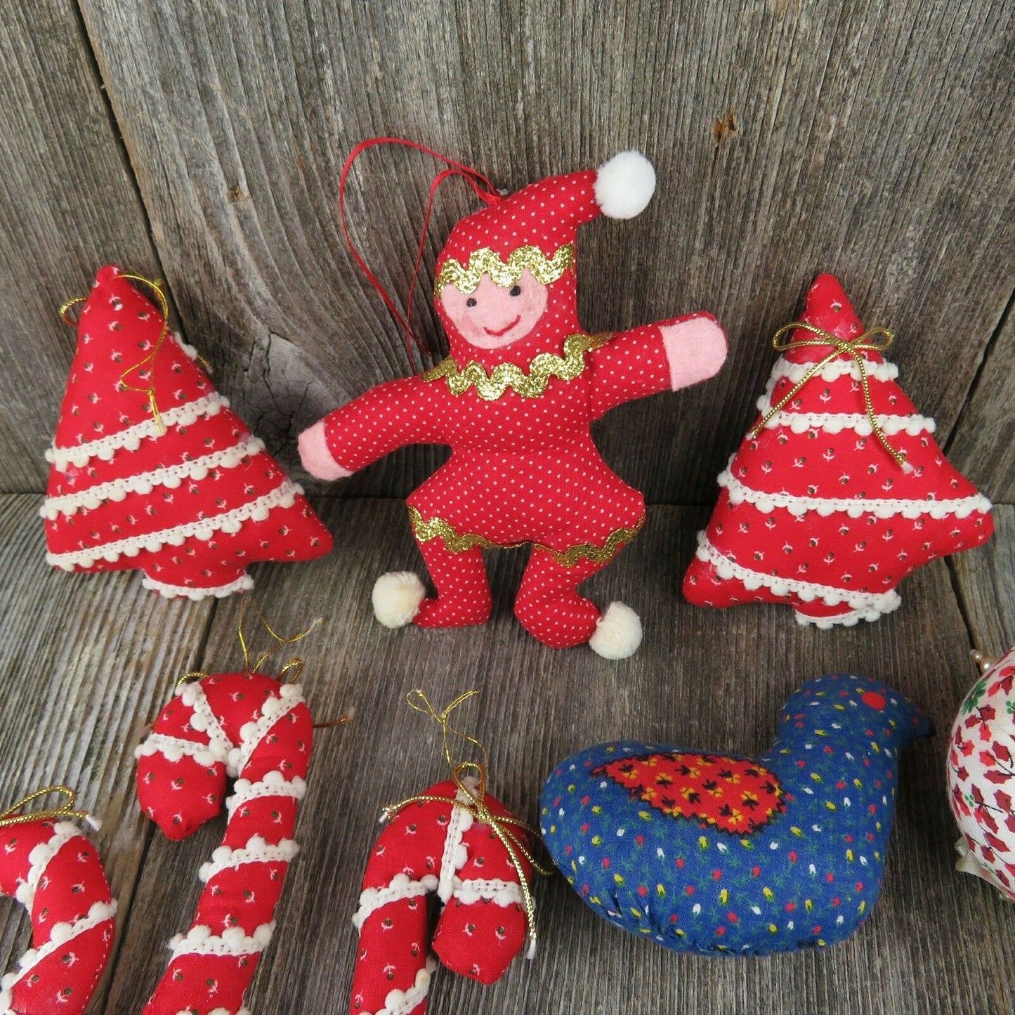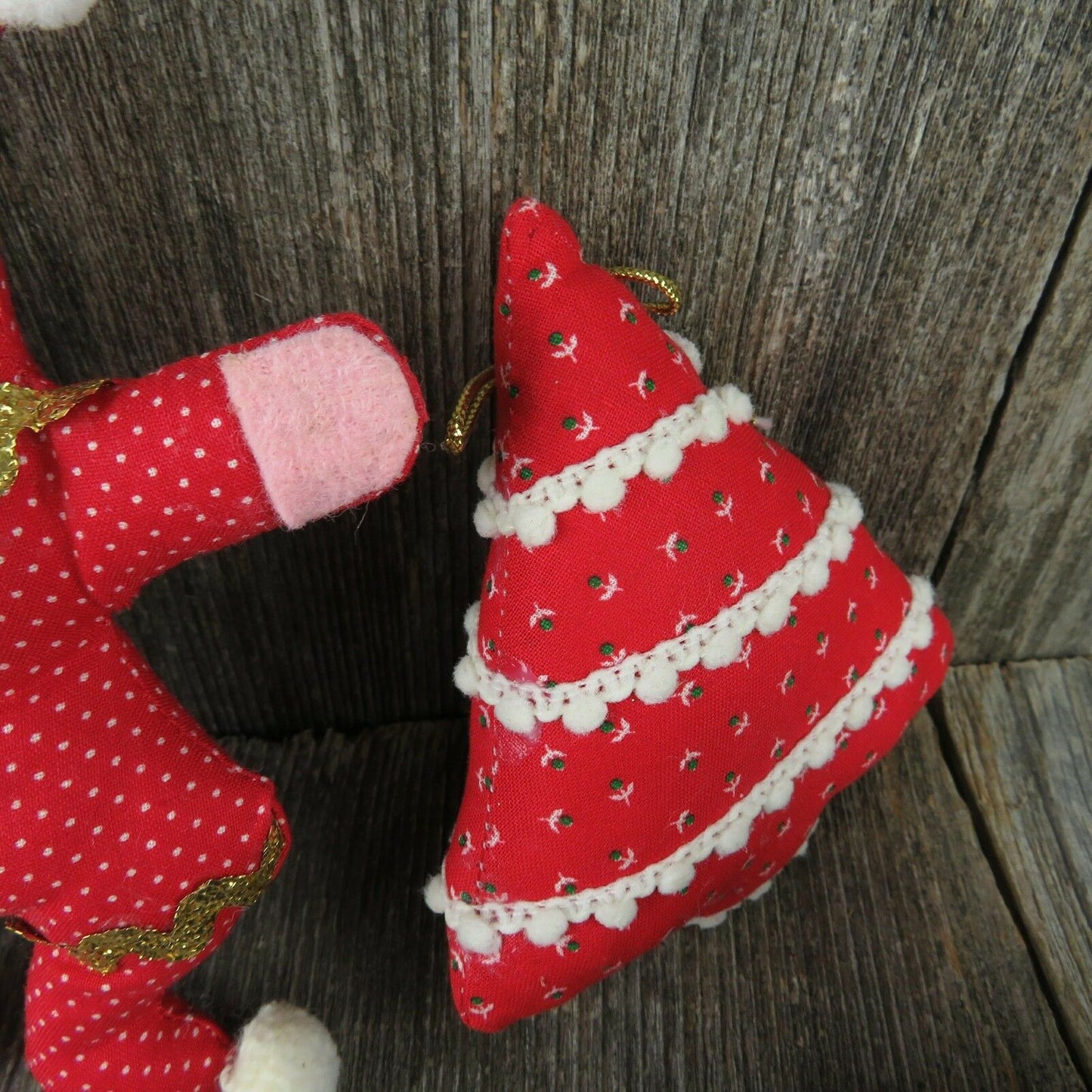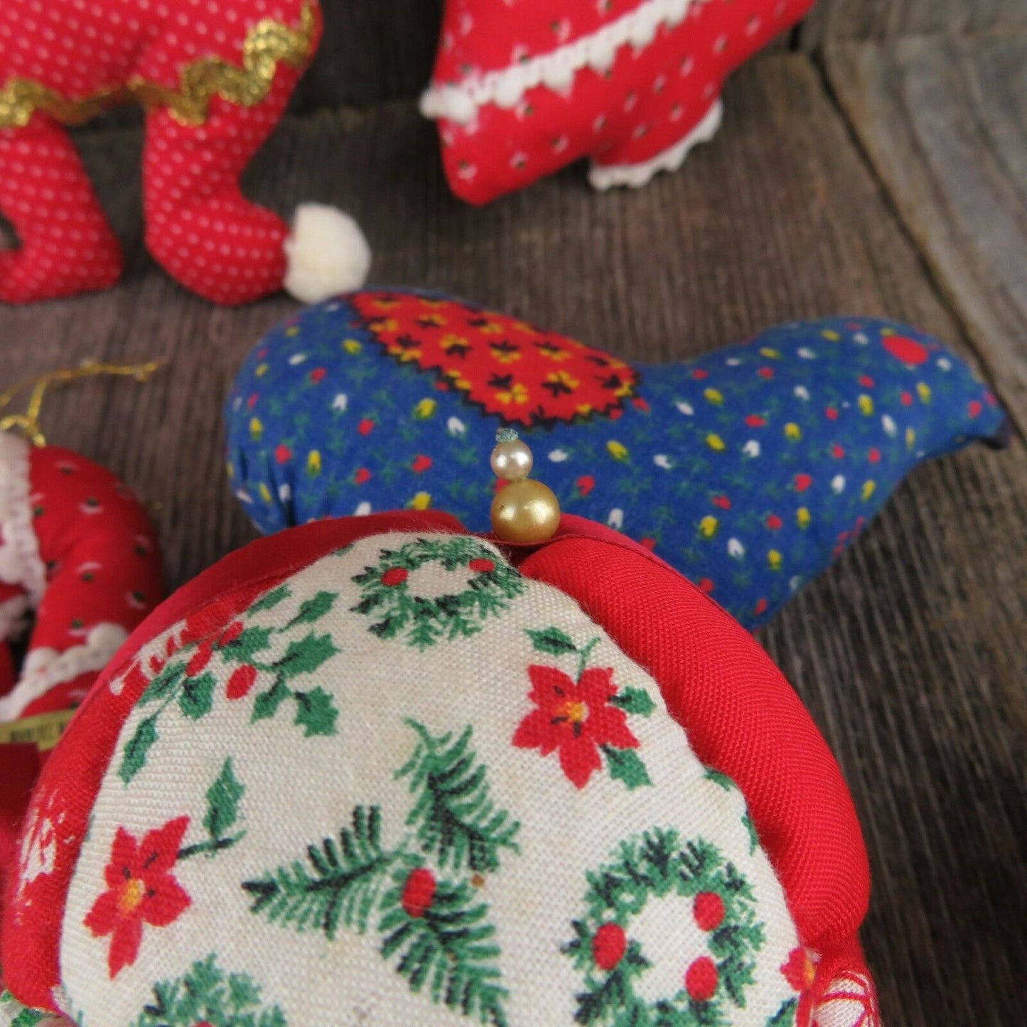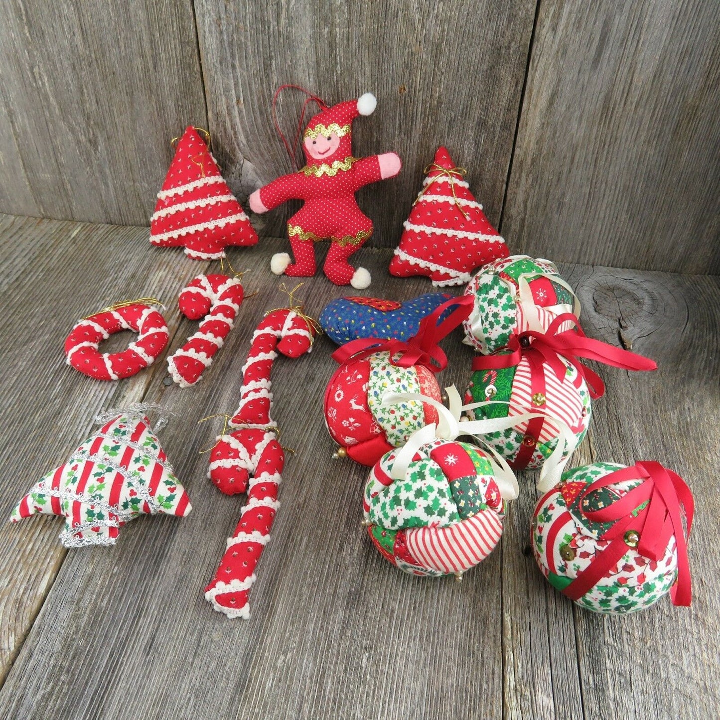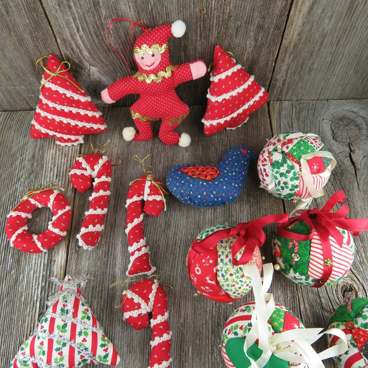 Vintage Christmas Fabric Tree Ornaments Ball Quilt Stuffed Rustic Country Candy