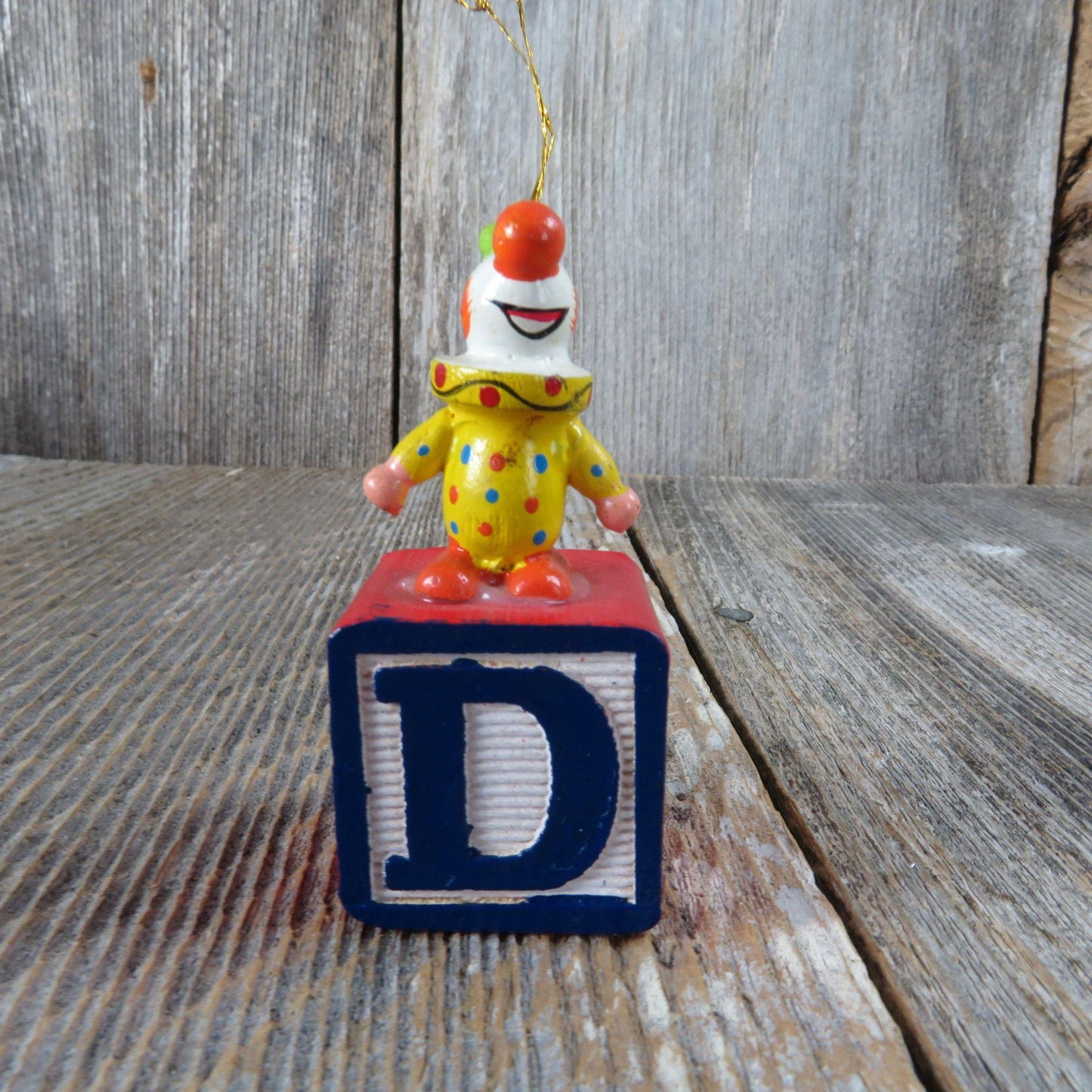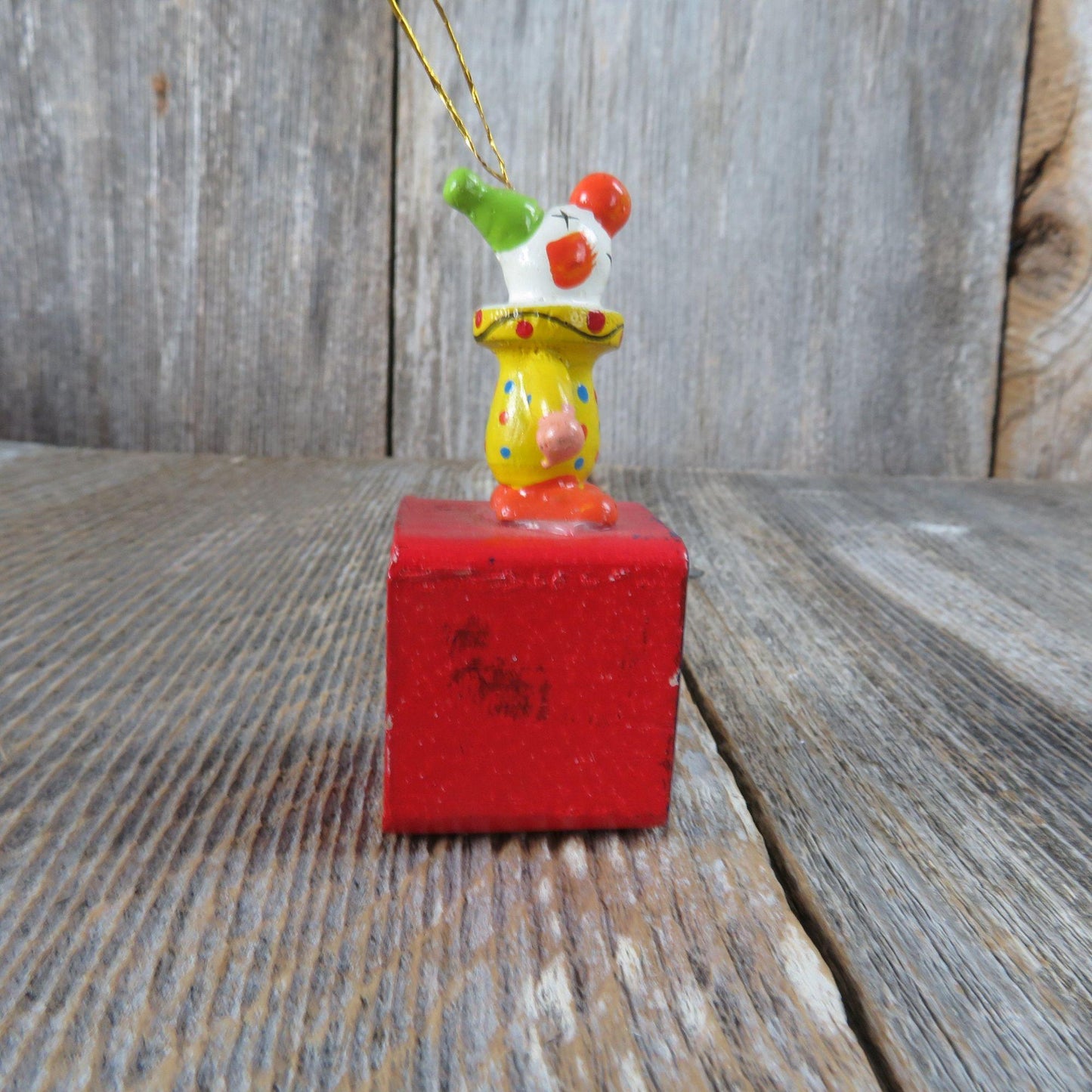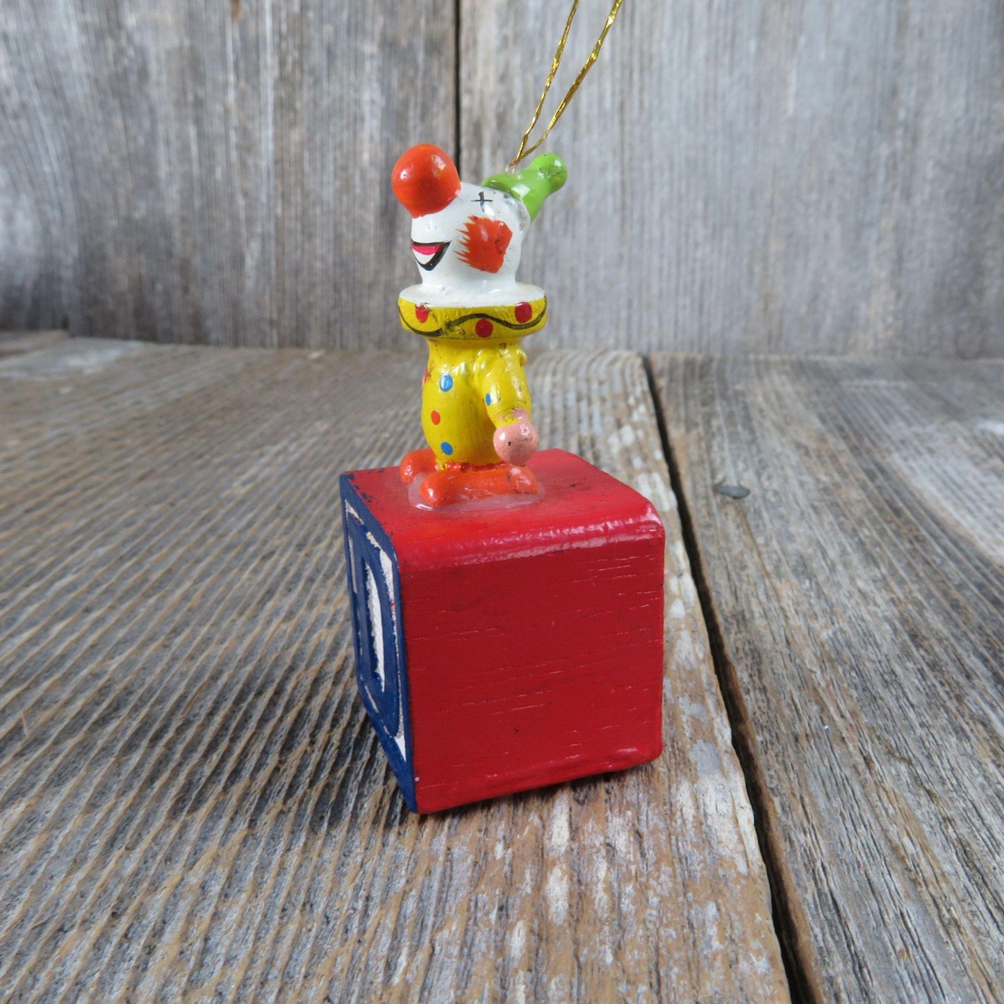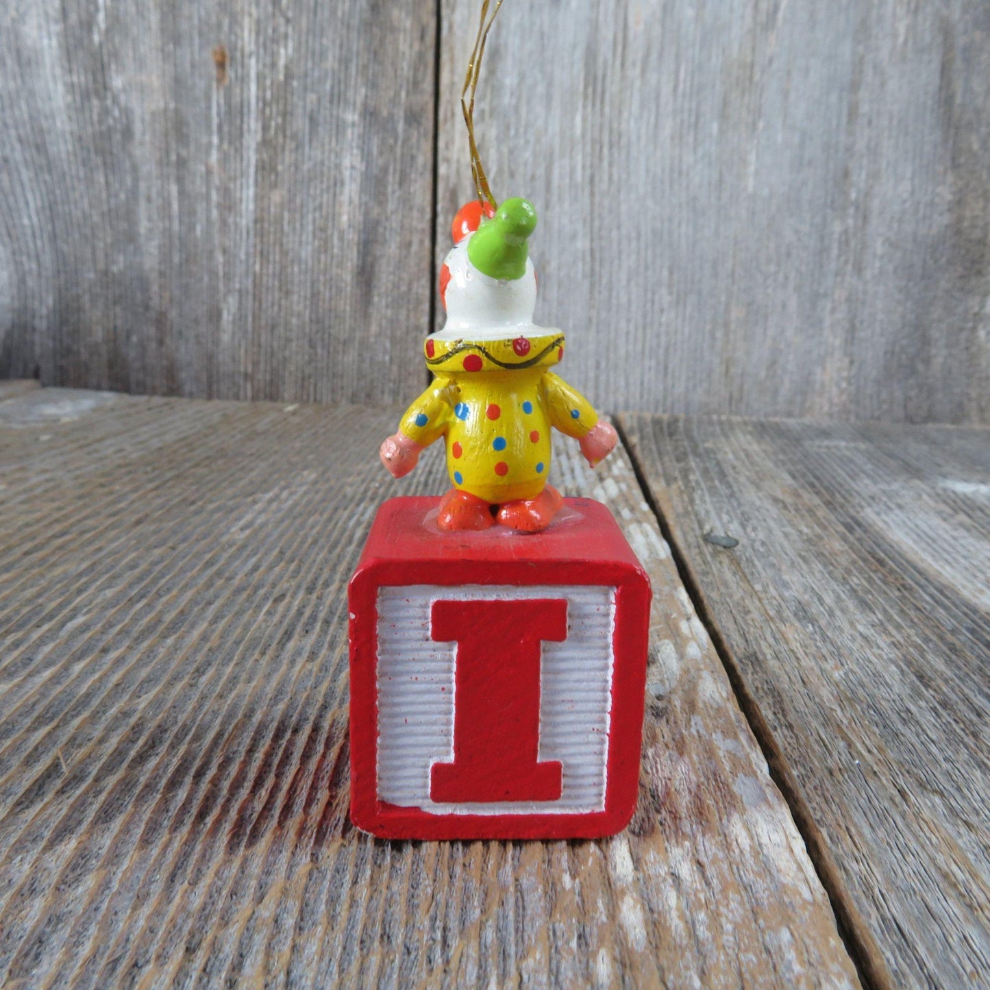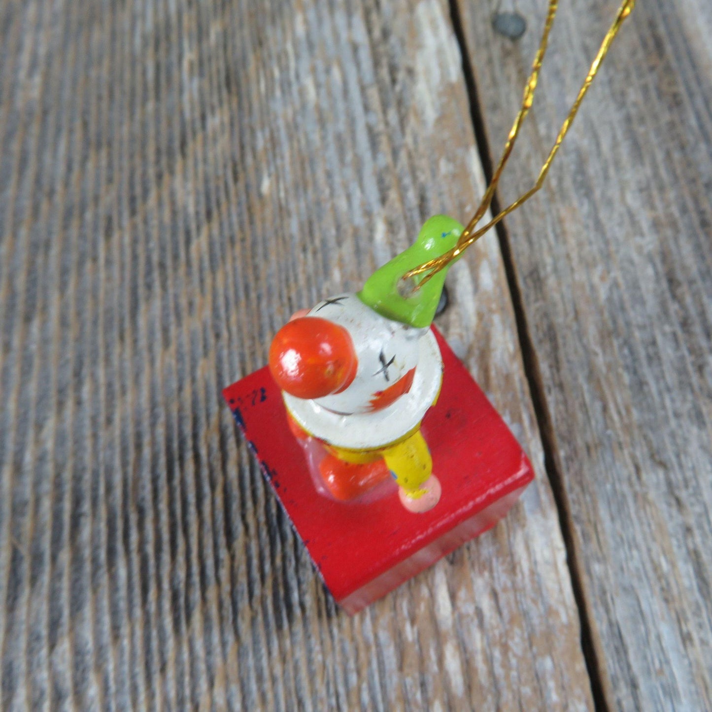 Vtg Wooden Clown on Alphabet Block Wood Christmas Ornament
