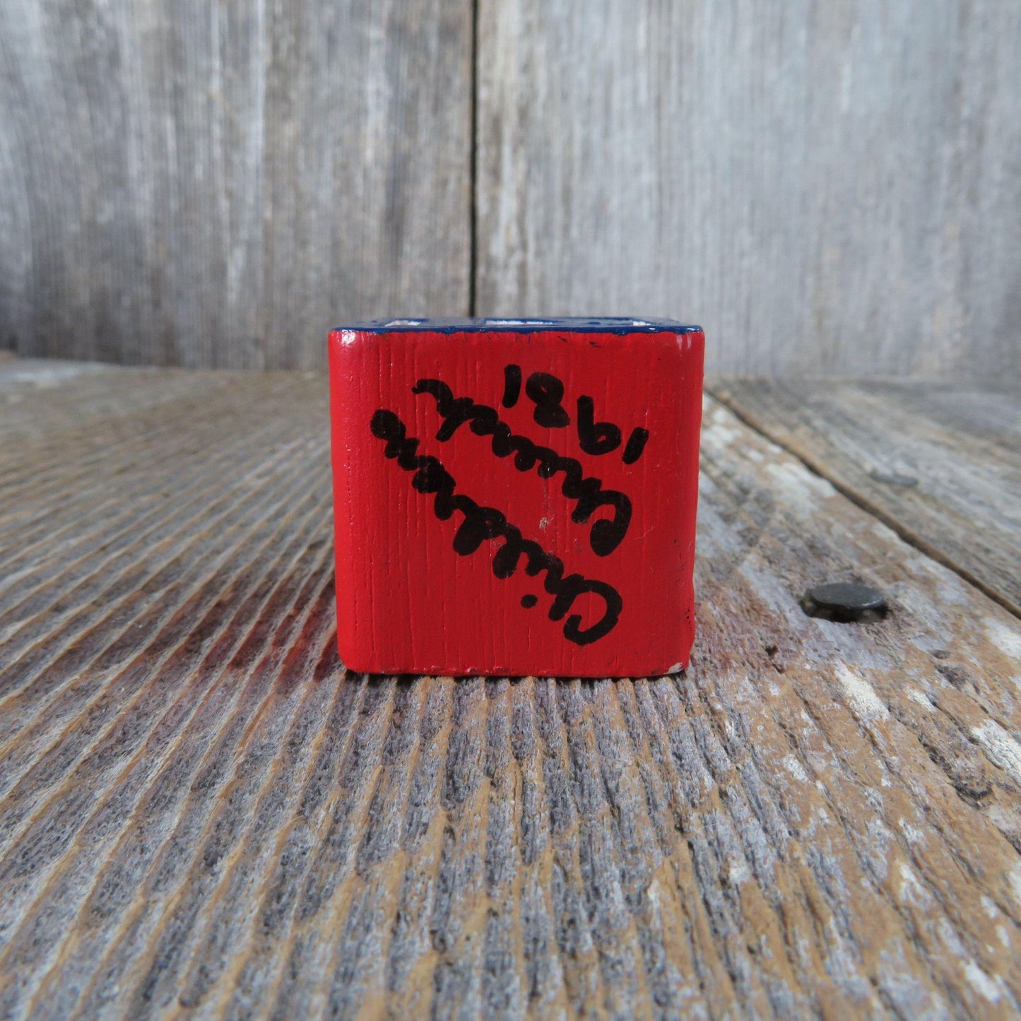 Vintage Clown Alphabet Block Wood Ornament Blue Red Yellow Wooden