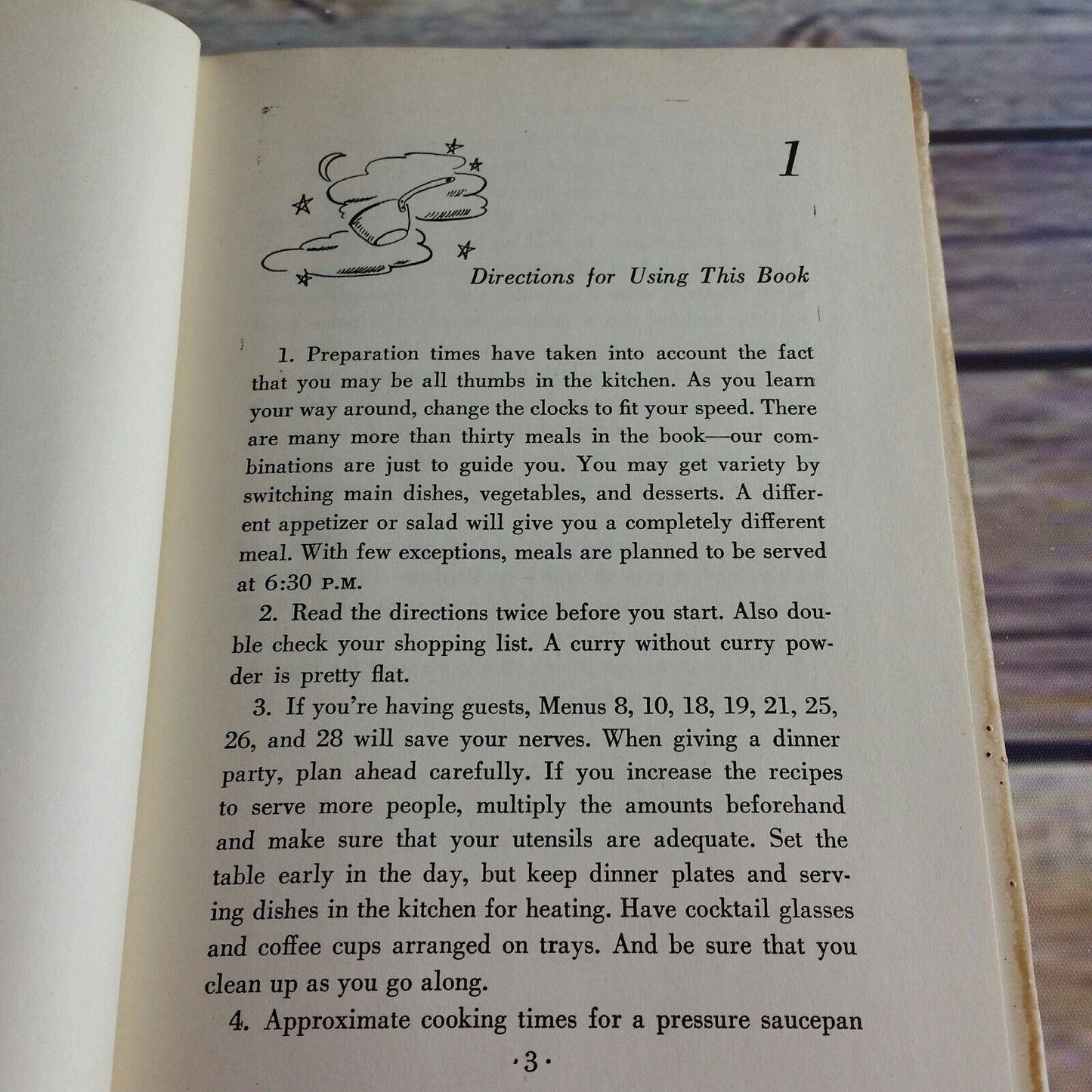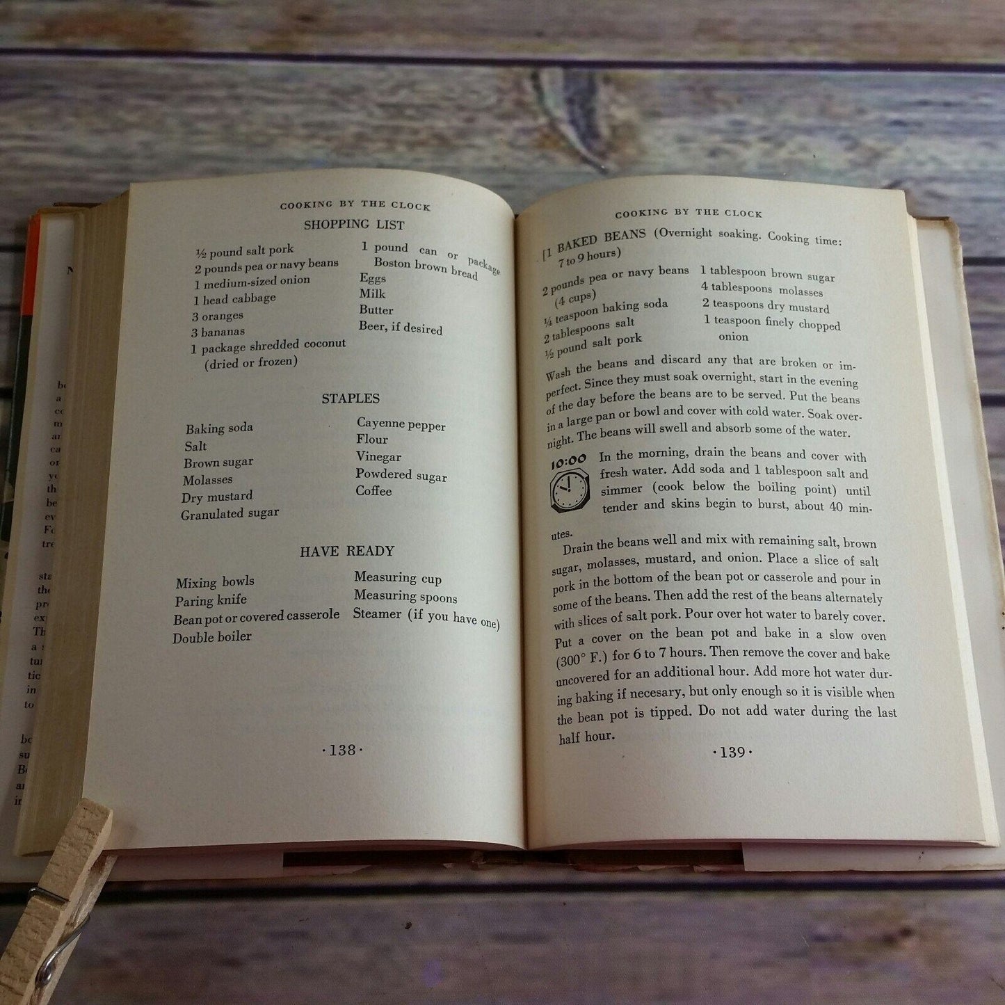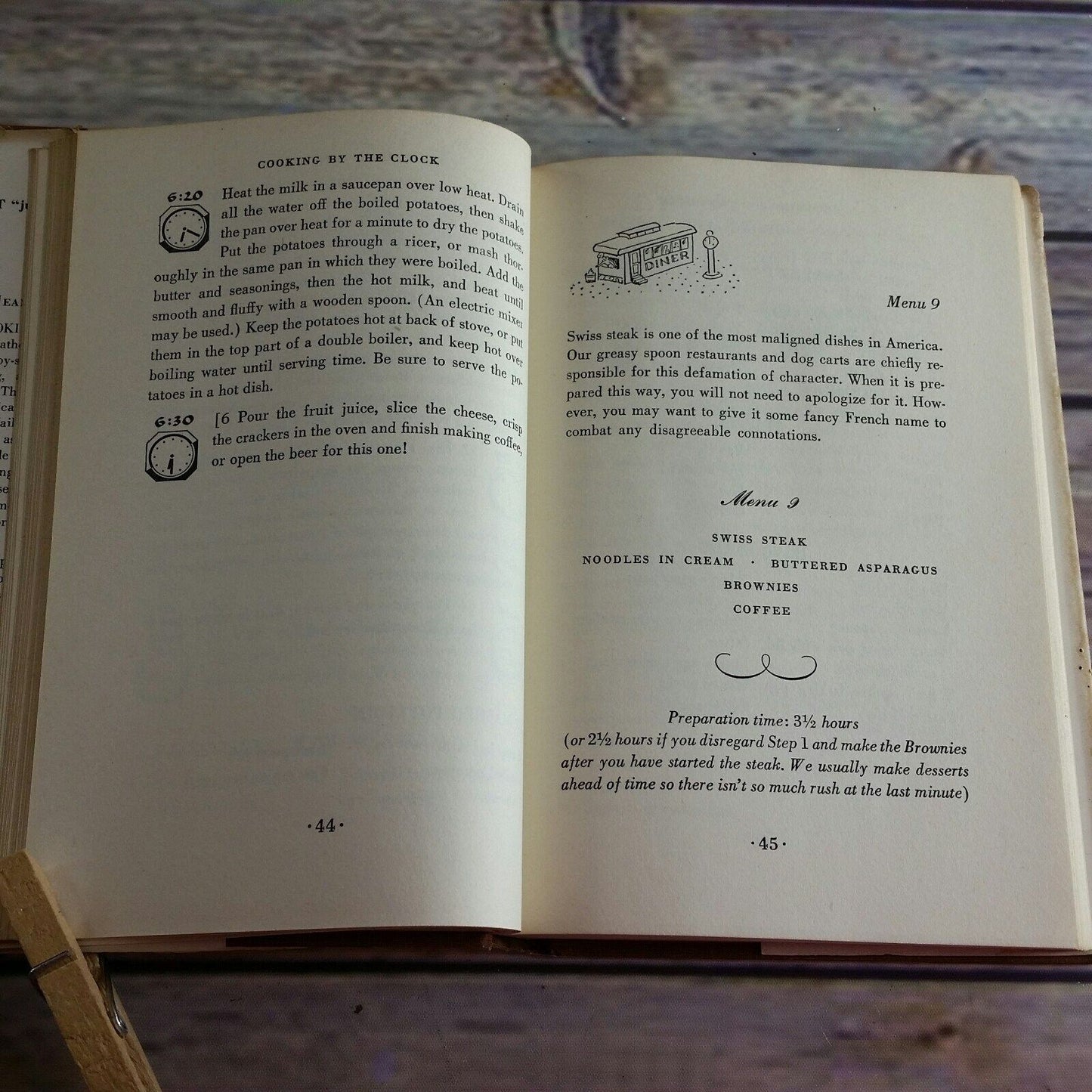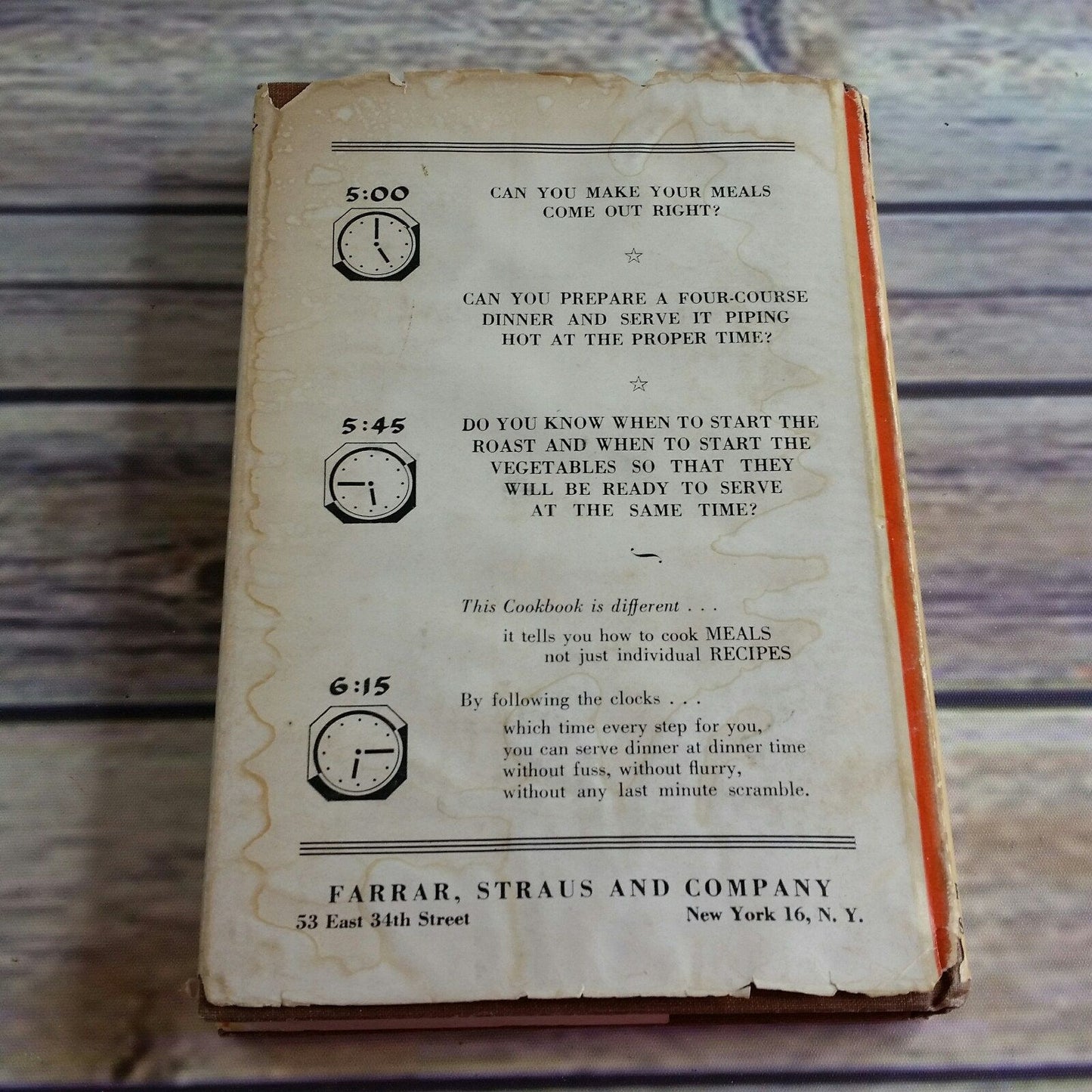 Vintage Cookbook Cooking by the Clock Step by Step Preparation of Meals Jean and Clarke Mattimore 1948 Hardcover Recipes NO Dust Jacket
