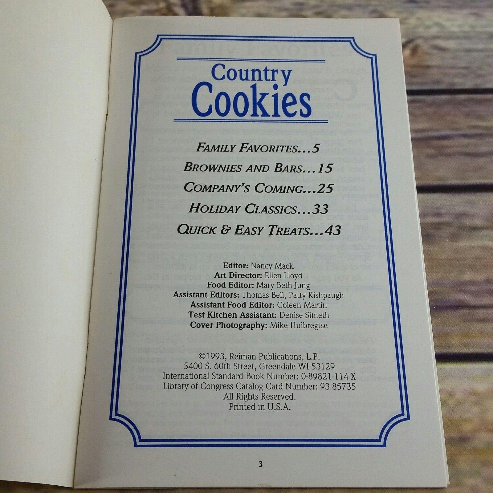 Vintage Cookbook Country Cookies Booklet Nancy Mack 1993 Reiman Pub Cookie Recipes Booklet Family Favorites Brownies Bars Holiday Quick