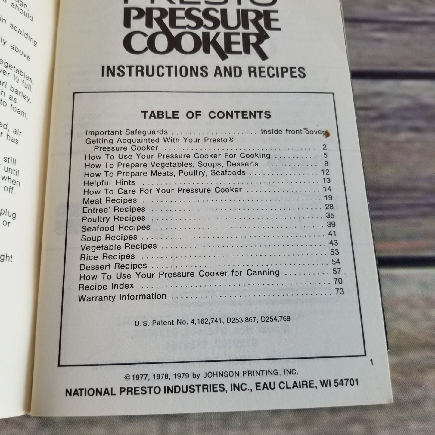 Vintage Cookbook Presto Pressure Cooker Recipes and Instructions 1970s Manual 1979 Canner Canning