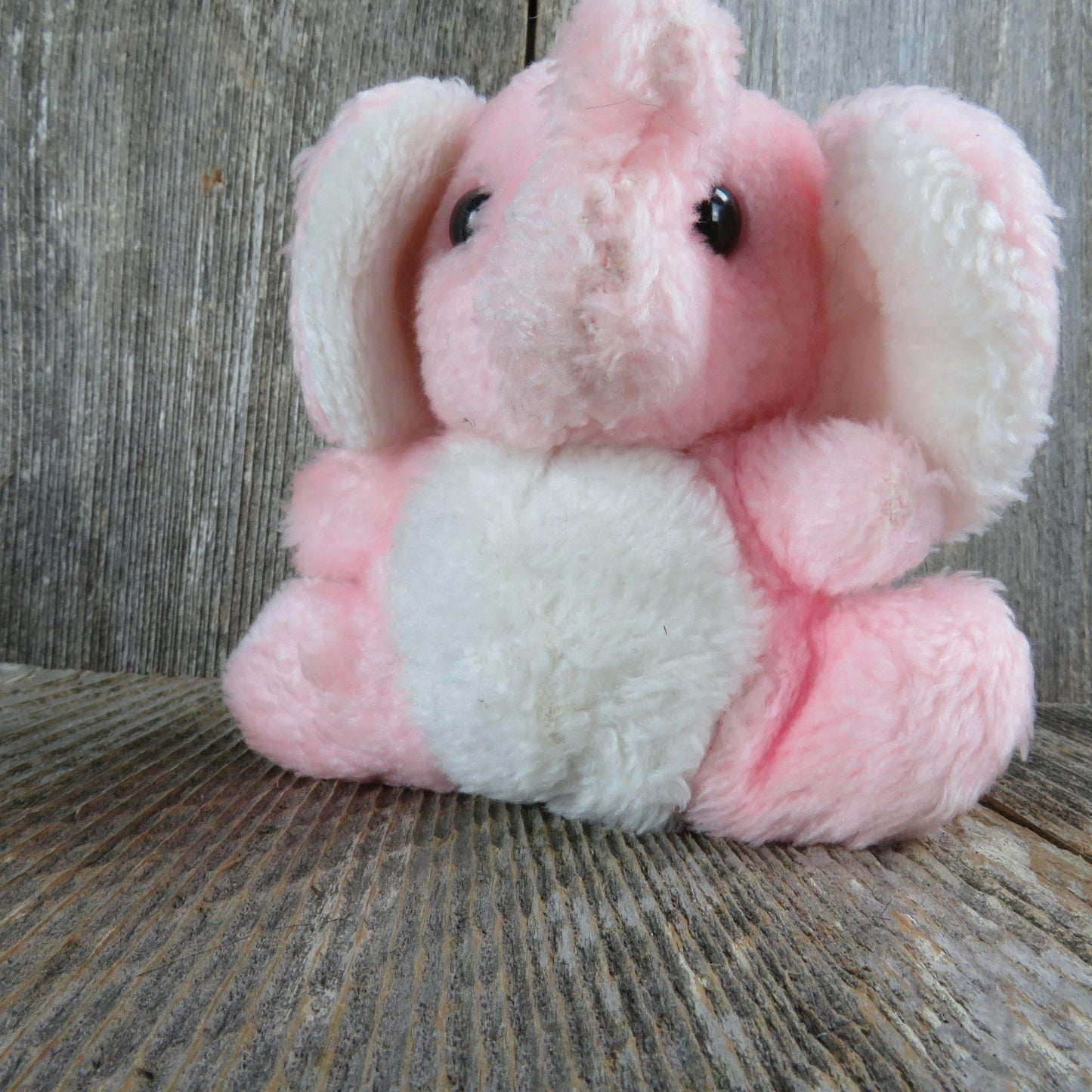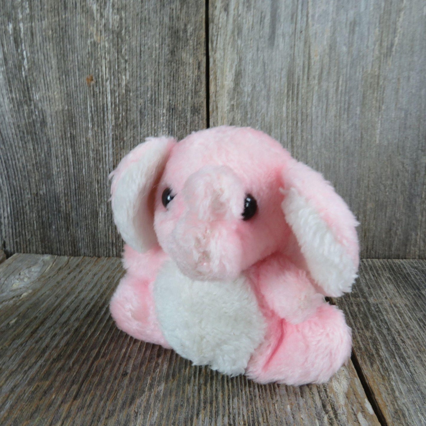 Vintage Elephant Plush Dakin Pink White Stuffed Gray Tags 1978 Nut Filled Mini