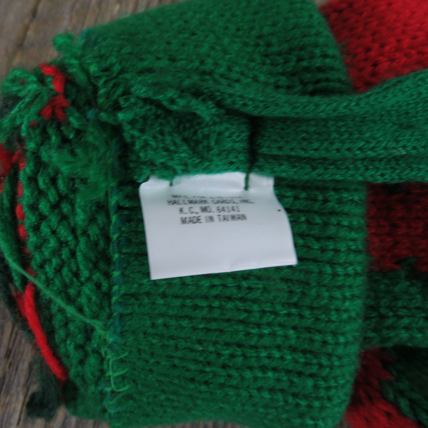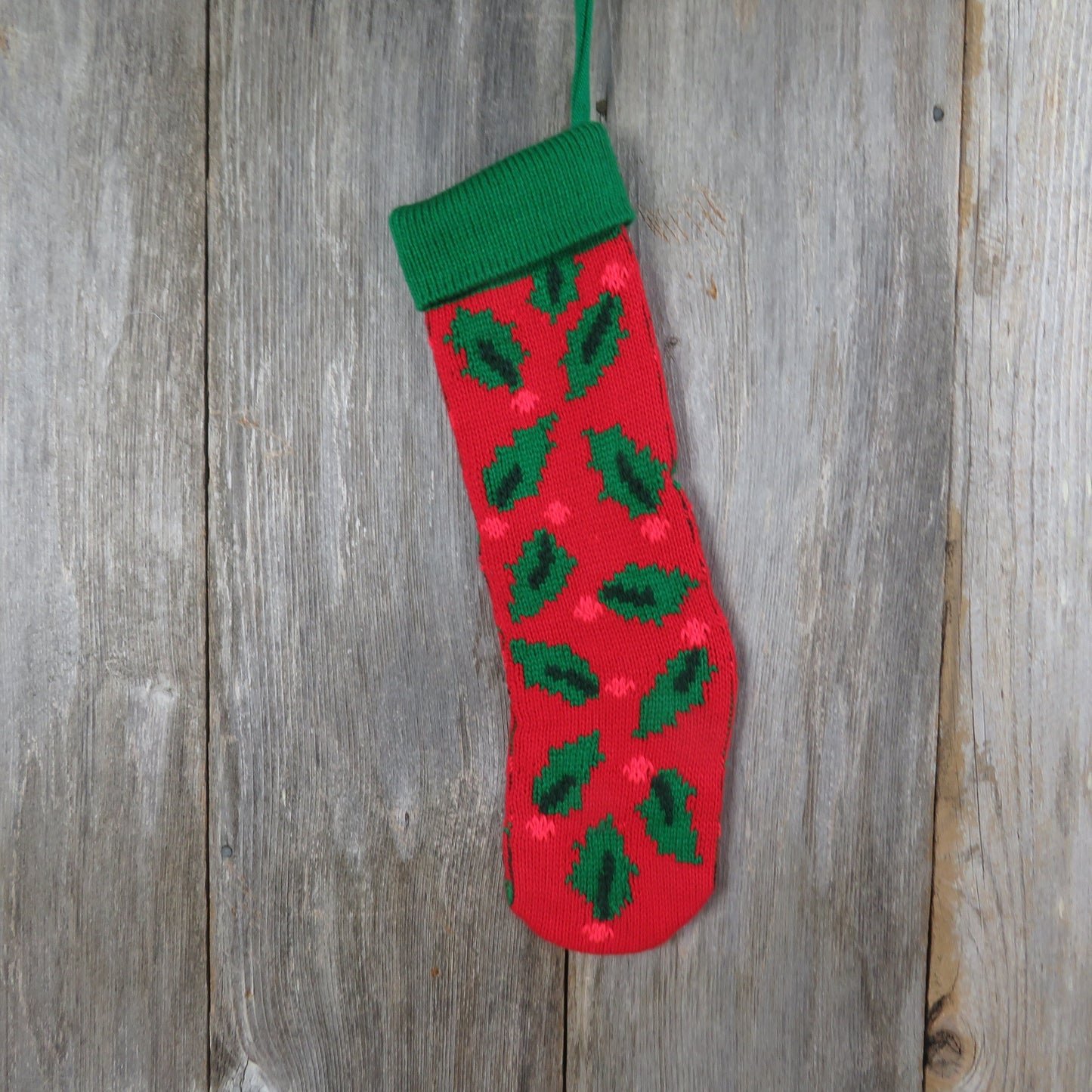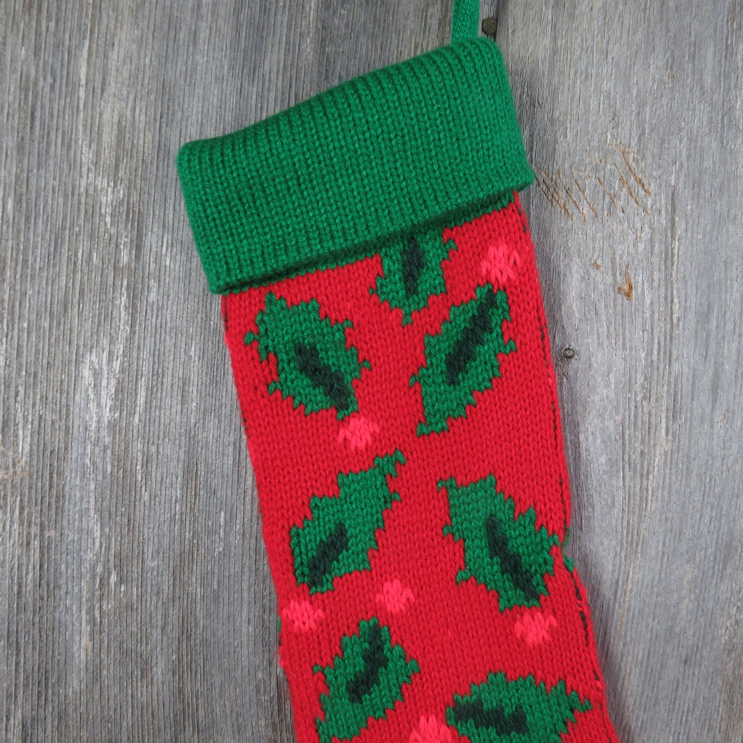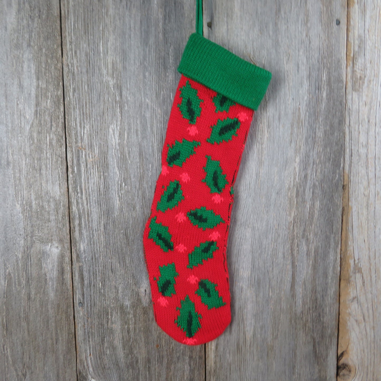 Vintage Knit Holly Leaf Stocking Hallmark Christmas Red Green Abstract Knitted Chunky 1994