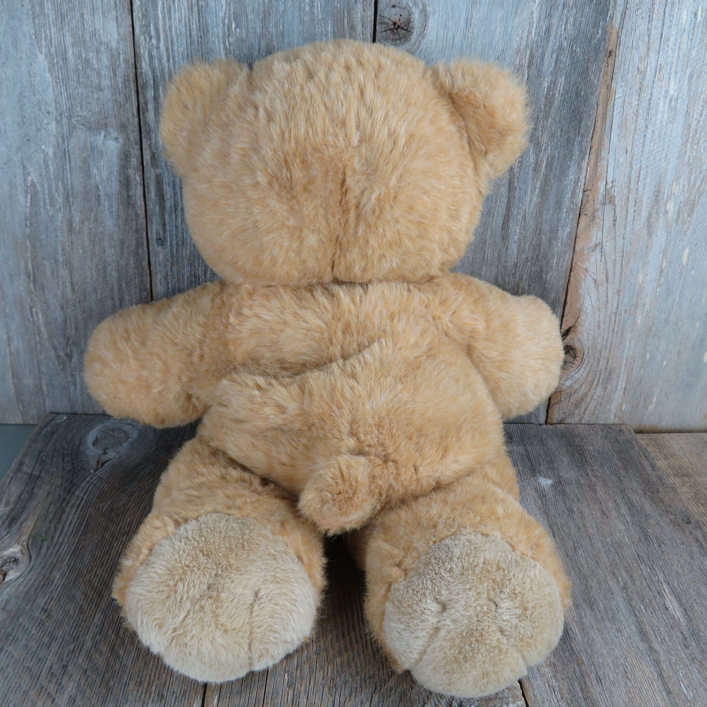 Vintage Large Teddy Bear Plush Gold Yellow Stuffed Animal 28 Inches Made In Korea