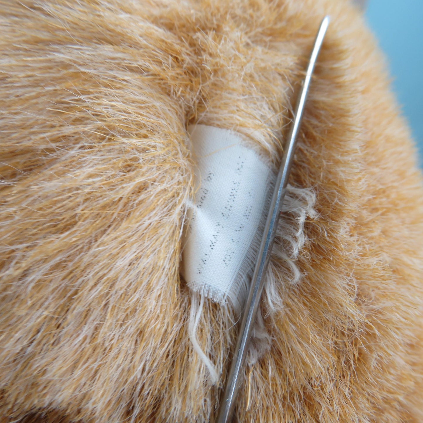 This yellow bear stuffed animal measures about 28 inches from the top of the head to the bottom of the feet.