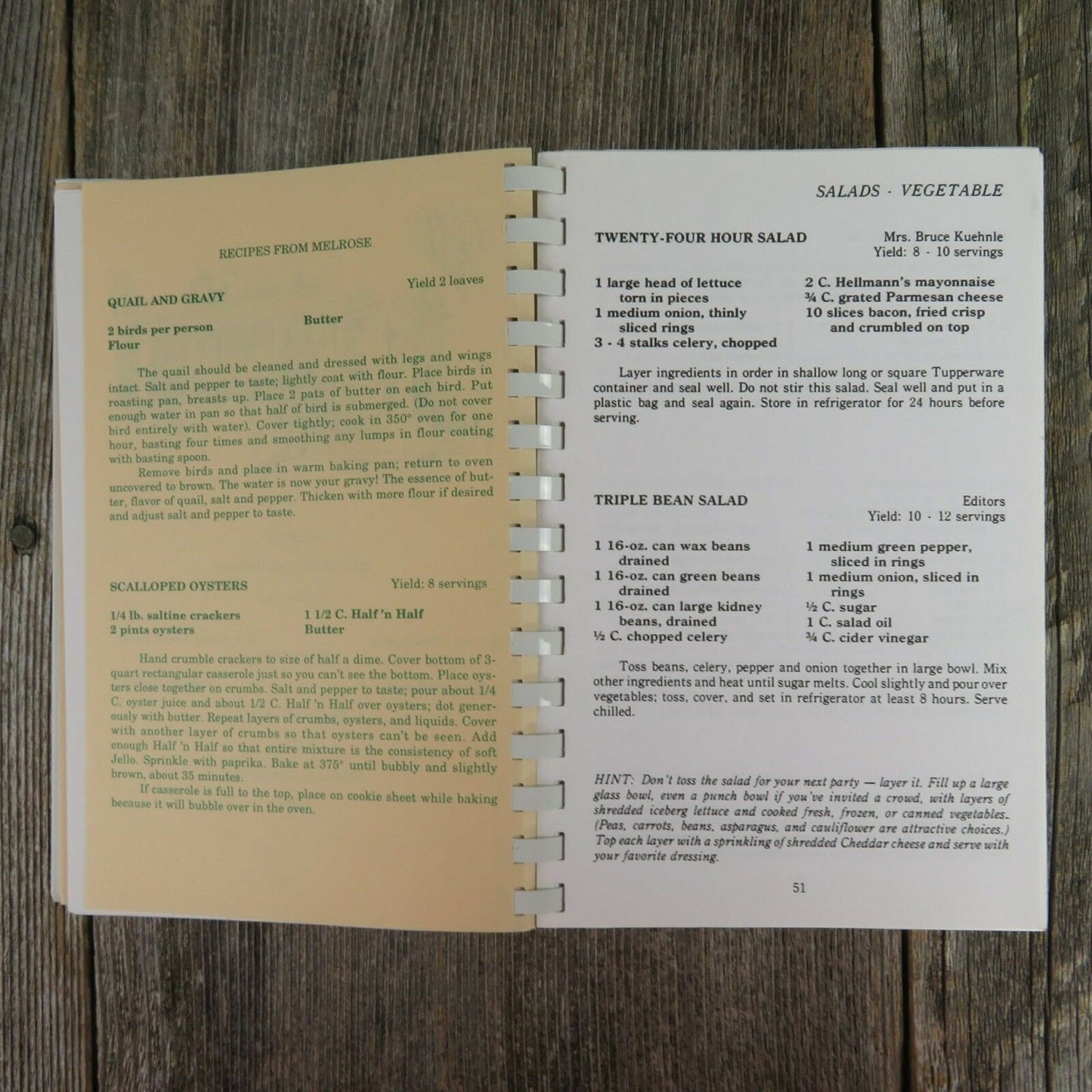 Light staining to the covers, otherwise, normal use wear as expected of a cookbook of this age. Please see all pictures for details.