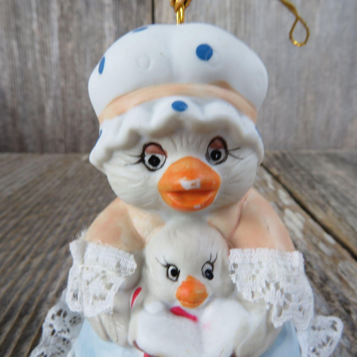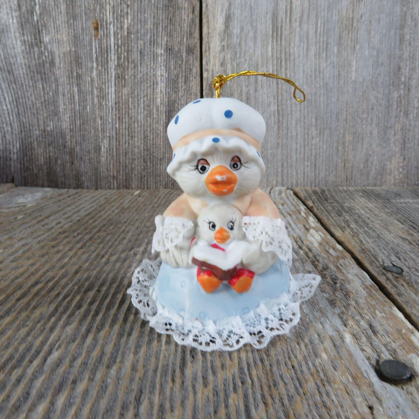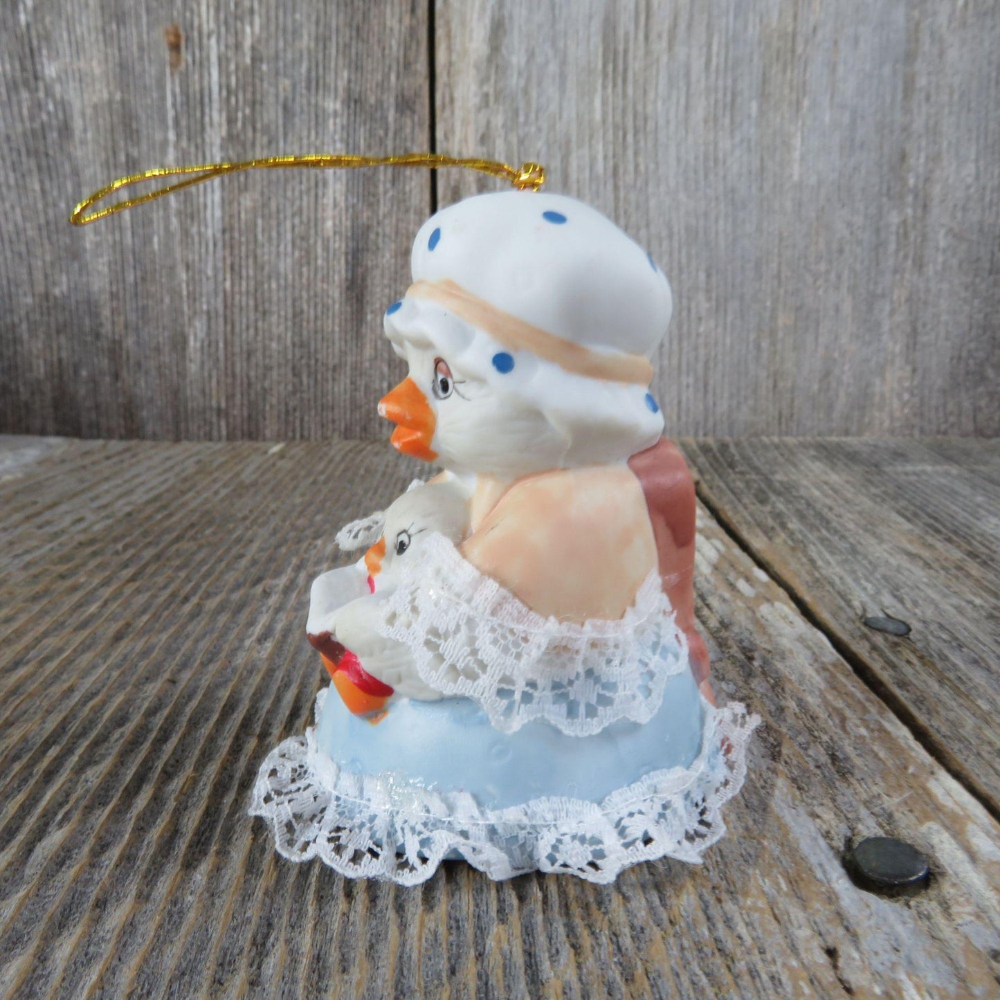 Vintage Mother Chicken with Chick Bell Ornament Mama Christmas Jasco Ceramic Porcelain Taiwan