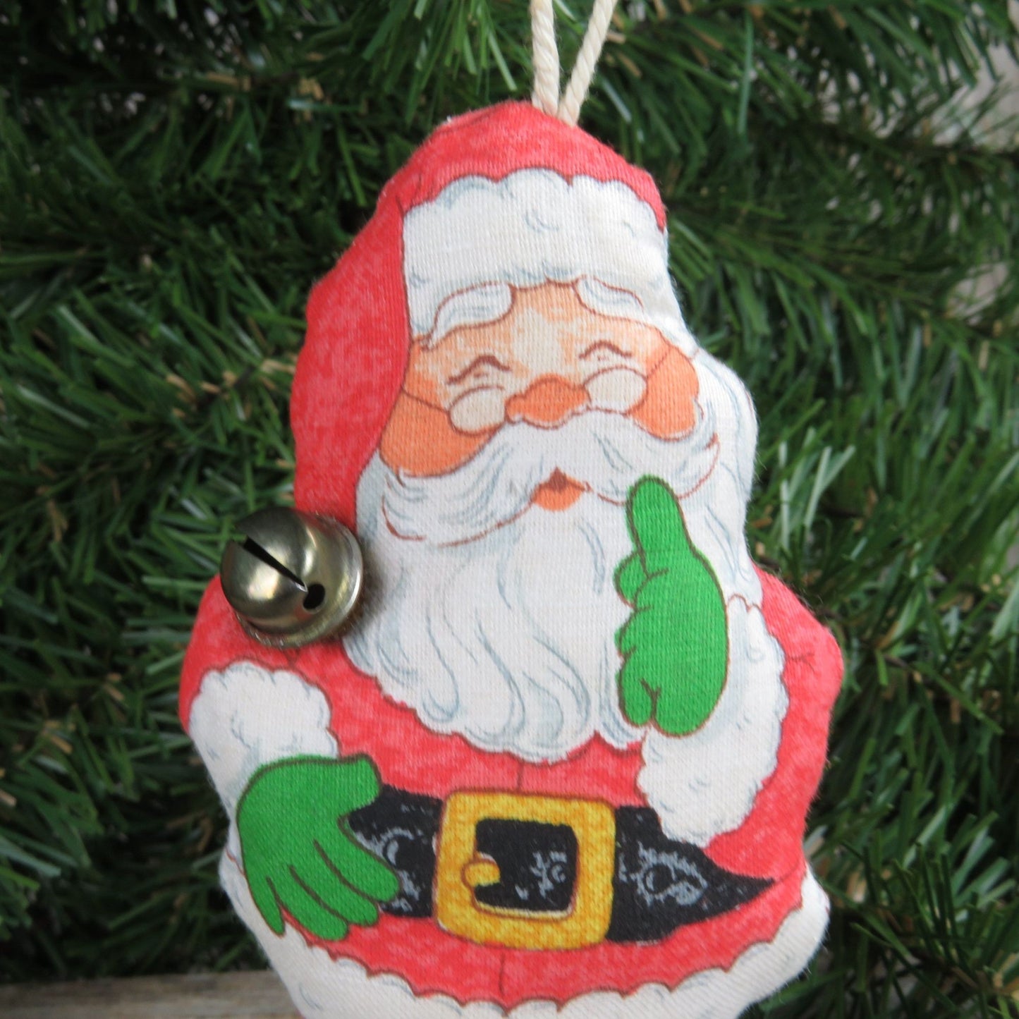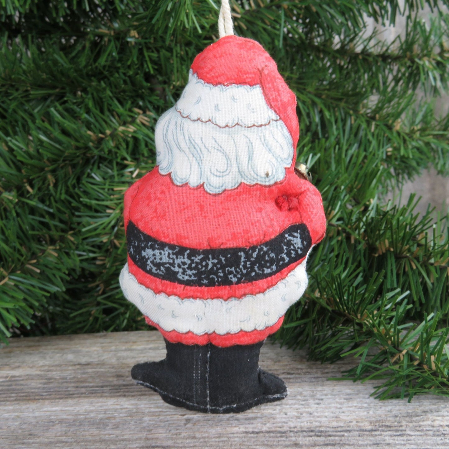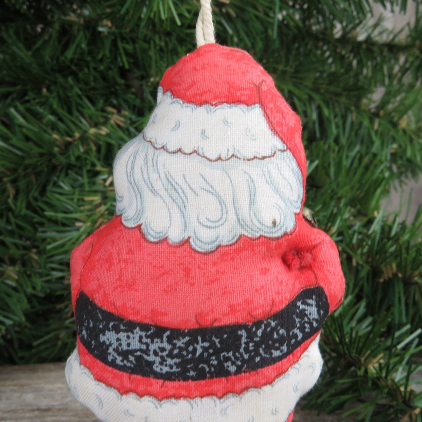 Vtg Printed Soft Body Santa with Bell Christmas Ornament