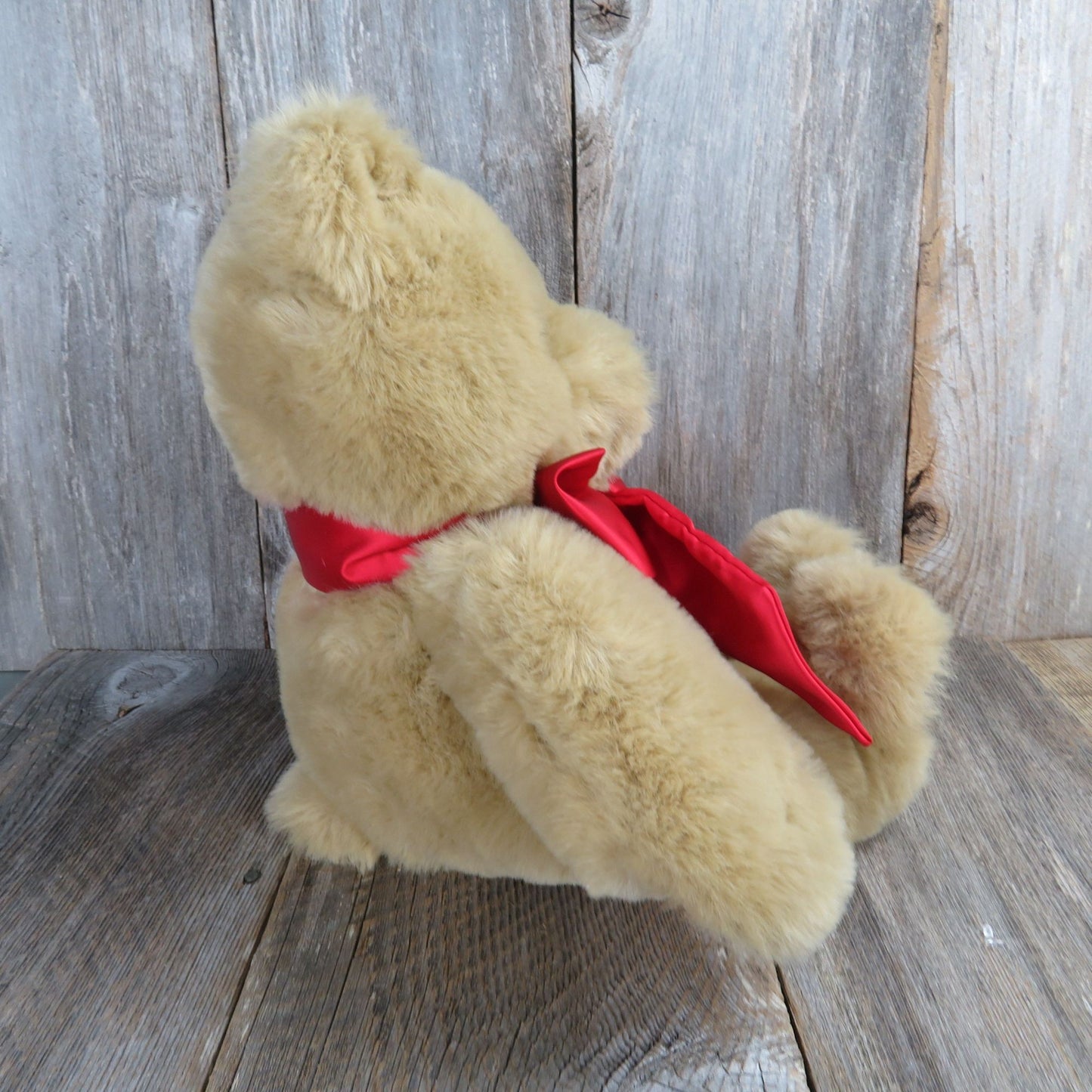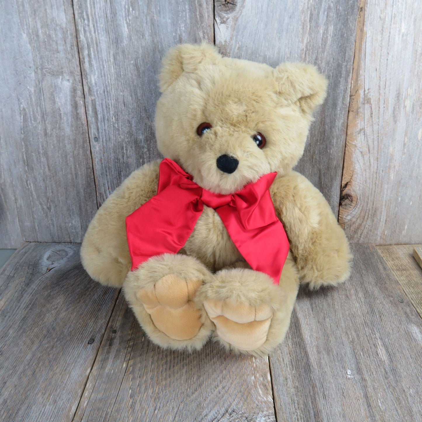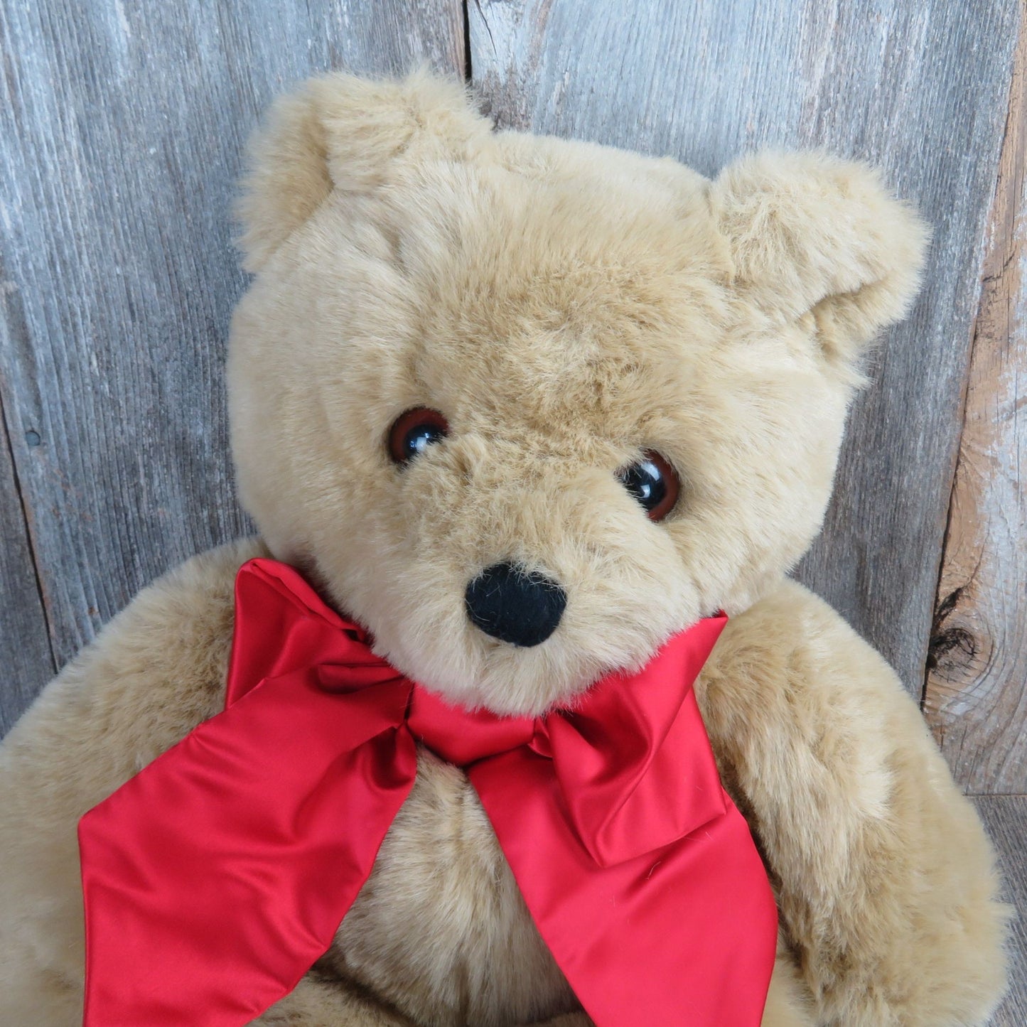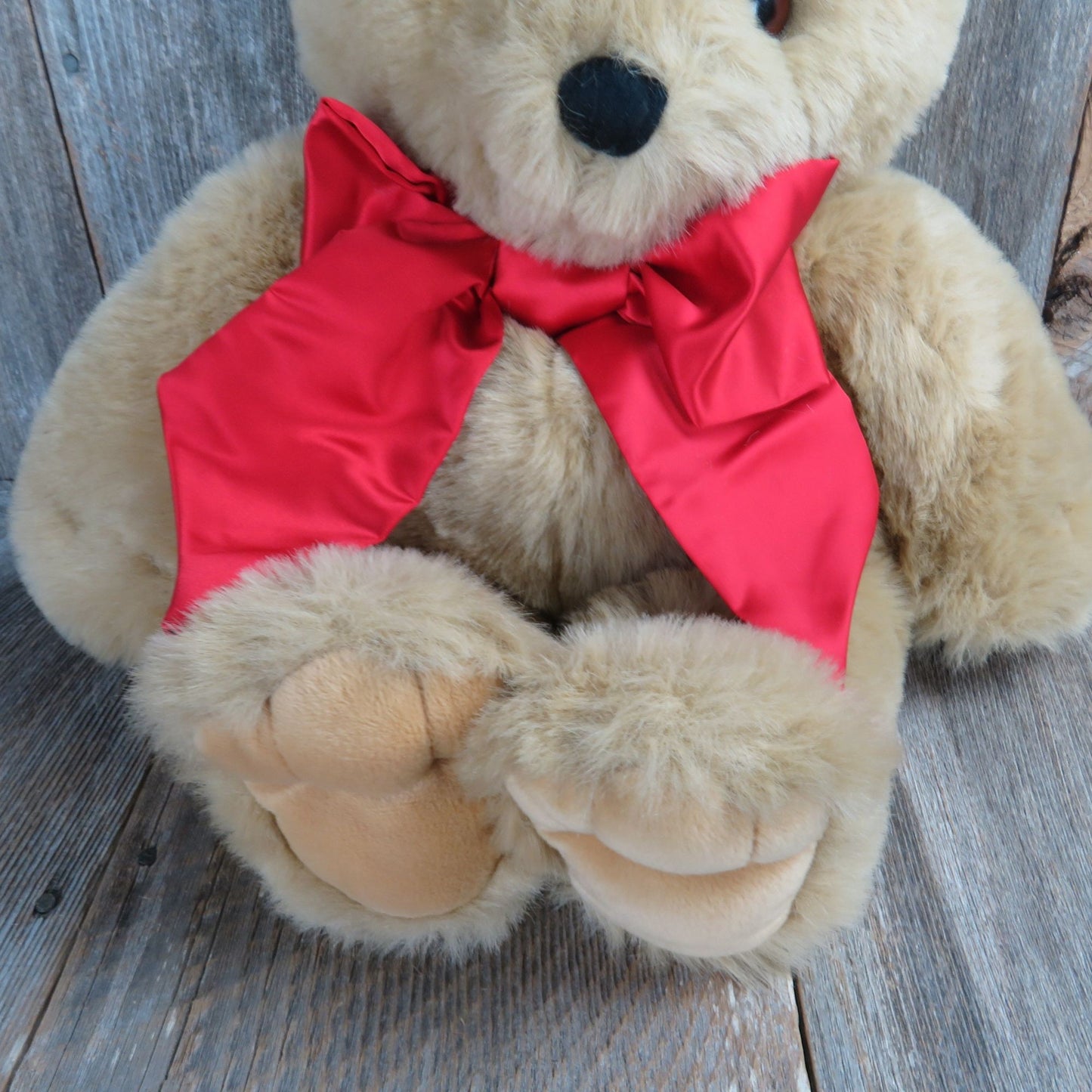 Vtg Large Teddy Bear Plush with Big Red Bow by Plush Creations 1989