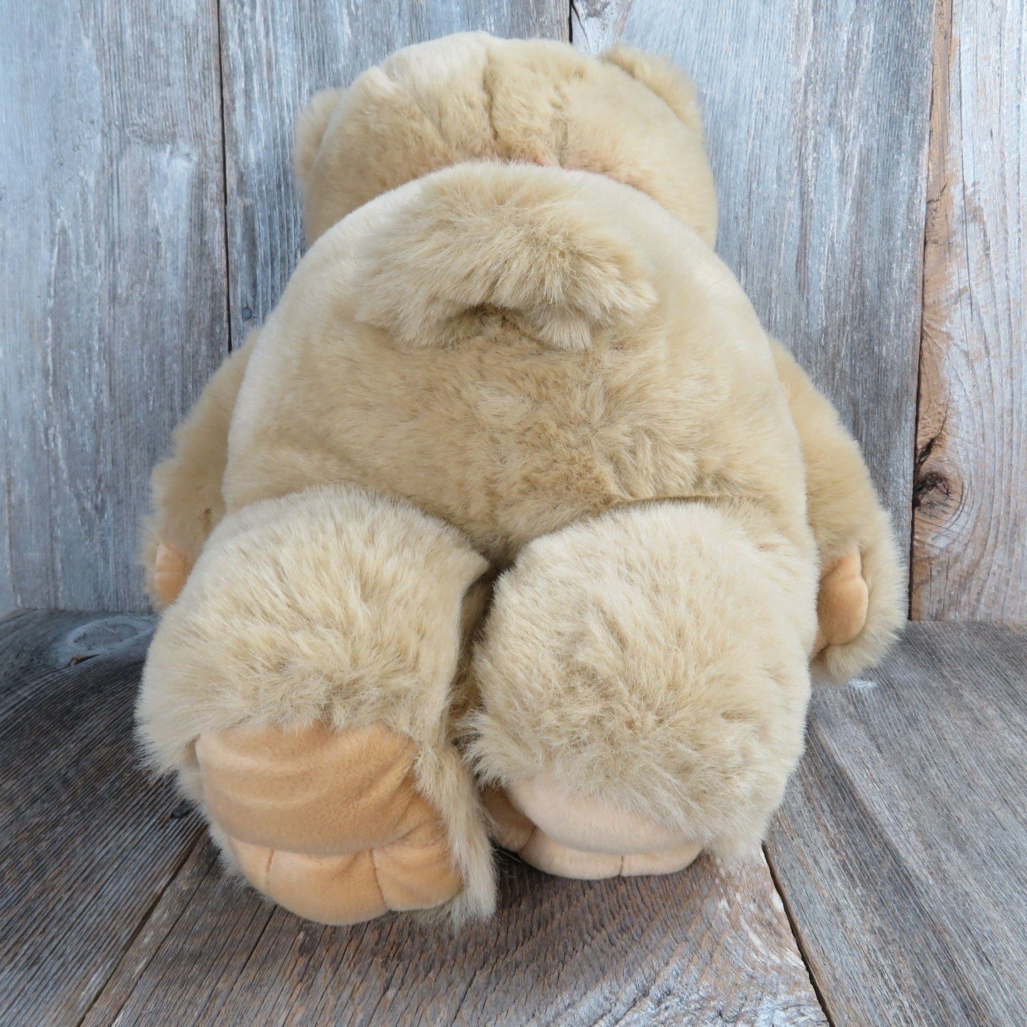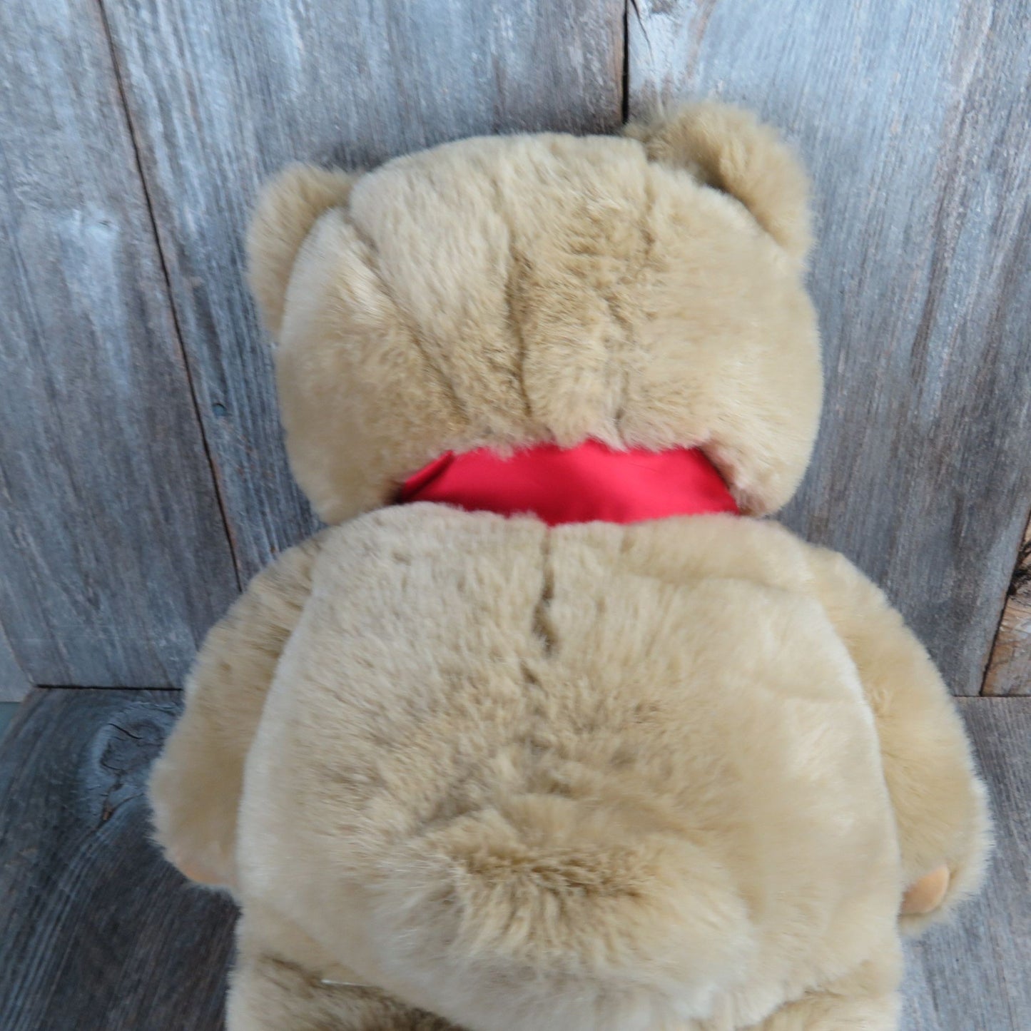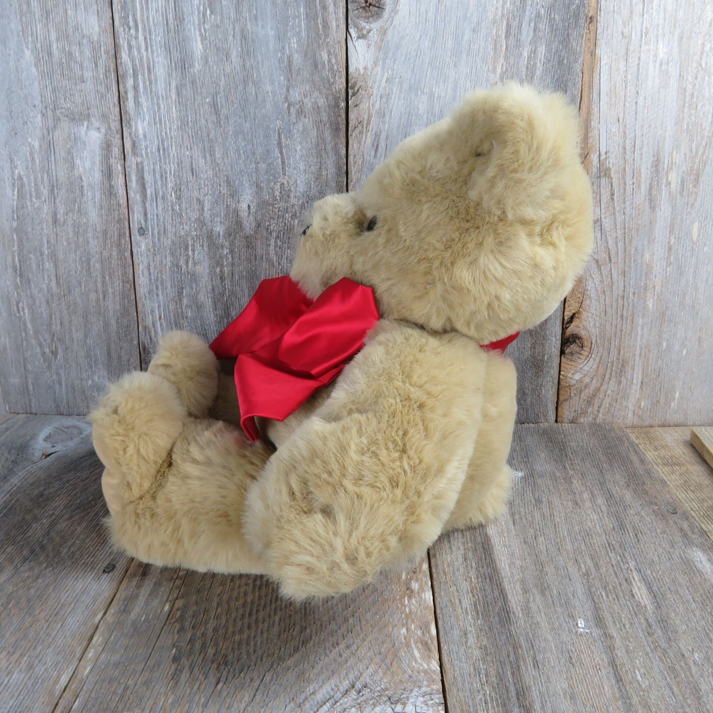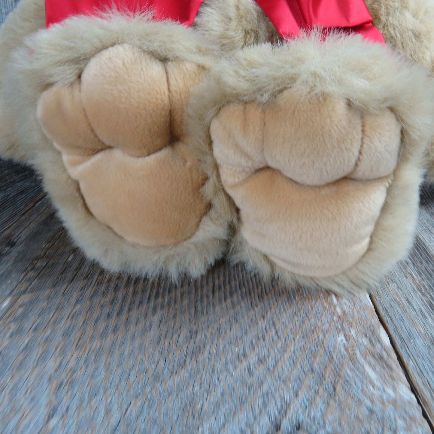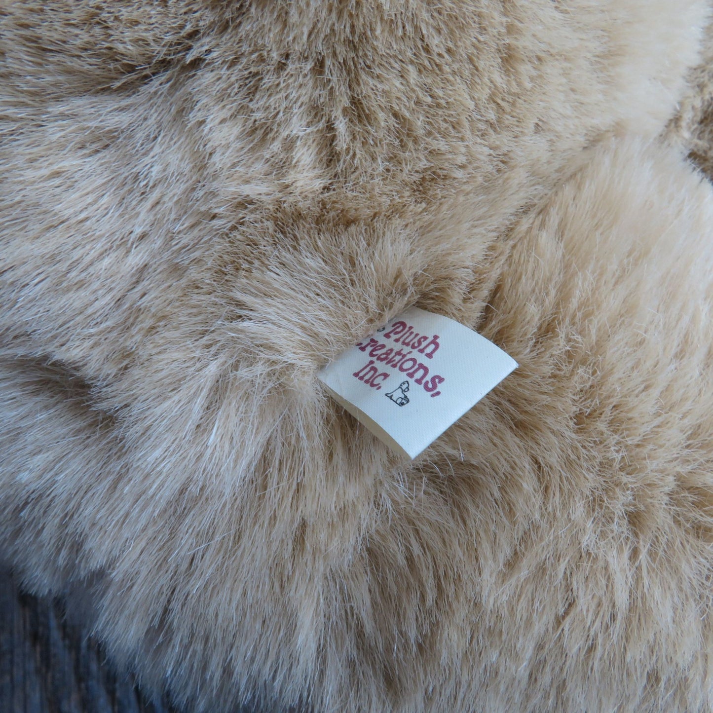 Vintage Teddy Bear Plush Creations Big Red Bow Large Tan Long Hair Stuffed Animal 1989