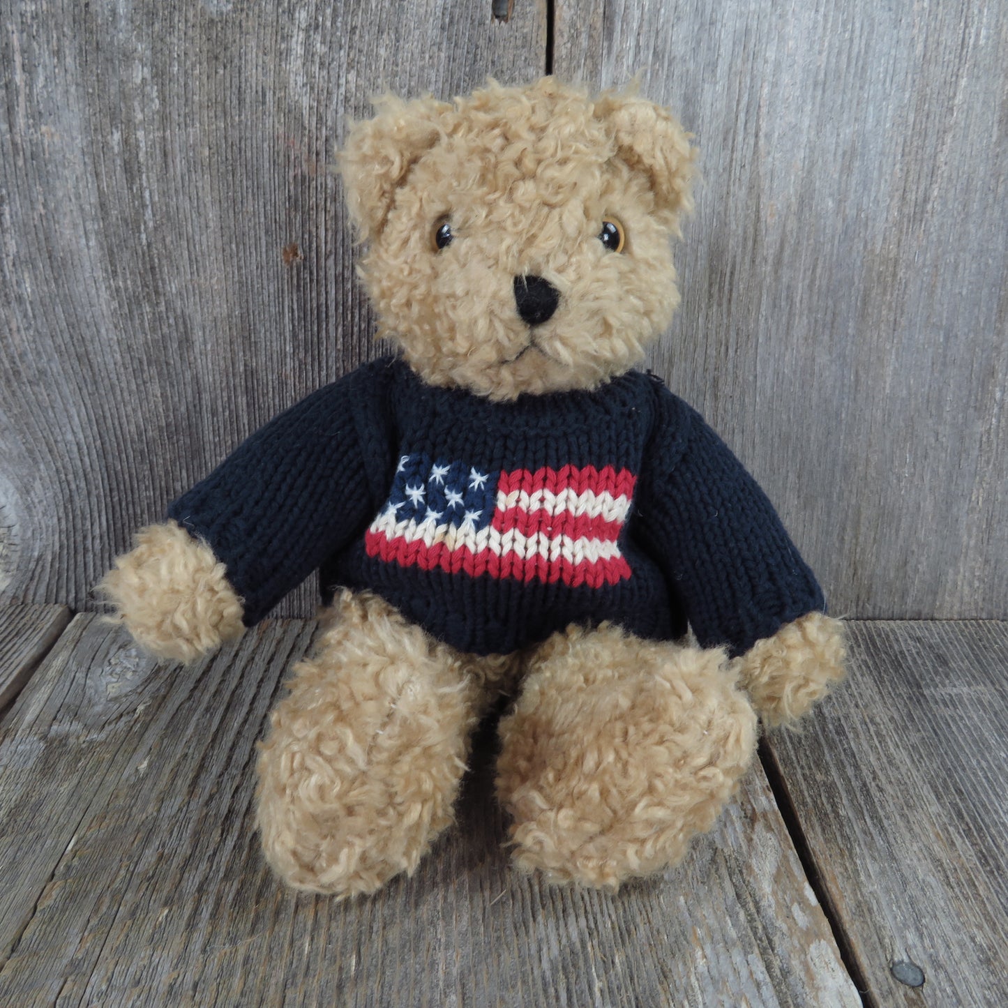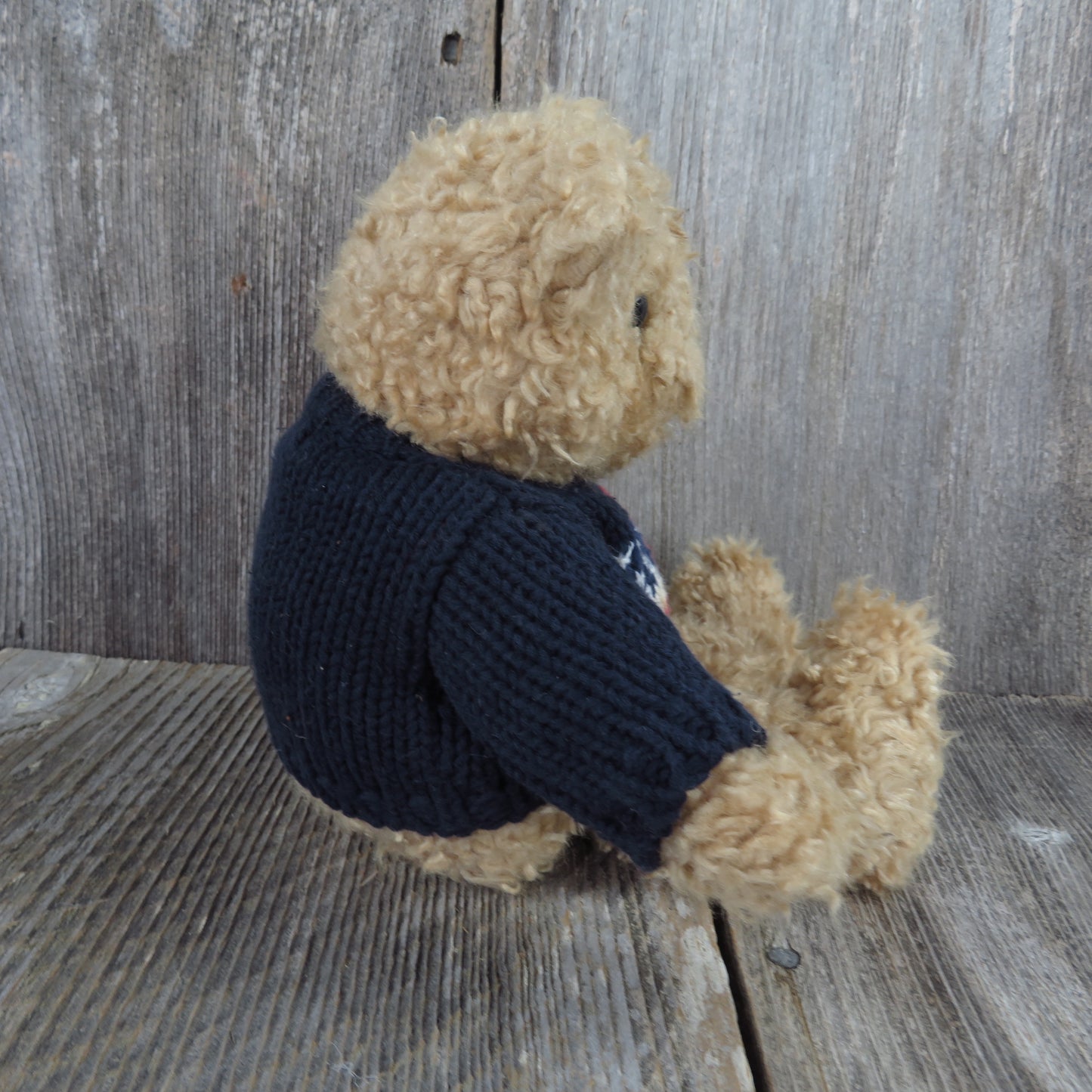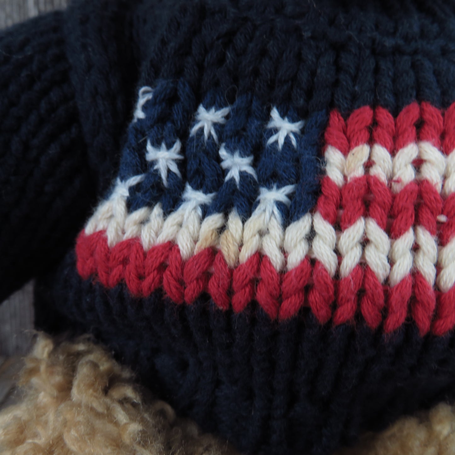 Vintage Teddy Bear Plush Ty Ralph Lauren American Flag Sweater Stuffed Animal Beanie 1990 Korea Curly Red White Blue
