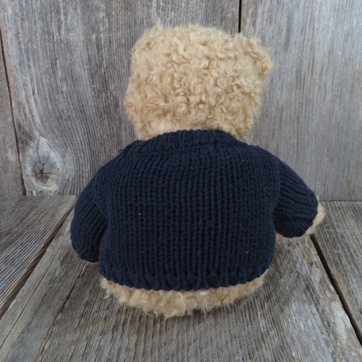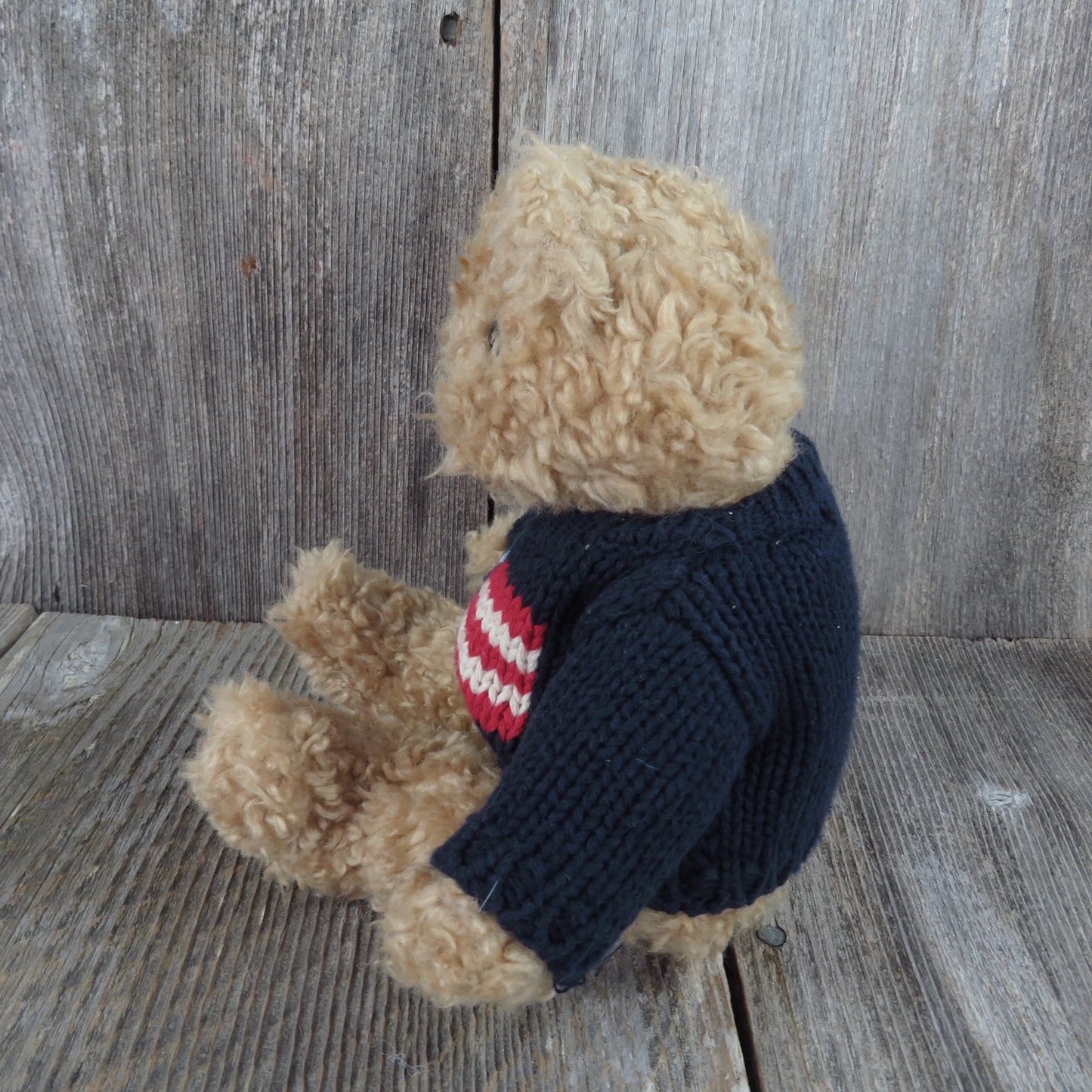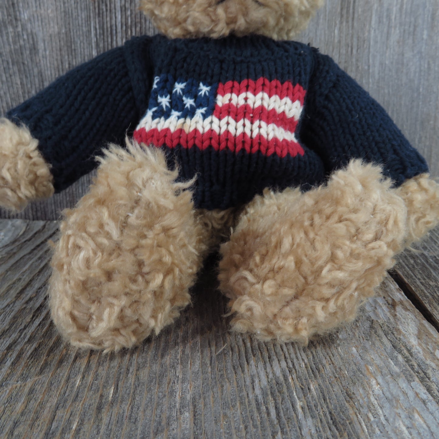 Vintage Teddy Bear Plush Ty Ralph Lauren American Flag Sweater Stuffed Animal Beanie 1990 Korea Curly Red White Blue