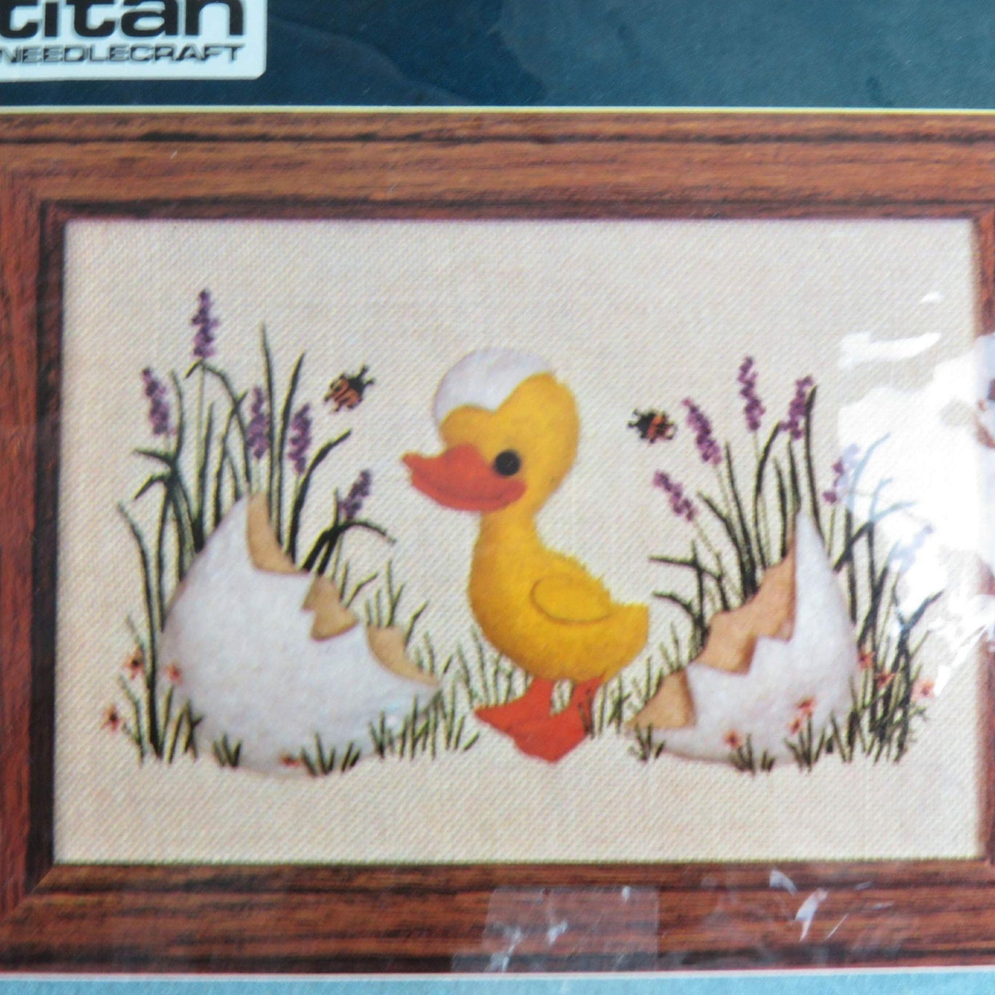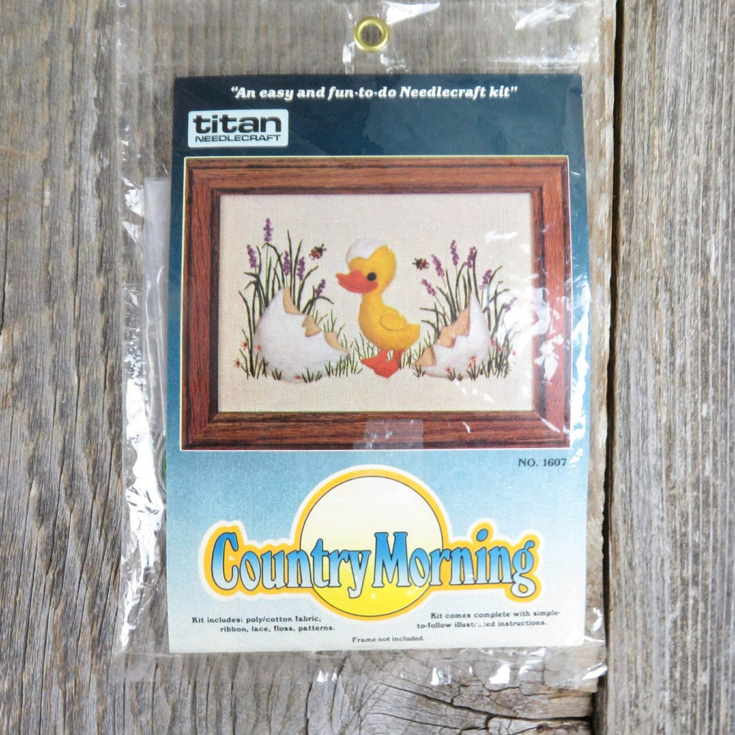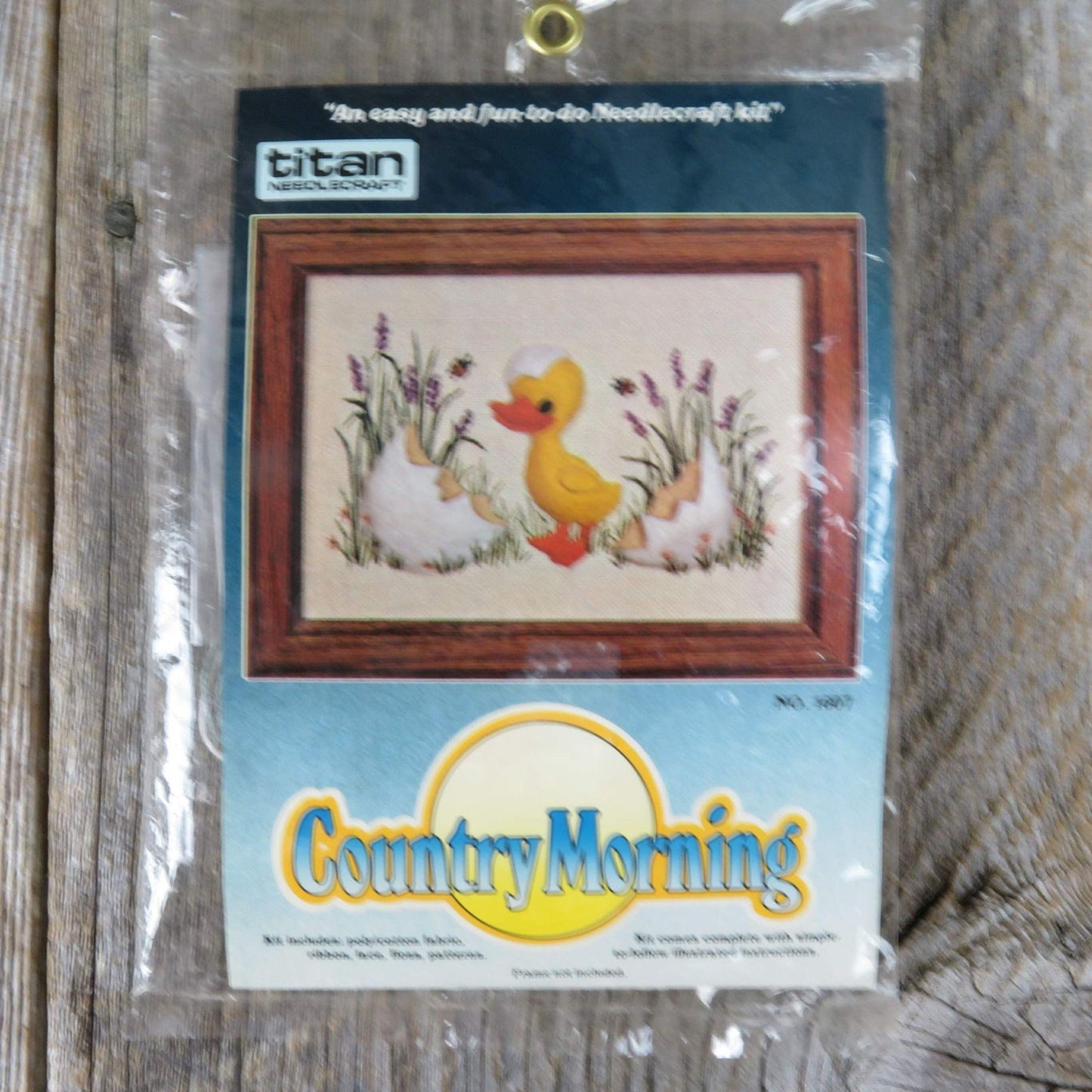 Vtg Titan Needlecraft Kit Country Morning Duckling Egg Flowers Spring #1607