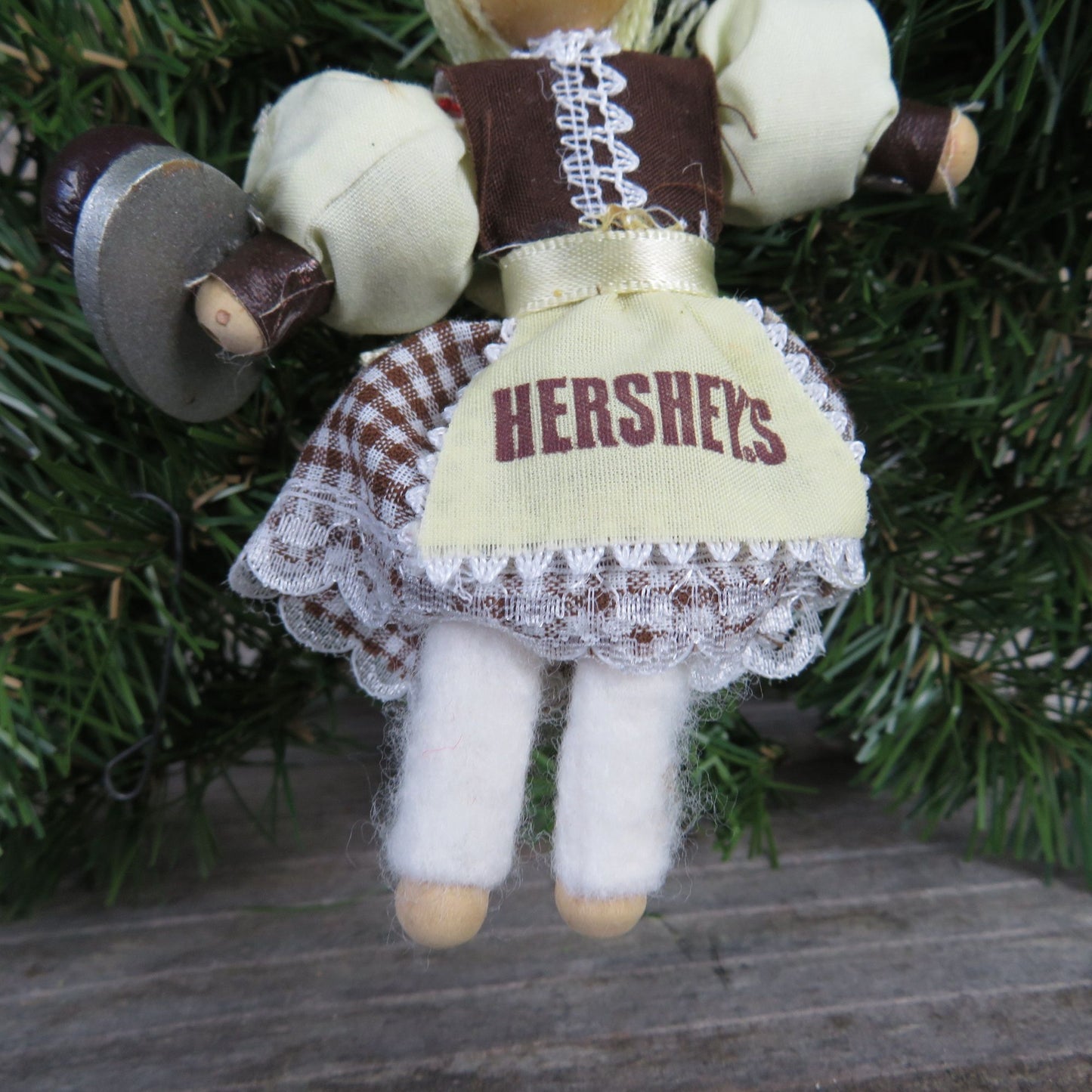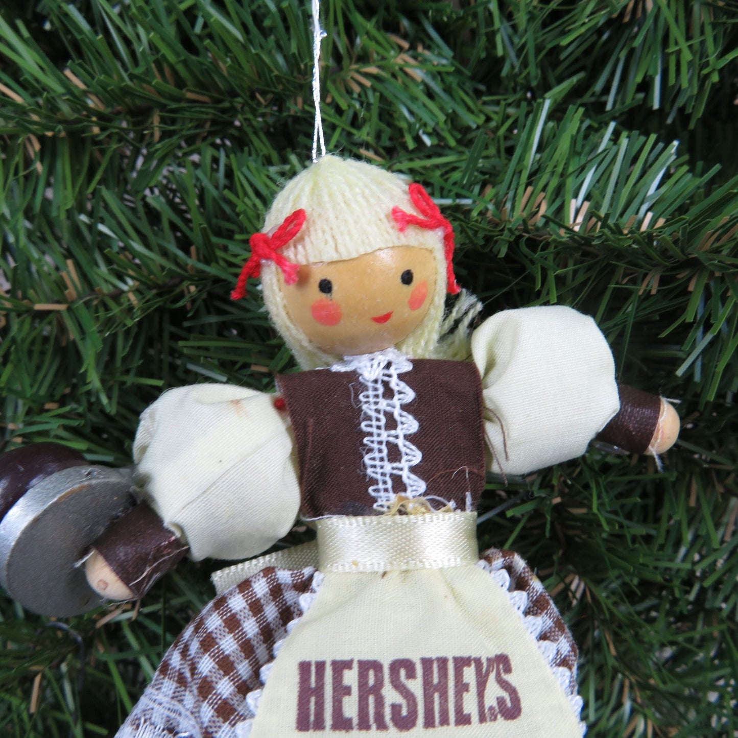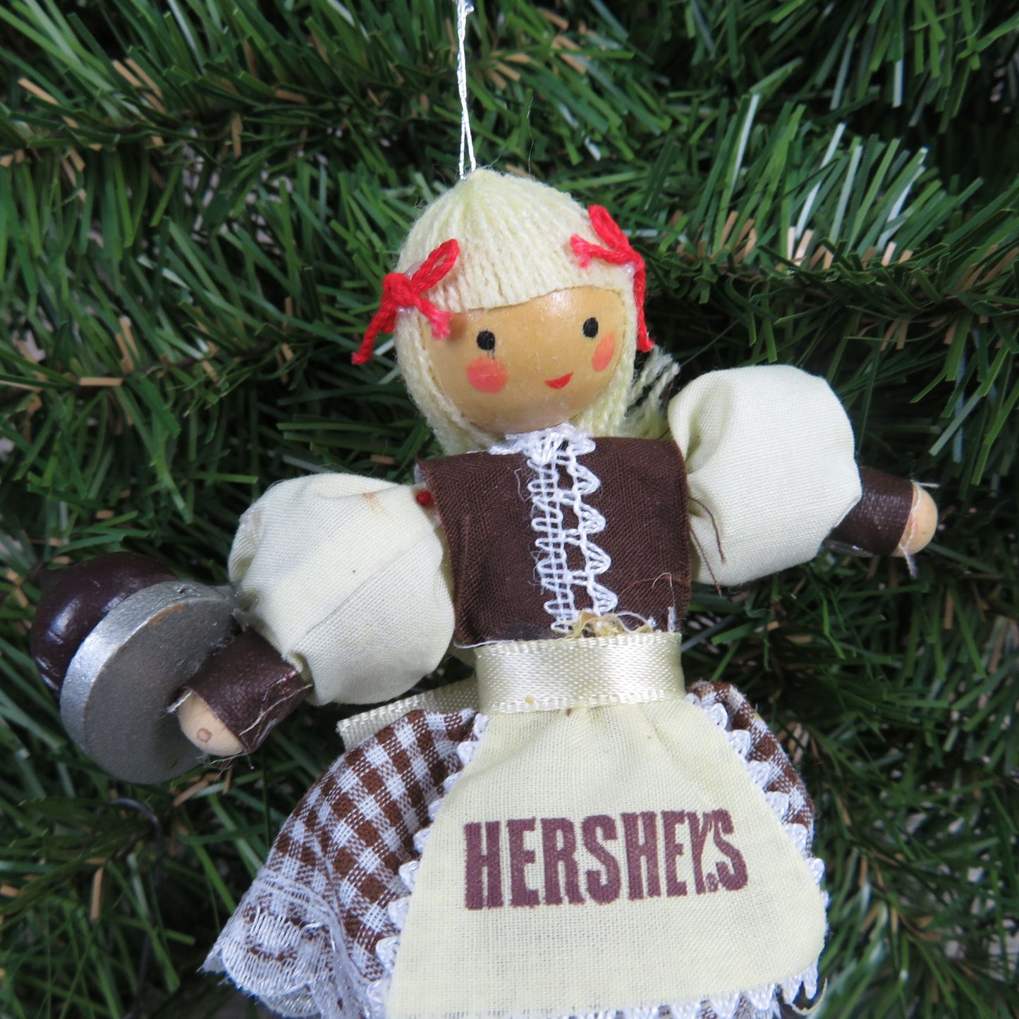 Vtg Hershey's Blonde Girl Doll Wooden Ornament with Chocolate Kisses
