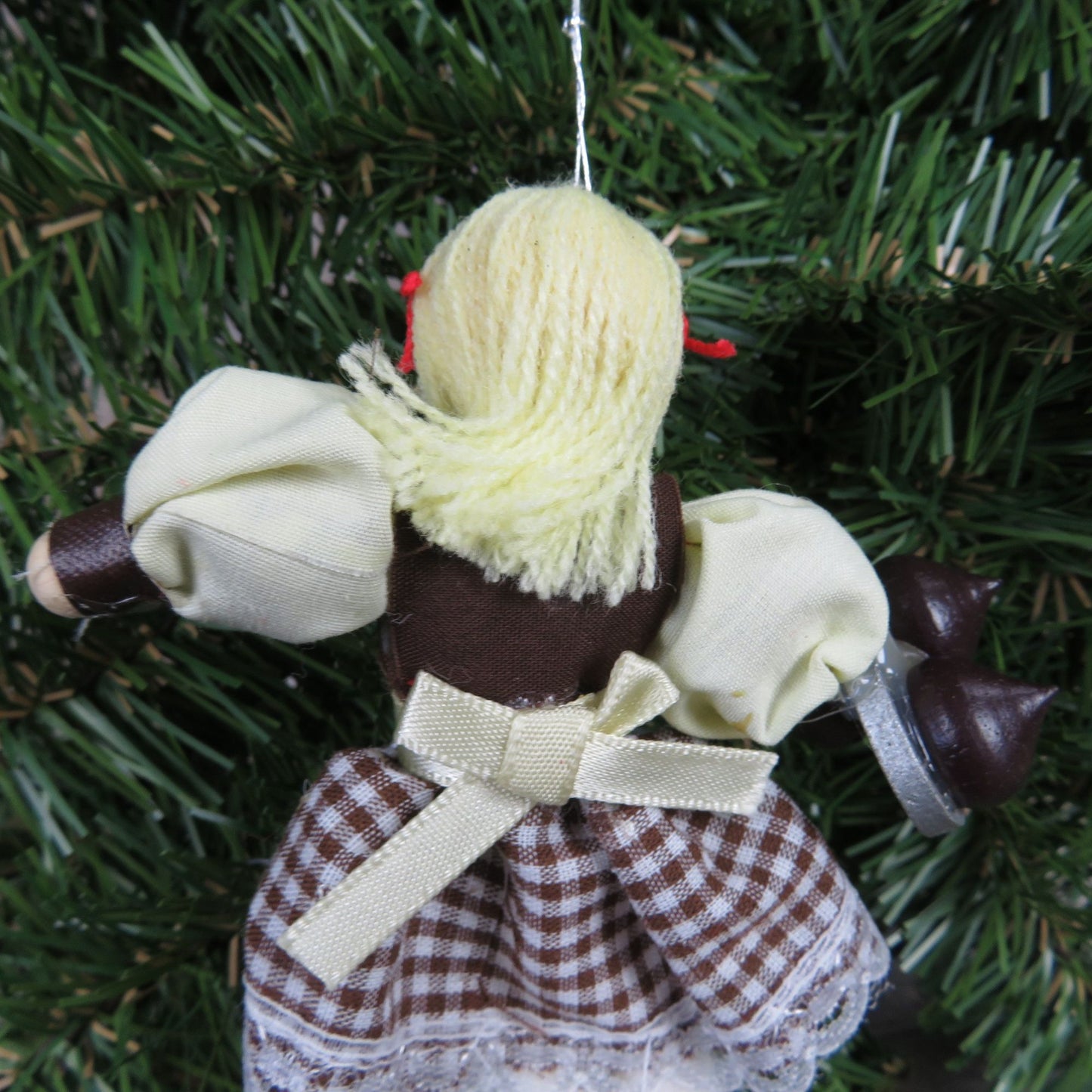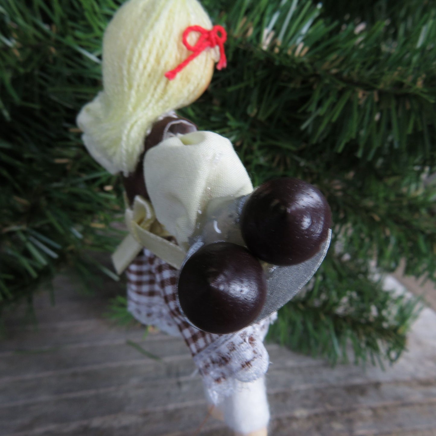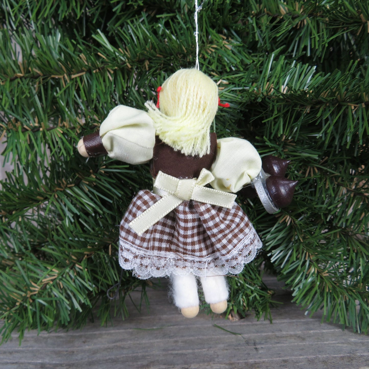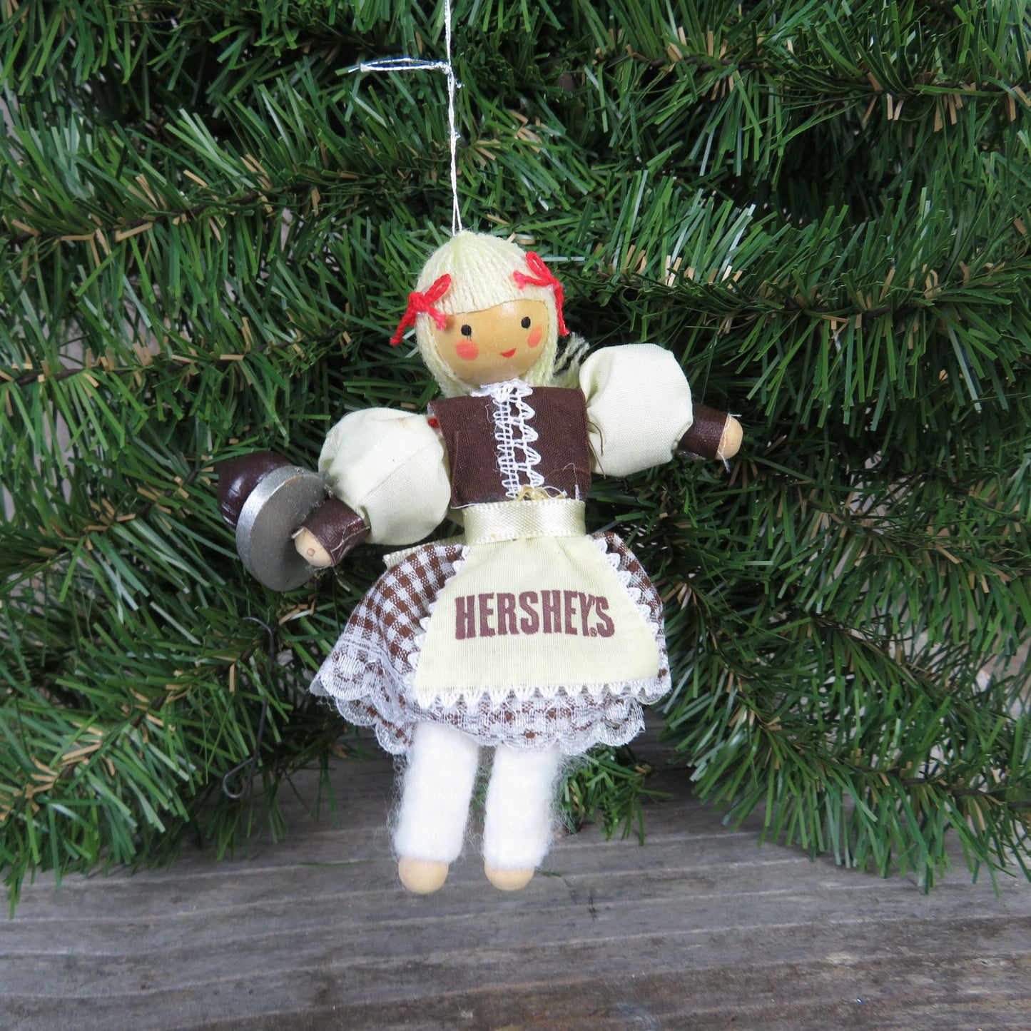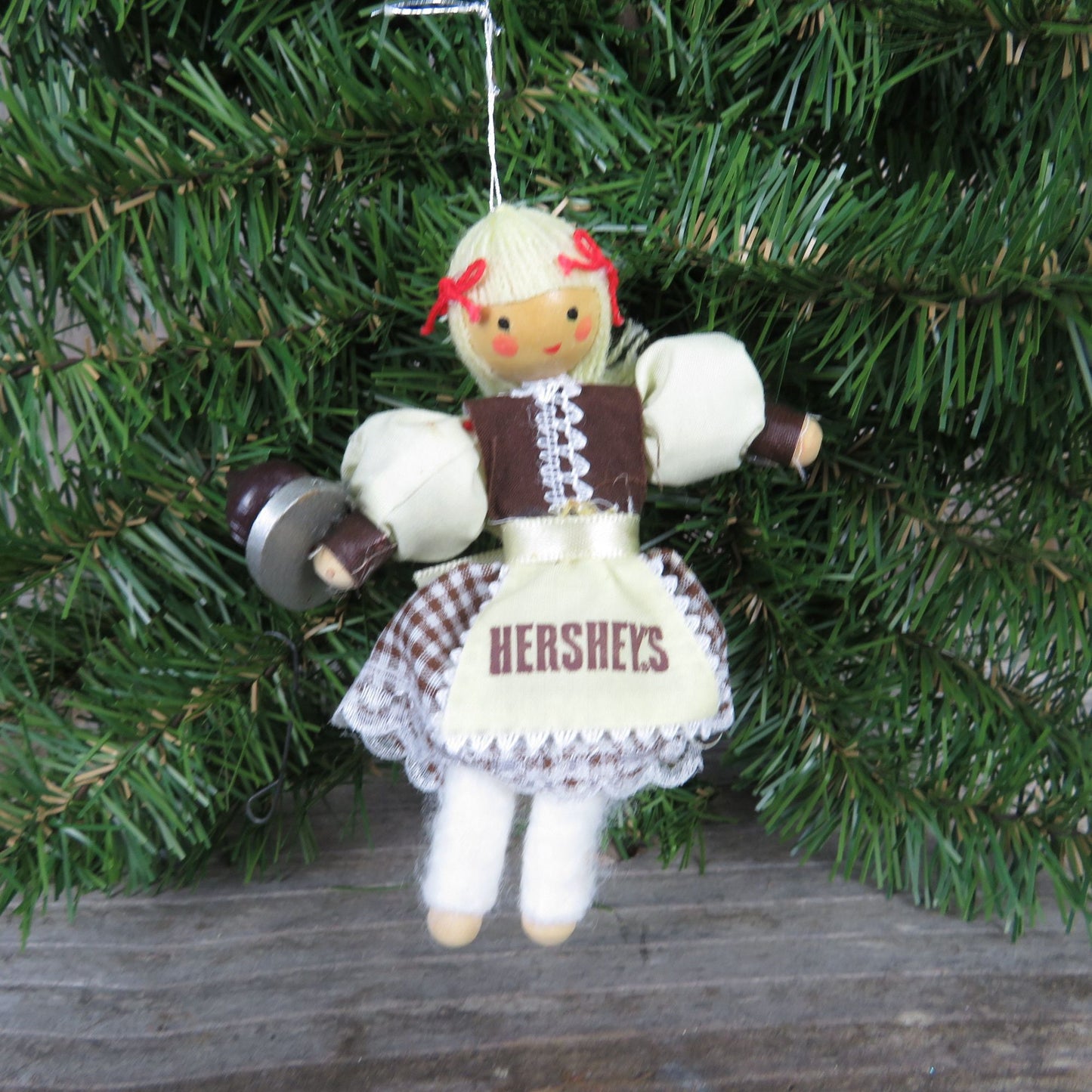 Vintage Wood Doll Hershey's Ornament Blonde Kisses Dress Brown Chocolate Wooden Christmas