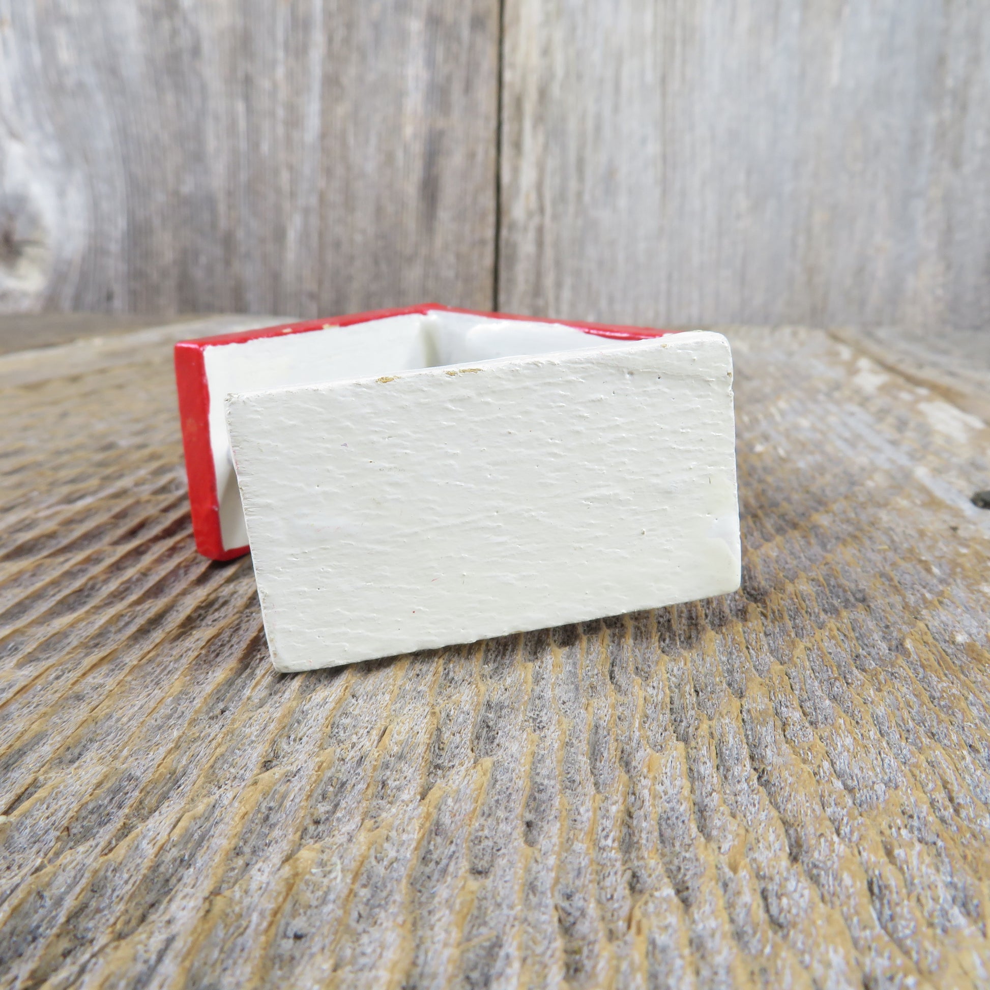Vtg Red and White Rustic Wood House Ornament with a Chimney and Boy Inside