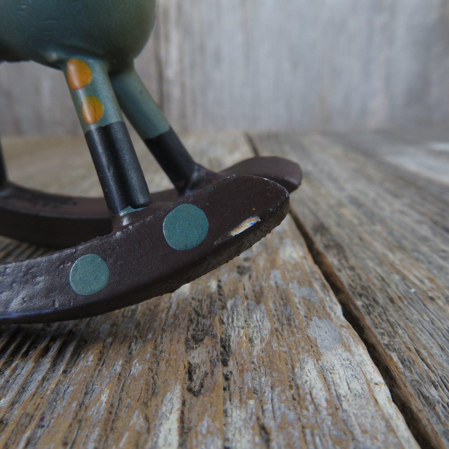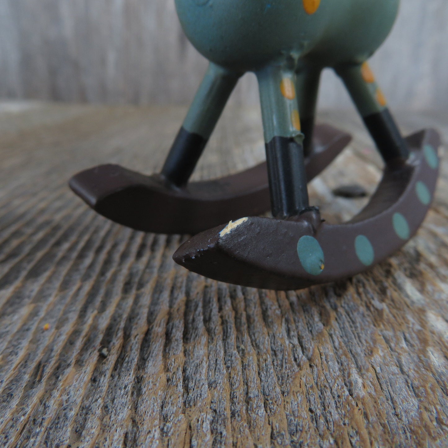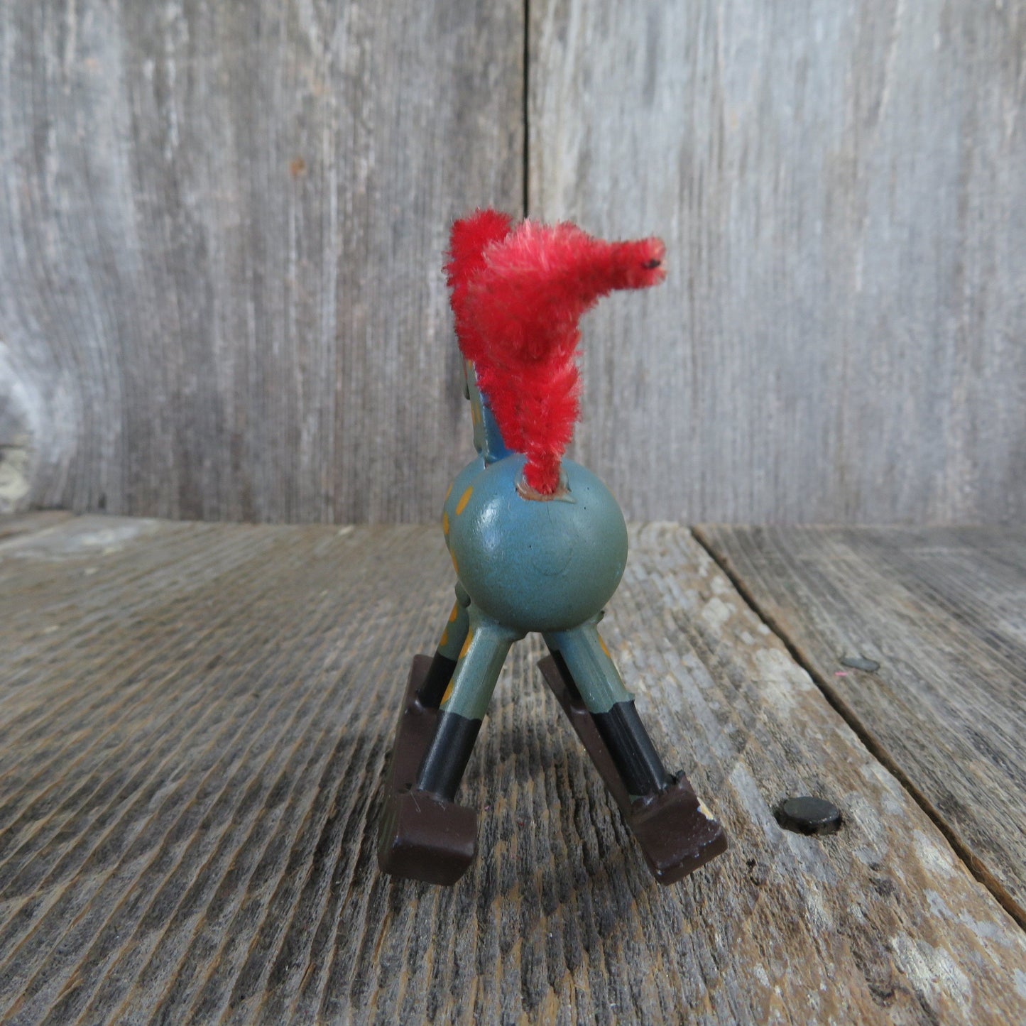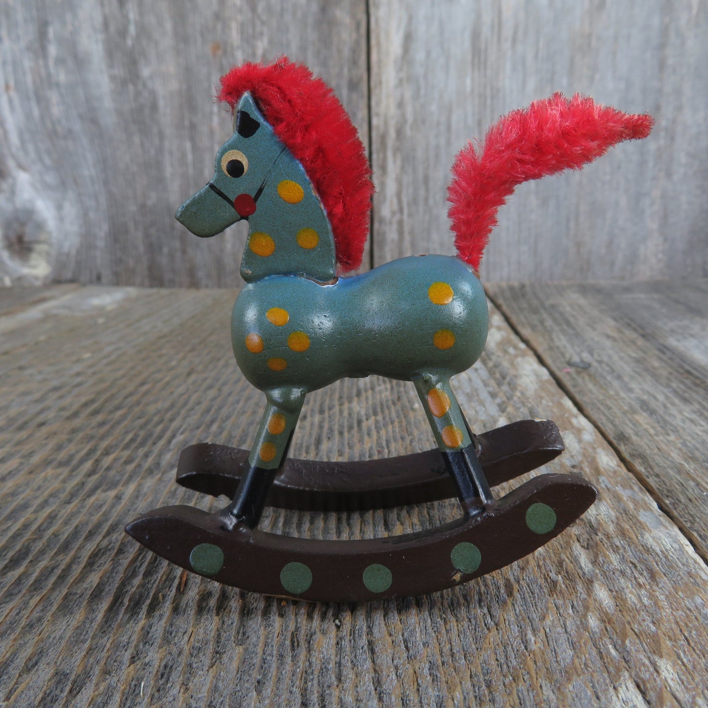 Vintage Wooden Blue Rocking Horse Pony Ornament Wood Christmas Red Pipe Cleaner Taiwan
