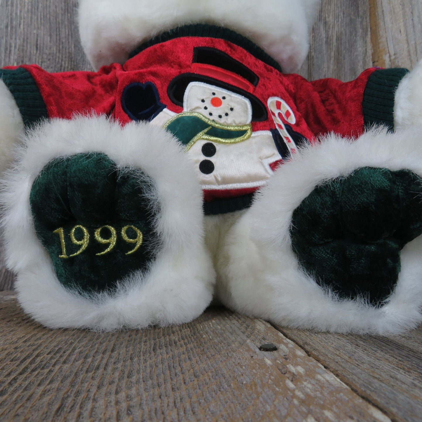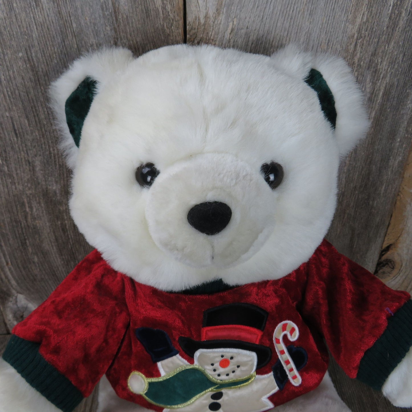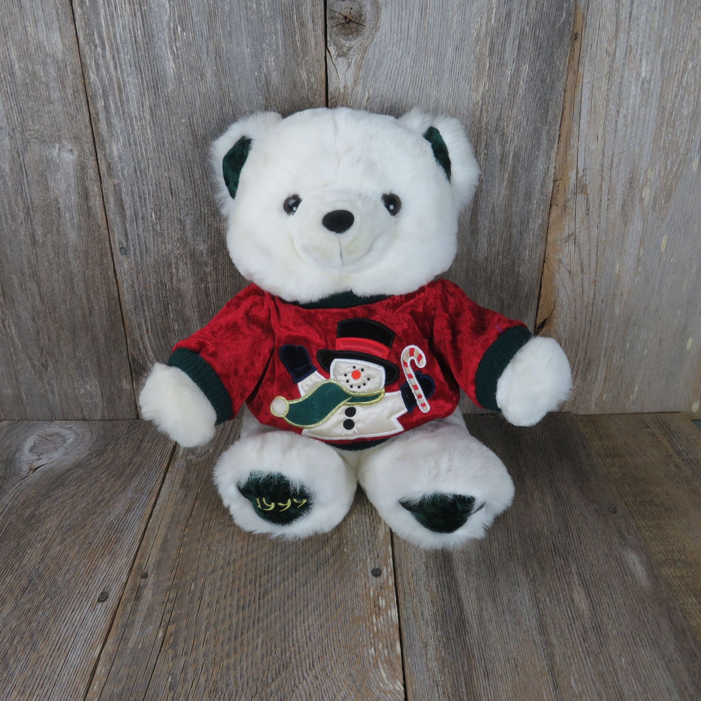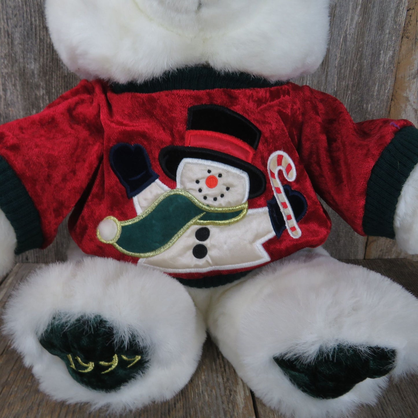 White Christmas Bear Plush Snowman Sweater Stuffed Animal Main Joy Limited 1993